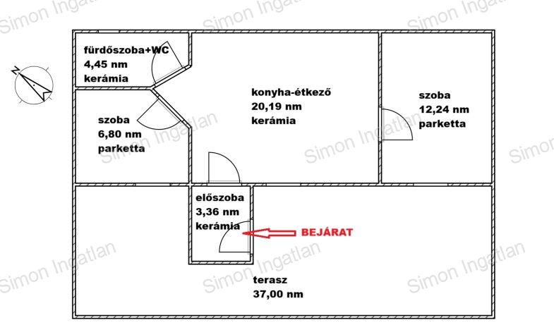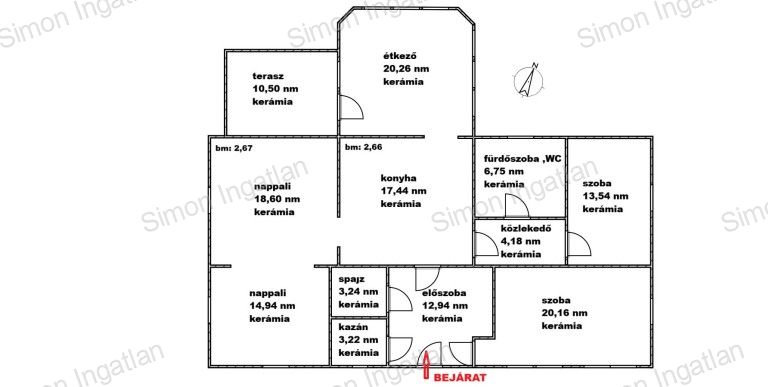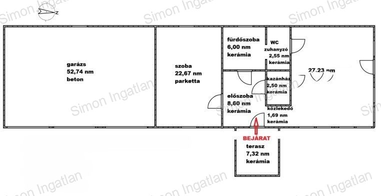 méret-lakás: 71nm , fedett terasz 10,5 nm , garázs 53 nm