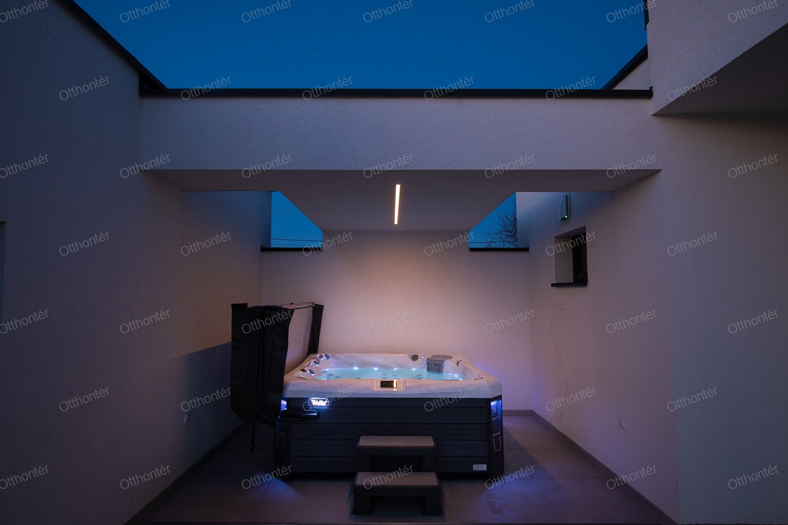 A vízforgatós medence nemcsak látványelem, hanem teljes értékű úszómedenceként is használható. A kert és az udvar 2024 őszén készült el végleges formájában, az ingatlan pedig eladás után friss belső és külső festést kap.