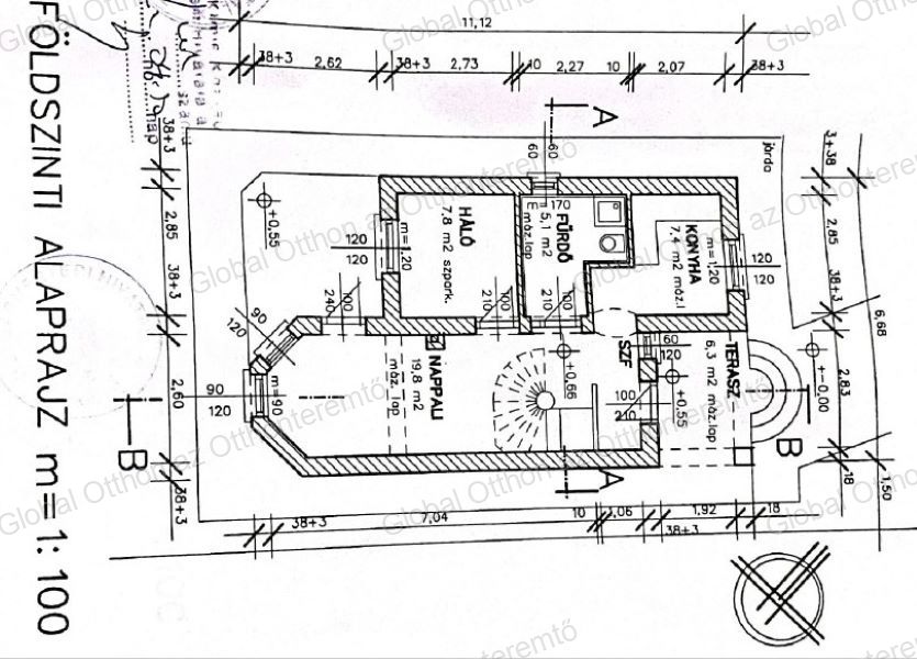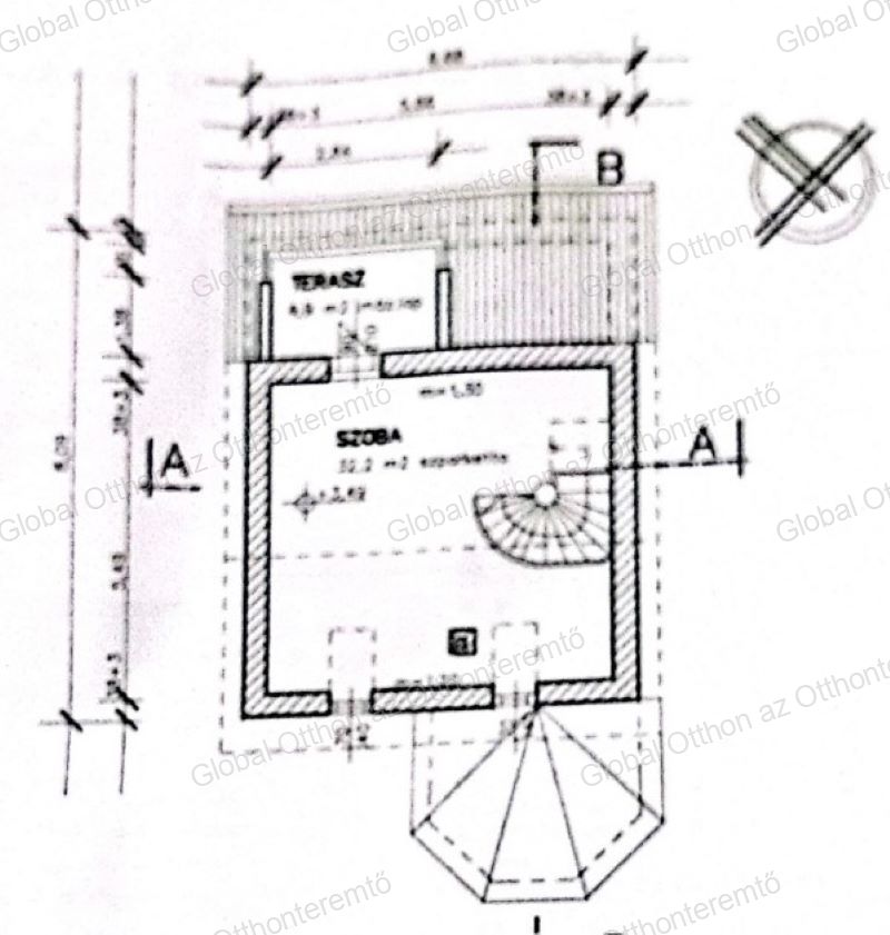 Felosztása: előtér, konyha, fürdő,wc,szoba, nappali, az emeleten egy tágas nappali.