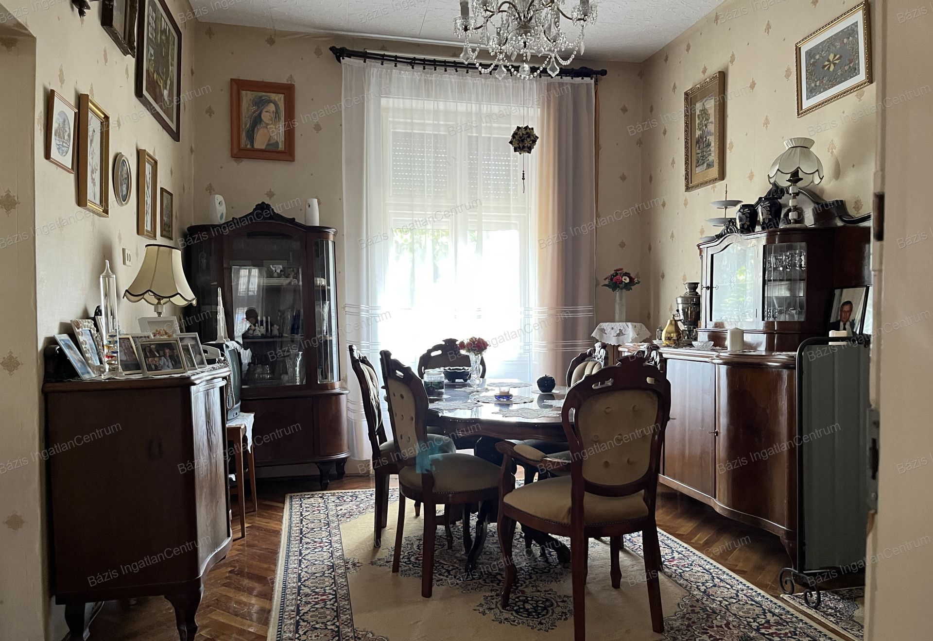 Bács-Kiskun megye Bácsalmás központjához közel, 111 nm-es családi ház eladó. A vegyes falazatú ingatlanban található három szoba, konyha, étkező, kamra, nappali, fürdőszoba, WC, közlekedő és egy előszoba. Az otthon fűtéséről konvektorok és kandalló, a hűtéséről klíma gondoskodik. A világos, jó elosztású családi ház járólapos és parkettás burkolattal van ellátva. A homlokzatot 5 cm-es, hungarocell szigeteléssel látták el. Az ingatlanba részben műanyag nyílászárók kerültek beépítésre. A telken található egy különálló lakrész, amelyben található egy szoba, fürdőszoba+WC, előszoba/konyha, kamra és közlekedő. A villanyhálózat külön mérőórával rendelkezik, a víz és gáz azonban közös a főépülettel. Kialakításának köszönhetően két generáció együttélésére is alkalmas választás lehet. Az ingatlanok egy 500 nm-es rendezett, összközműves telken helyekednek el. Található rajta egy 20 nm-es garázs és melléképületek. Az ingatlan a település központjában található, a polgármesteri hivatal, boltok, posta, orvosi rendelő és gyógyszertár is könnyen elérhető. Vevő ügyfeleinket díjmentes hiteltanácsadással, valamint teljeskörű ügyintézéssel segítjük az ingatlan megvásárlásában. Bővebb információért keressen bizalommal!