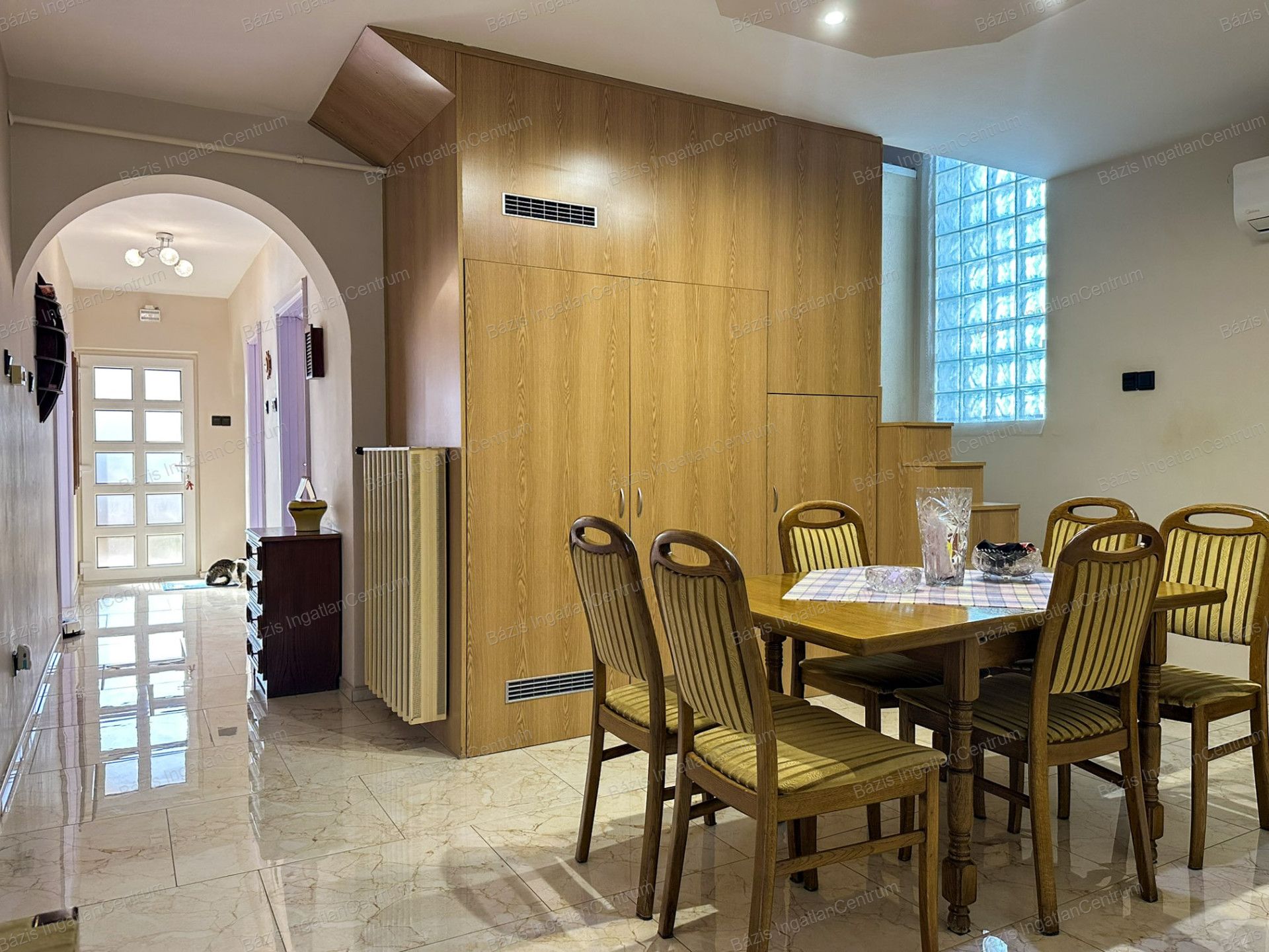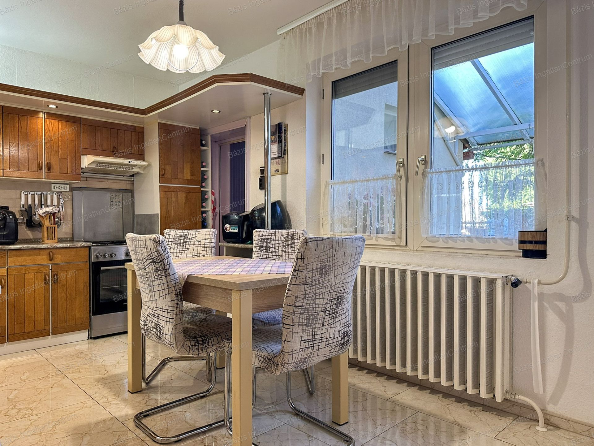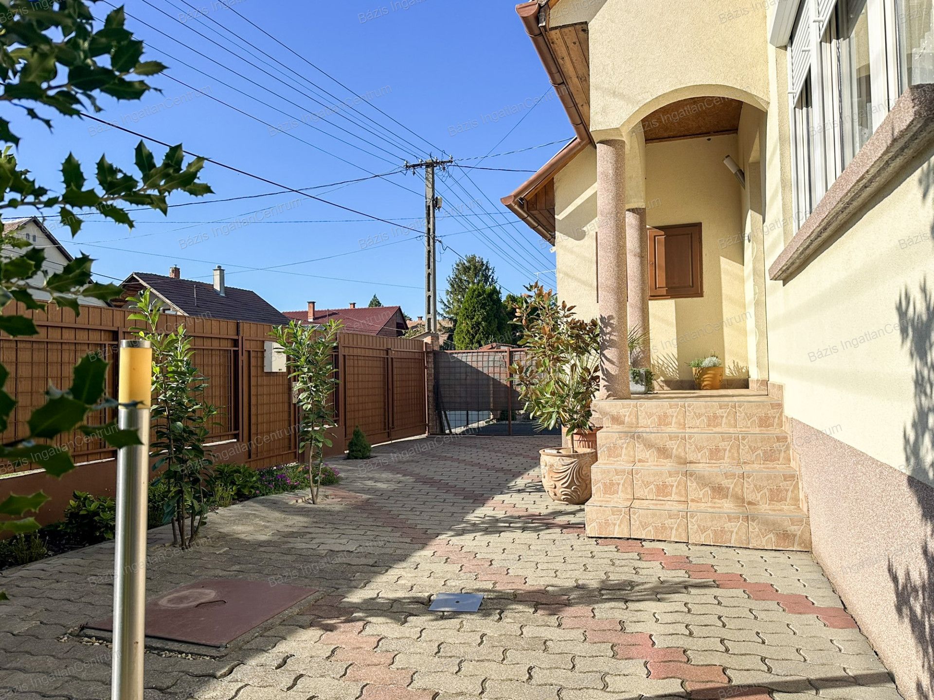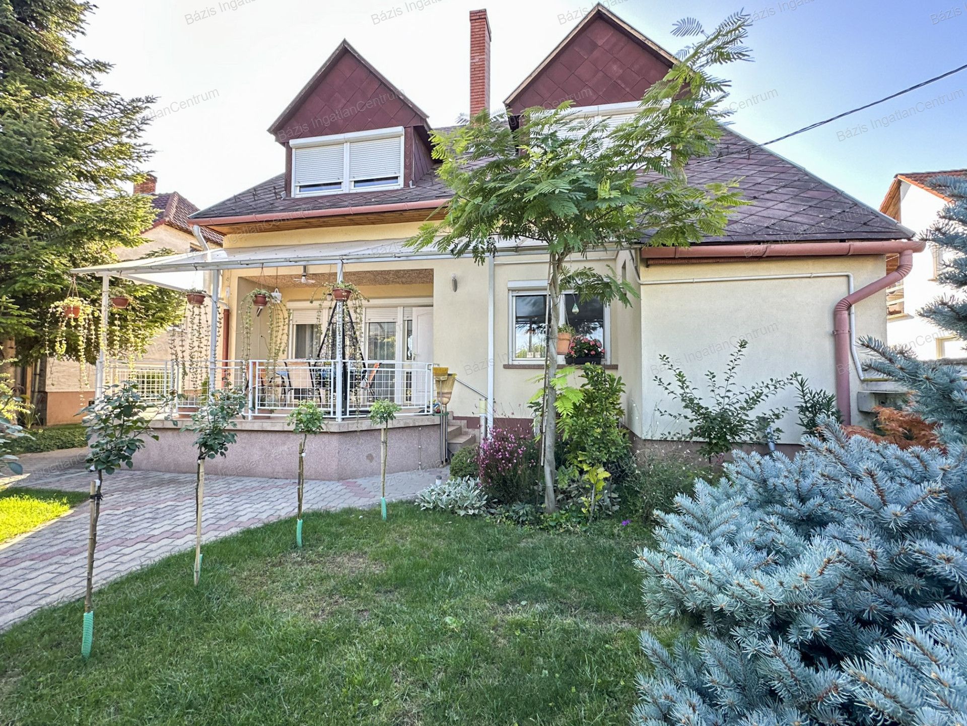 Bács-Kiskun megye Bácsalmás újvárosi részén 200 nm-es családi ház eladó. Az ingatlan 1988-ban épült tégla és szilikát falazattal, beton alapra. A 105,6 nm-es földszinten található egy szoba, nappali, étkező, konyha, kamra, WC, fürdőszoba, előszoba és garázs. A 94,4 nm-es tetőtéri részben kettő szoba, WC, fürdőszoba, társalgó és erkély kapott helyet. A ház egy része alatt szuterén húzódik, amelyben a kazánház került kialakításra. A fűtésről gázkazán és vegyes tüzelésű kazán gondoskodik, hűtését/fűtését klímák látják el. A világos, jó elosztású családi ház járólapos, parkettás és laminált burkolattal van ellátva. Az ingatlanba hőszigetelt nyílászárók kerültek beépítésre. A ház egy 722 nm-es, összközműves, ipari árammal és fúrt kúttal ellátott telken helyezkedik el. A térkövezett és parkosított udvaron, öntözőrendszer került kiépítésre. Az udvaron tartozik hozzá egy melléképület, amely akár külön lakrészként, illetve vállalkozás kialakítására is megfelelő. Az 50 nm-es melléképületben található, egy szoba, nappali, előtér, konyha és vizesblokk, illetve egy épített szauna. A ház akár befektetési célból, illetve két generáció számára is kiváló választás lehet. Vevő ügyfeleinket díjmentes hitel tanácsadással és teljes körű ügyintézéssel segítjük az ingatlan megvásárlásában. Bővebb információért keressen bizalommal!