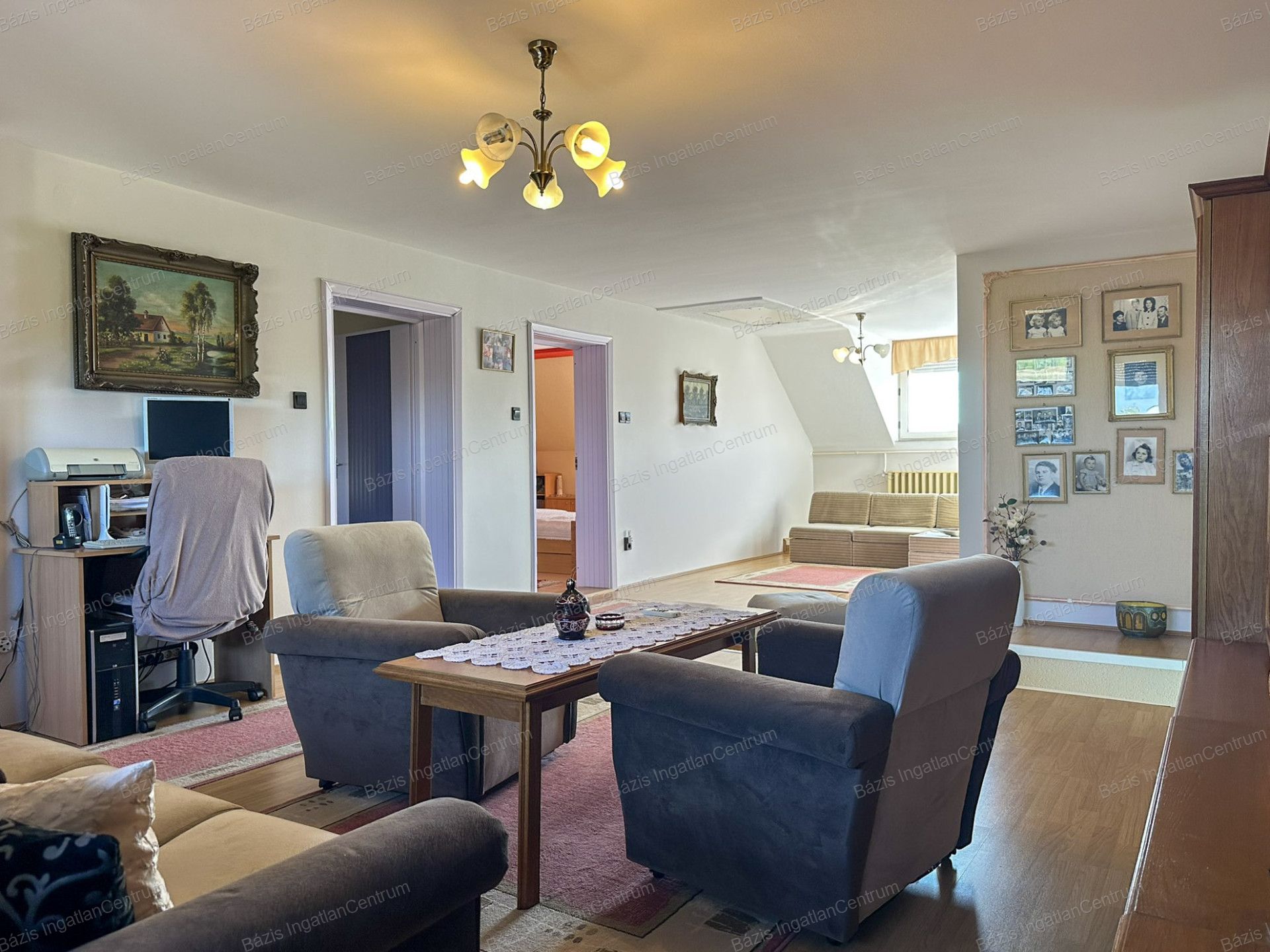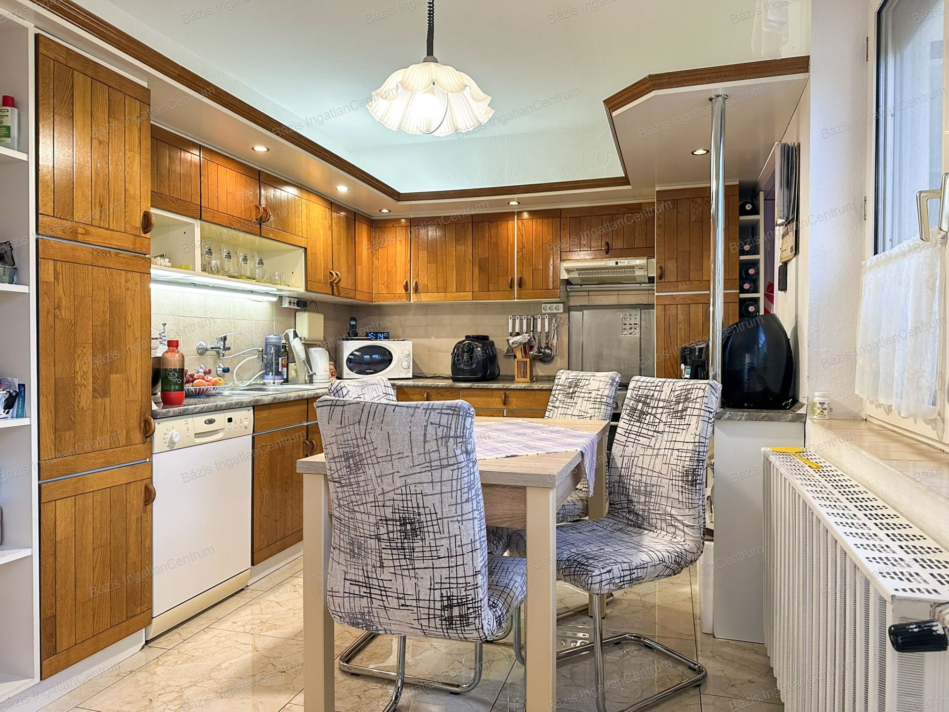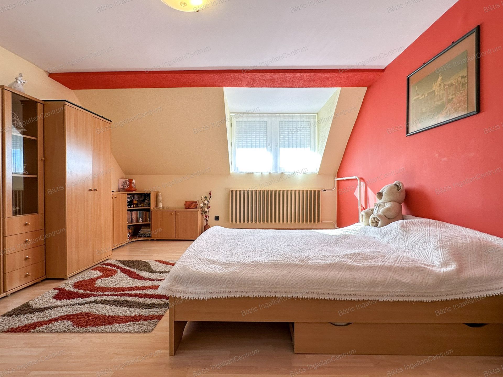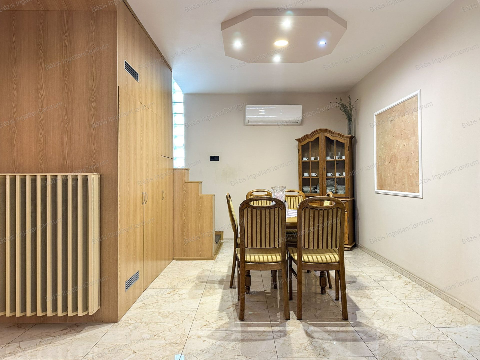 Bács-Kiskun megye Bácsalmás újvárosi részén 200 nm-es családi ház eladó. Az ingatlan 1988-ban épült tégla és szilikát falazattal, beton alapra. A 105,6 nm-es földszinten található egy szoba, nappali, étkező, konyha, kamra, WC, fürdőszoba, előszoba és garázs. A 94,4 nm-es tetőtéri részben kettő szoba, WC, fürdőszoba, társalgó és erkély kapott helyet. A ház egy része alatt szuterén húzódik, amelyben a kazánház került kialakításra. A fűtésről gázkazán és vegyes tüzelésű kazán gondoskodik, hűtését/fűtését klímák látják el. A világos, jó elosztású családi ház járólapos, parkettás és laminált burkolattal van ellátva. Az ingatlanba hőszigetelt nyílászárók kerültek beépítésre. A ház egy 722 nm-es, összközműves, ipari árammal és fúrt kúttal ellátott telken helyezkedik el. A térkövezett és parkosított udvaron, öntözőrendszer került kiépítésre. Az udvaron tartozik hozzá egy melléképület, amely akár külön lakrészként, illetve vállalkozás kialakítására is megfelelő. Az 50 nm-es melléképületben található, egy szoba, nappali, előtér, konyha és vizesblokk, illetve egy épített szauna. A ház akár befektetési célból, illetve két generáció számára is kiváló választás lehet. Vevő ügyfeleinket díjmentes hitel tanácsadással és teljes körű ügyintézéssel segítjük az ingatlan megvásárlásában. Bővebb információért keressen bizalommal!