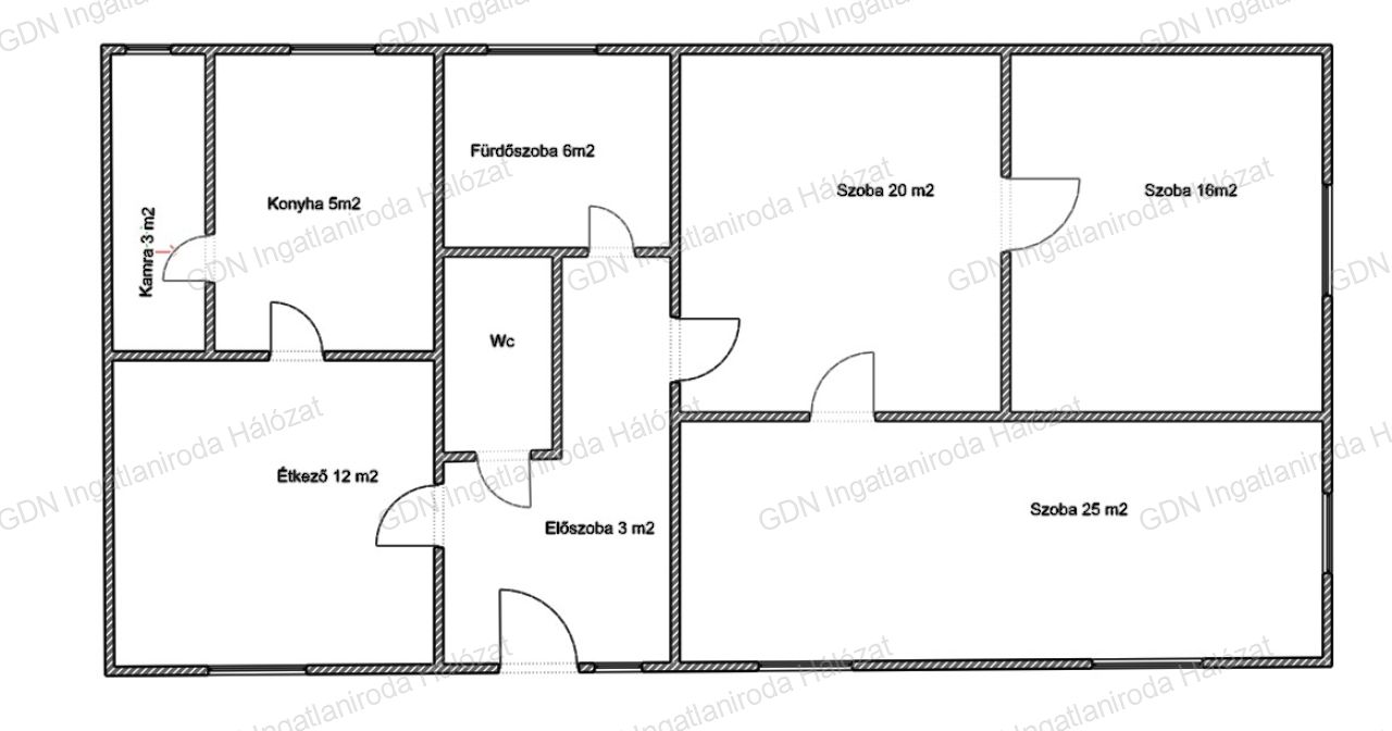 A három szoba mellett konyha és egyéb mellékhelyiségek állnak rendelkezésre, így család számára is kényelmes elrendezésű lehet.