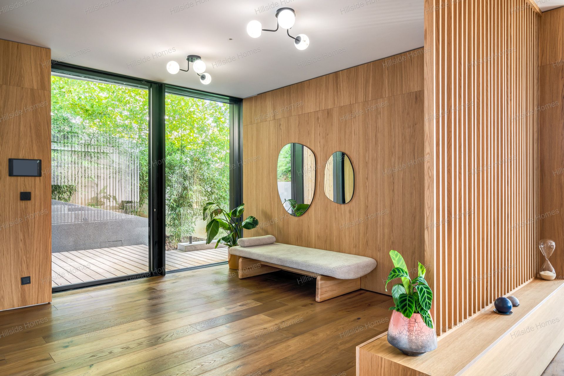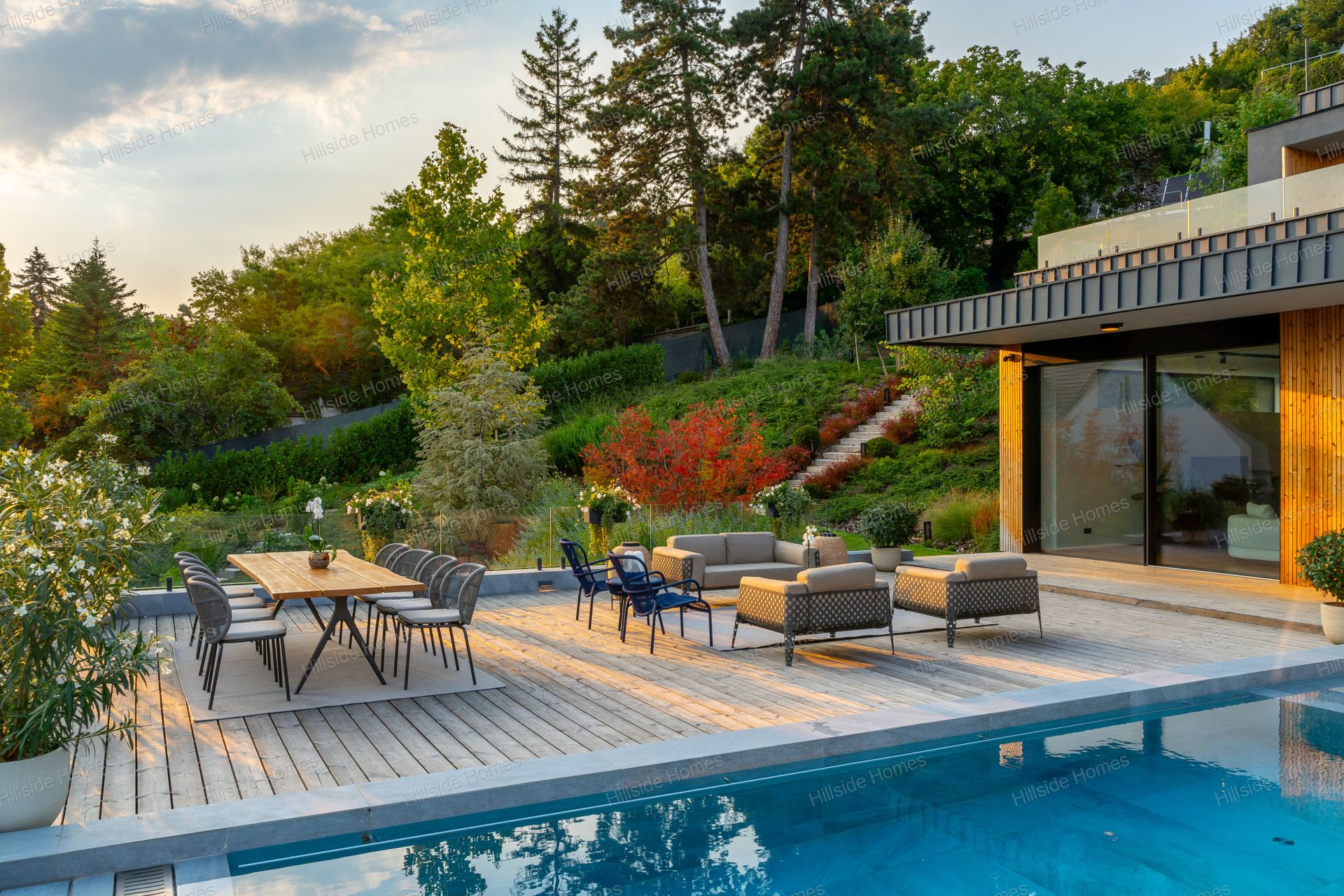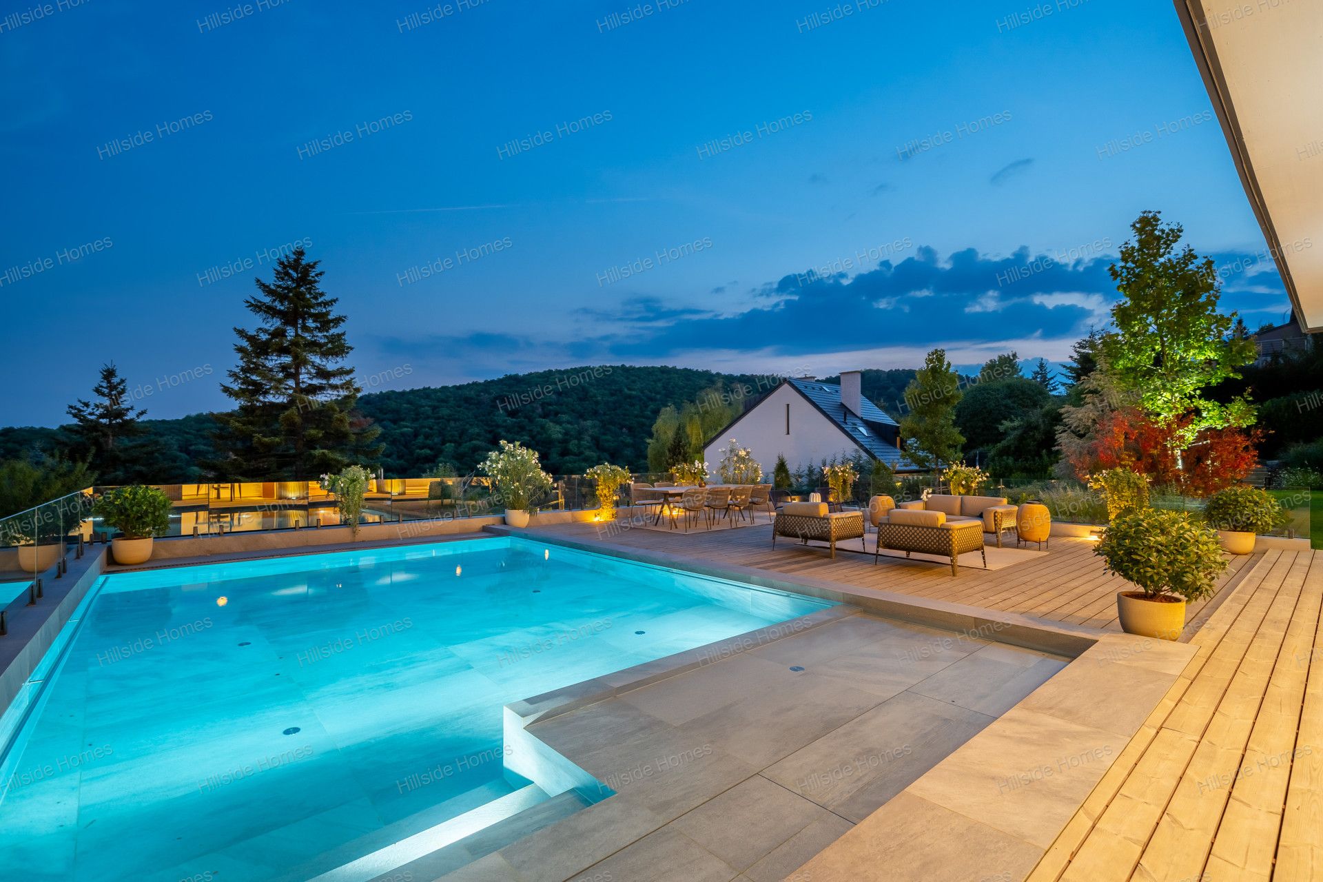 A teraszba integrált medence fűtött, külön hőszivattyúval (HP-2700 Green Inverter Pro Split), így egész évben használható. További luxuselemek közé tartozik a bortrezor beépített borhűtővel (kb. 300 palack kapacitással), Fantini csaptelepek, Inbani márvány mosdótálak és fürdőszoba bútorok, valamint Flos, &Tradition és United Alabaster lámpák, amelyek elegáns megvilágítást nyújtanak.