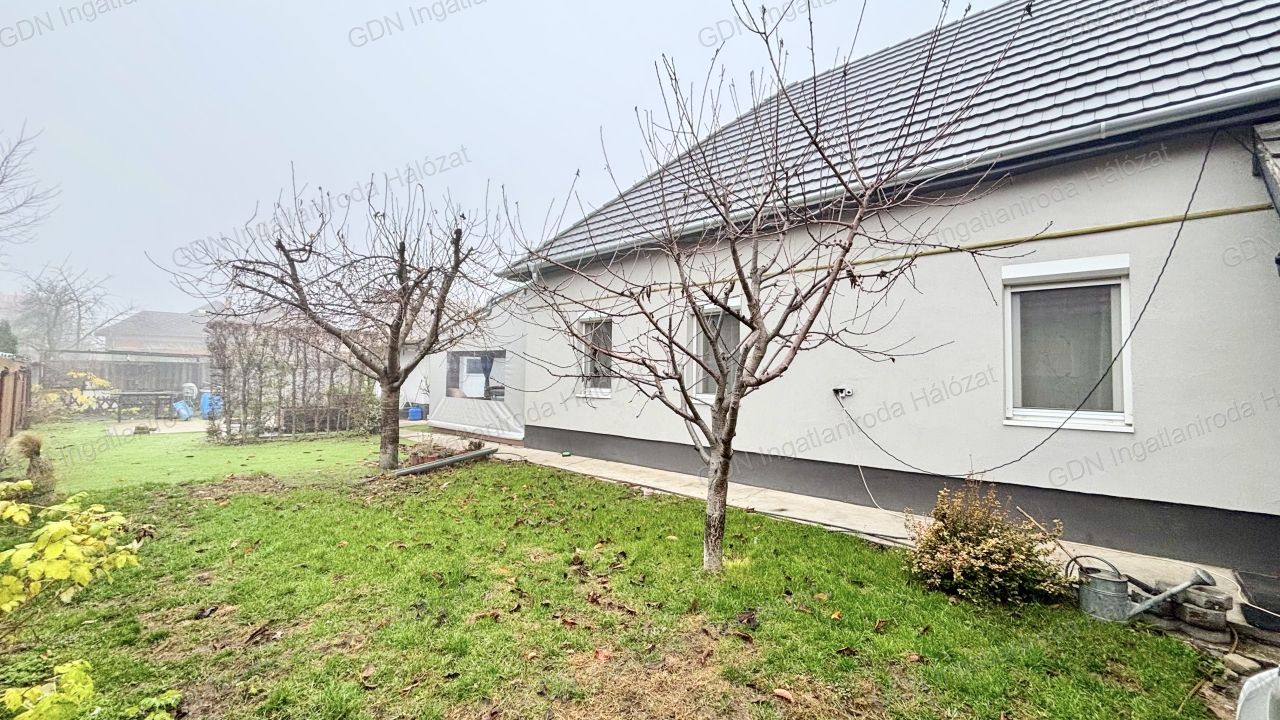 A kényelmesen karban tartható kertben helyet kapott egy fedett gépdcsibeálló, de ezen kívül 1 autó is kényelmesen elfér. Öntözésről egy fúrt gondoskodik.