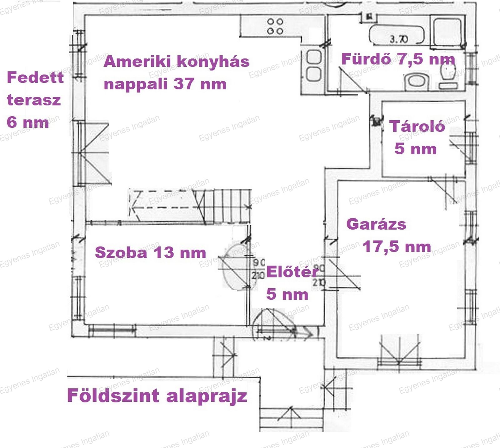 •Nappali amerikai konyhával 37nm, közvetlen kertkapcsolattal