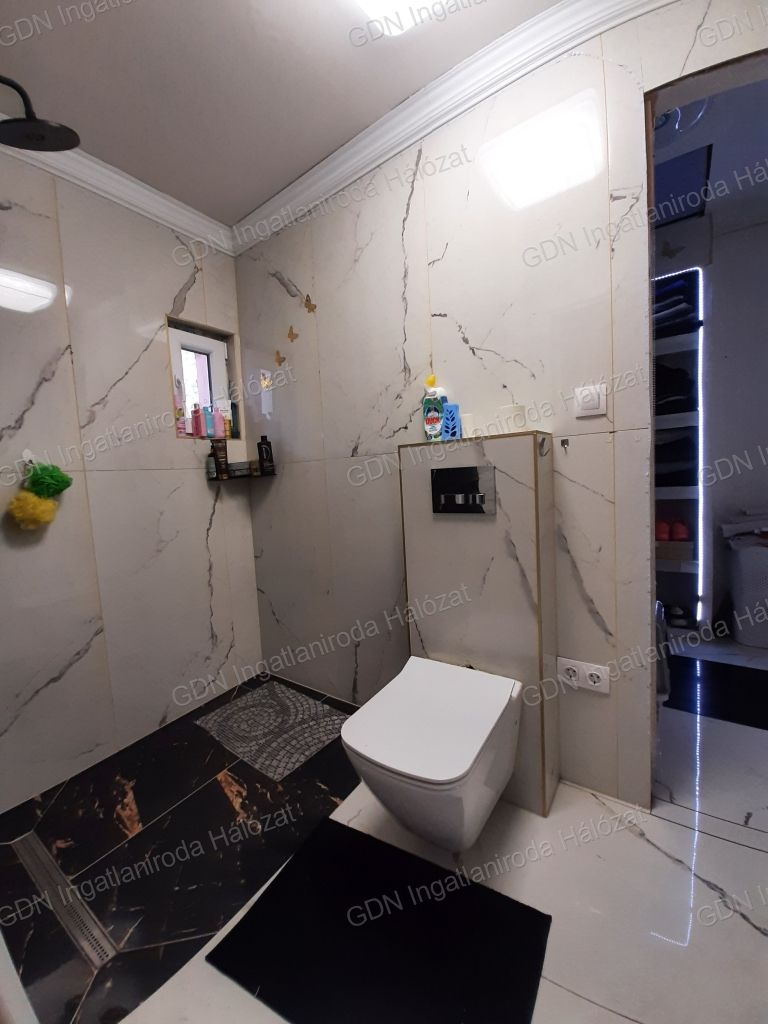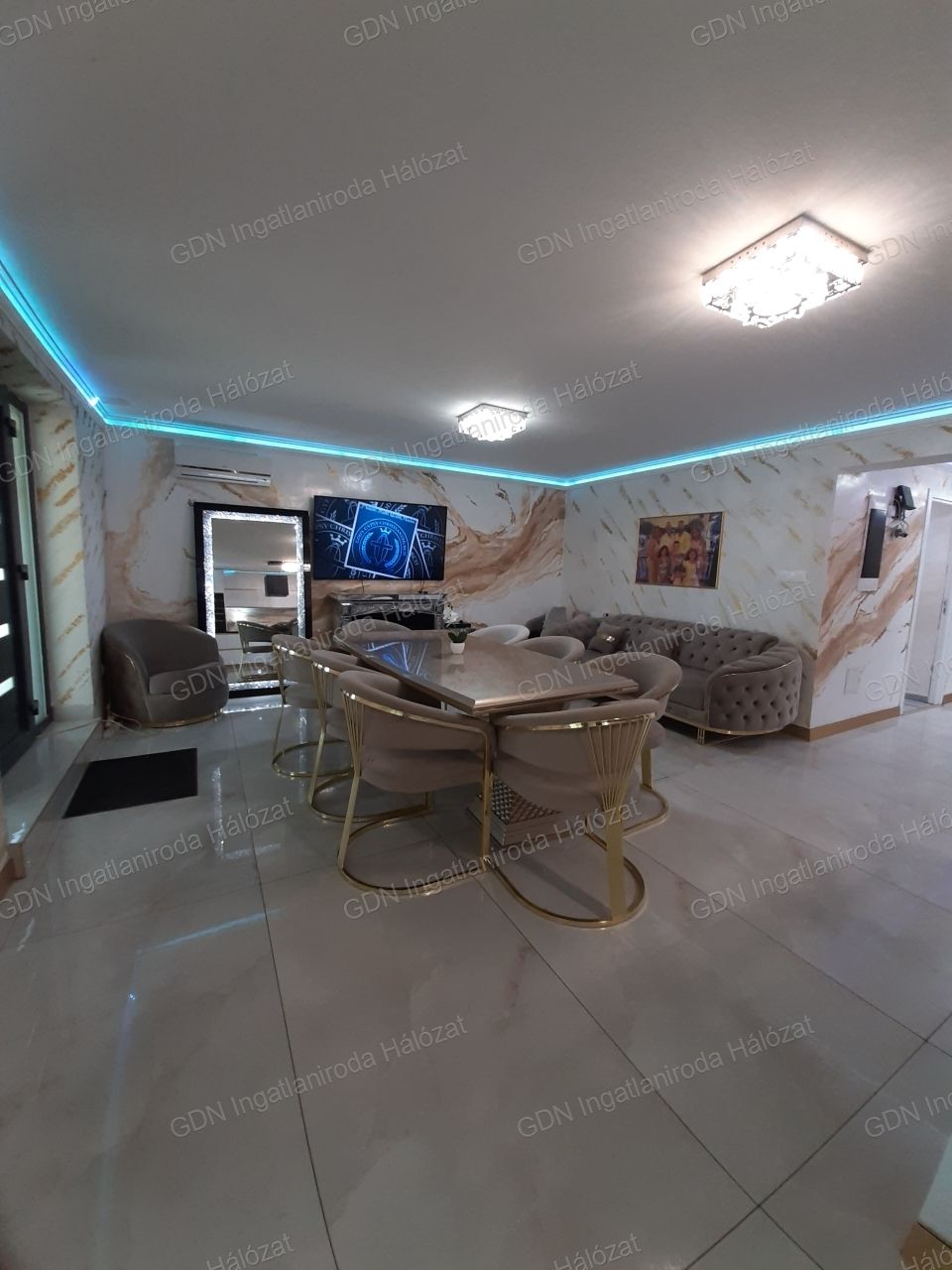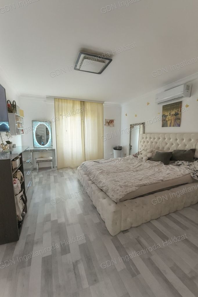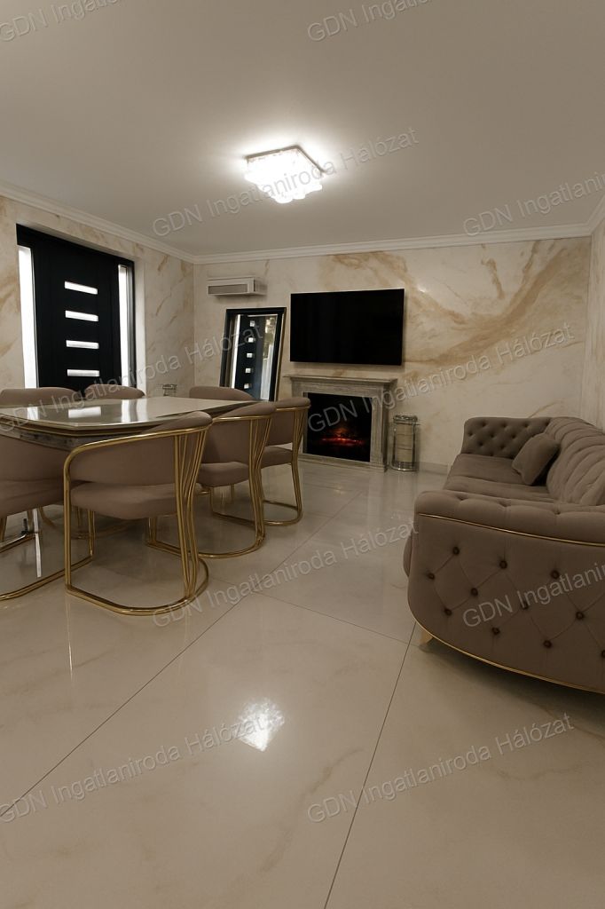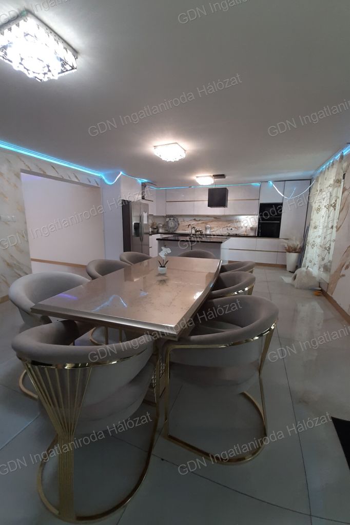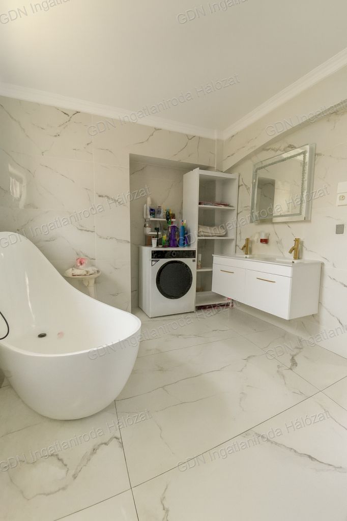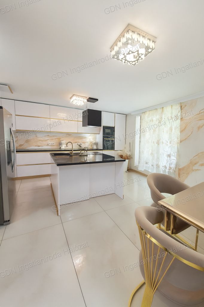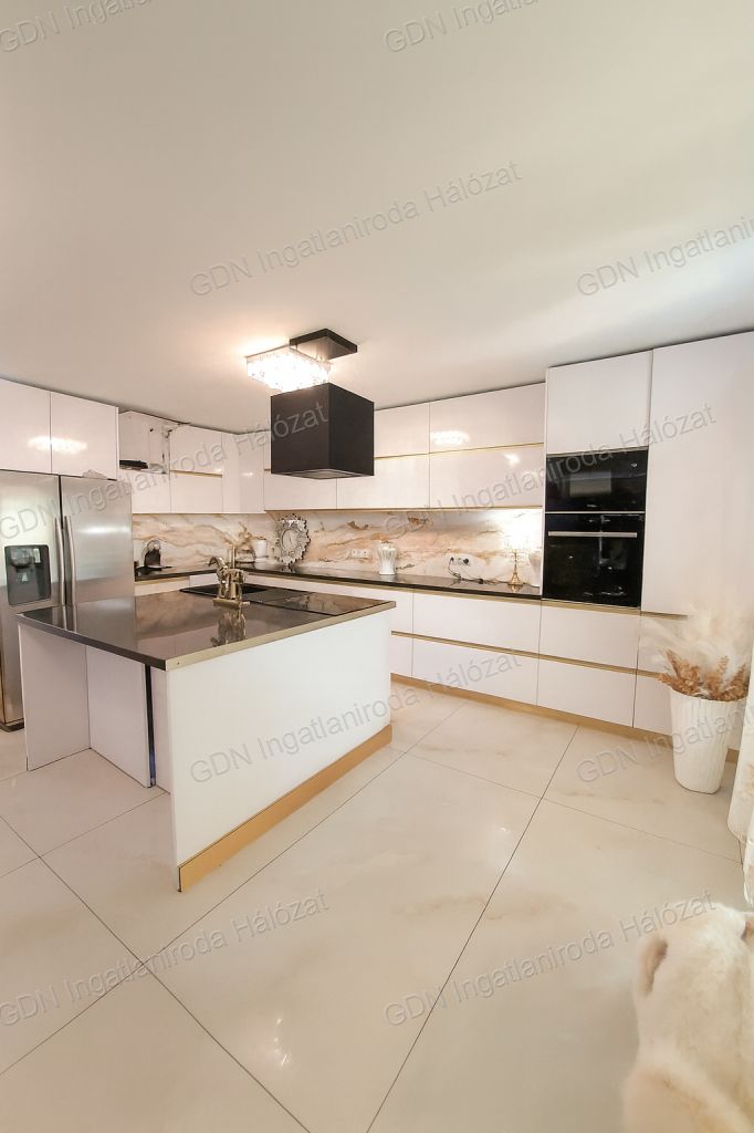 CSAK AZ IRODÁNK KÍNÁLATÁBAN! XXII. kerületben, Budafokon kínálunk eladásra egy egyszintes felújítás alatt álló, 5 szobás, 2 fürdőszobás, 150 m²-es alapterületű családi házat, amely egy 647 m²-es telken helyezkedik el. A házhoz tartozik egy 64 m²-es fedett terasz, amelynek beépítése jelenleg folyamatban van. A teraszon áthaladva a látogató egy tágas nappaliba érkezik, amely étkezővel és modern amerikai konyhával van kialakítva. A ház ideális nagycsaládosok számára is, hiszen a 150 m²-es lakótérben két nagy hálószoba található, közvetlenül mellettük fürdőszobákkal, WC-vel és gardróbszobákkal. Emellett két külön bejáratú gyerekszoba is rendelkezésre áll, így a lakás elrendezése kényelmes és praktikus. A helyiségek pontos elrendezését az alaprajz szemlélteti. Műszaki jellemzők: Az épület az 1960–70-es években épült vegyes falazattal, de 2024–2025-ben teljes körű felújításon esett át. Ennek részeként megtörtént a tetőcsere, vasbeton födém került kialakításra, valamint a teljes gépészet – fűtésrendszer és villanyhálózat – megújult. A nyílászárók cseréje is megtörtént, háromrétegű, hő- és hangszigetelő műanyag ablakok, új bejárati ajtó és teraszajtó került beépítésre. A ház külső falaira 15 cm-es dryvit hőszigetelés került. Fűtés: A fűtés hőszivattyúval történik, minden helyiségben padlófűtéssel. Parkolás: A kertben több autó számára térkövezett felszíni beálló biztosított. Extrák: A házban 4 db hűtő-fűtő klíma található. Pince szinten 110 m² tárolási lehetőség áll rendelkezésre. Környezet: Az ingatlan csendes, kertvárosias környezetben található, kiváló tömegközlekedéssel és közeli bevásárlási lehetőségekkel (ALDI, Campona, Tesco). A közelben óvoda, két tannyelvű iskola és gimnázium is elérhető. Autóbusszal 15–20 perc alatt elérhető a 4-es metró kelenföldi végállomása, a belváros pedig sétatávolságban lévő buszjáratokkal fél óra alatt megközelíthető. Az ingatlan előre egyeztetett időpontban tekinthető meg – akár hétvégén is. Forduljon hozzám bizalommal – várom hívását, érdeklődését! (G.I.)