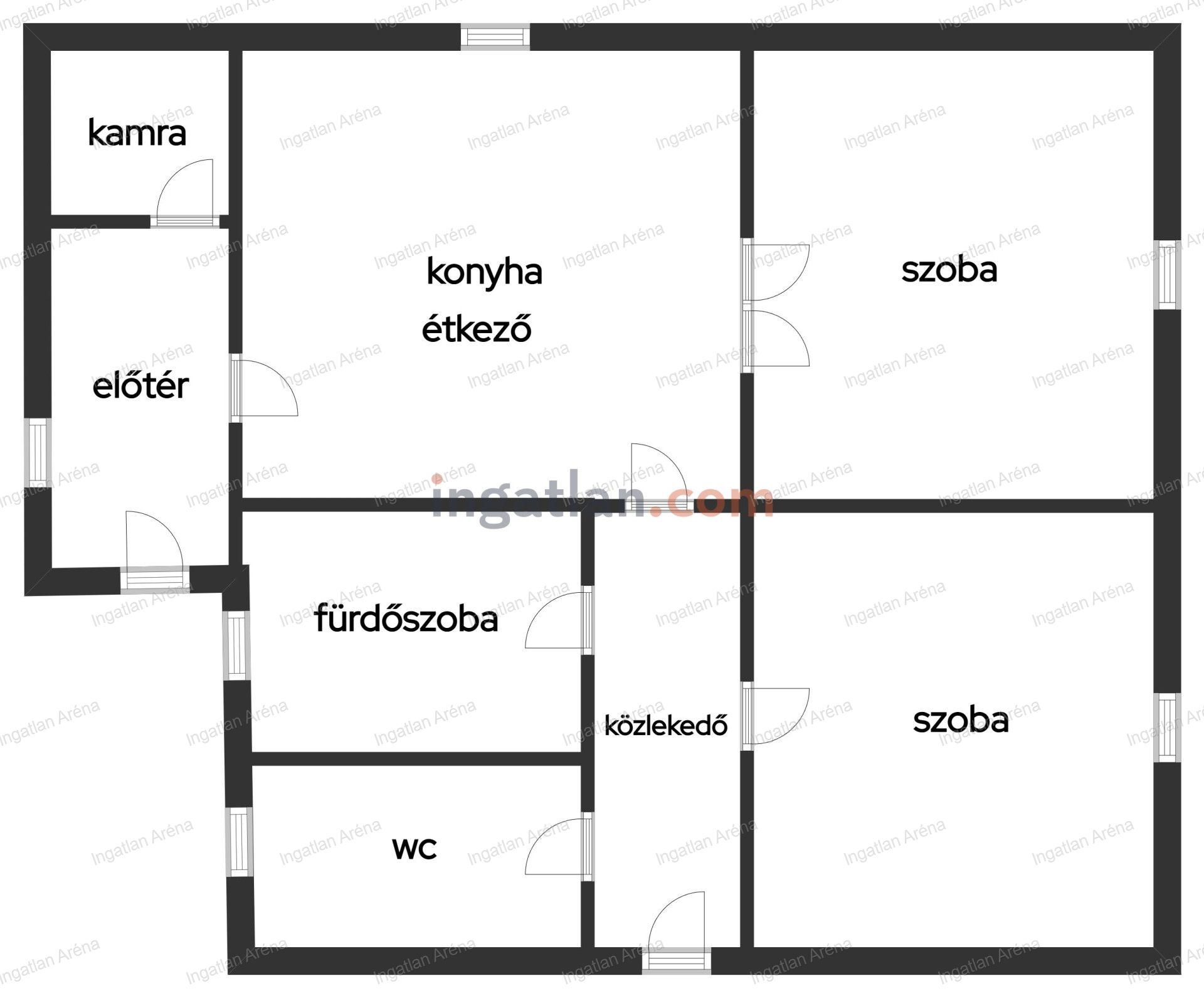 3 külön nyíló szoba (az egyik korábban konyhaként szolgált)
