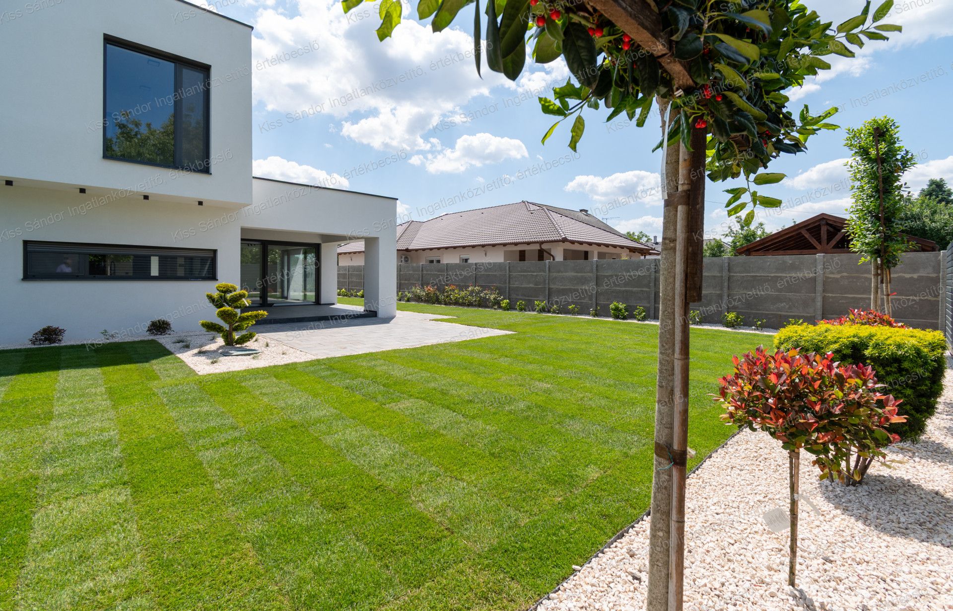 Debrecen, Jozsa, modern-style family house for sale, net 273 m2, ground floor, first floor, built on a 843 m2 plot. - brick masonry, with 15 cm thermal insulation, -metal structure, thermally insulated doors and windows with 3-layer glazing, - 4 bedrooms larger than 12 m2, - living room, - 39 m2, double garage, - 2 bathrooms, - separate toilet, - covered terrace, - heat pump heating system, floor heating, - ceiling cooling, -room-by-room regulation, - central heat recovery ventilation system, - alarm and camera system, can be connected to remote monitoring, - electric car charger, - high-quality coverings, sanitary ware, fittings, - central water softener, - mechanized kitchen, bathroom furniture, - options: solar panel, combi sauna, jacuzzi, - even furnished and equipped! Available to move in immediately! Write on WhatsApp!