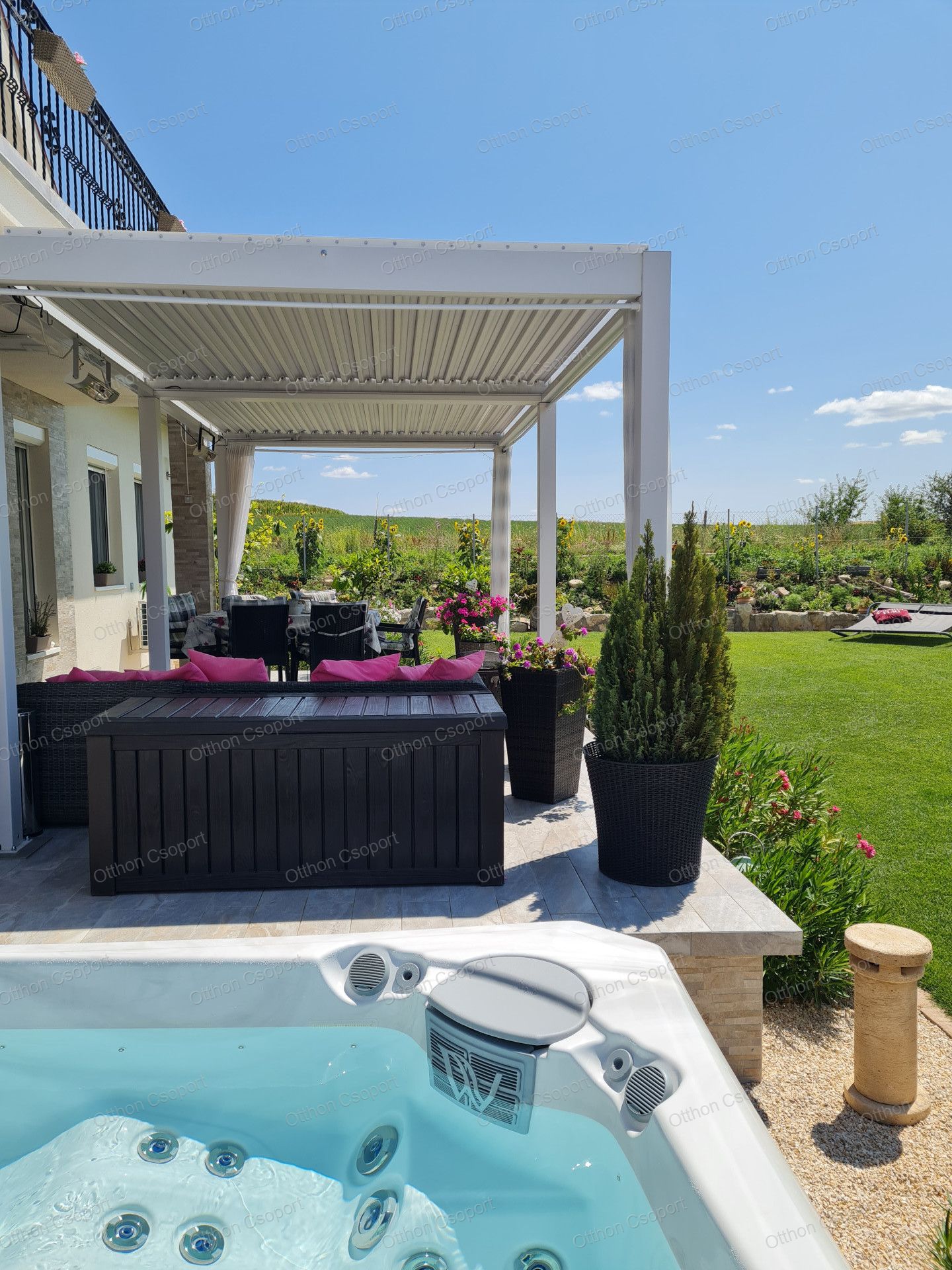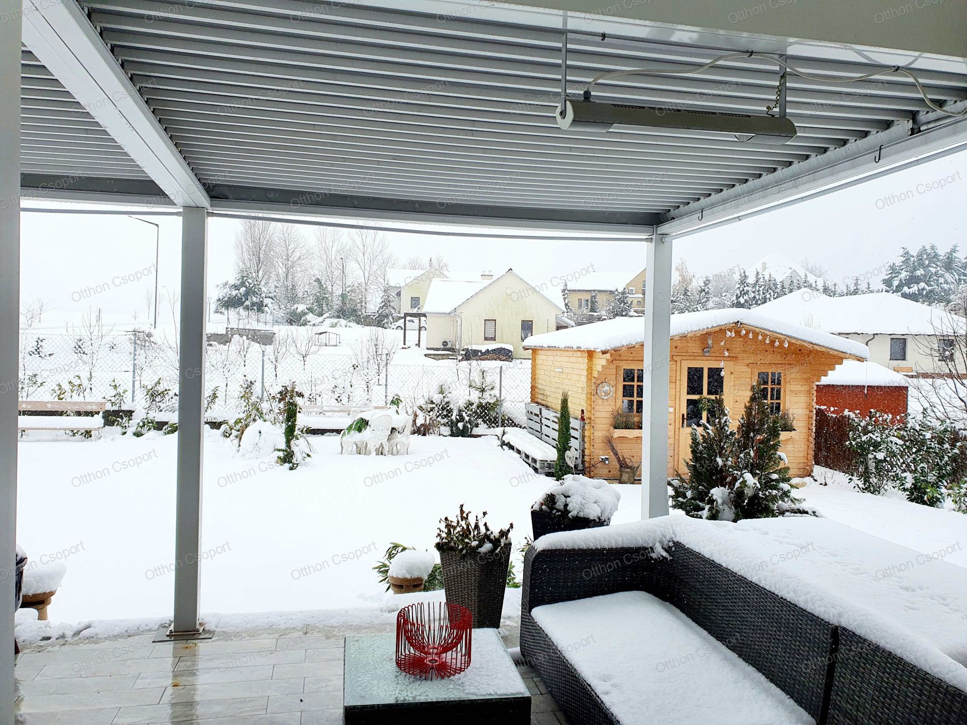 - bioklimatikus pergola a teraszon – szabályozható fény és árnyék