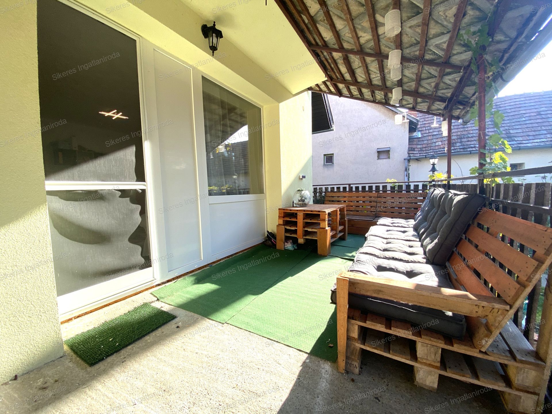 A kert maga a nyugalom szigete: parkosított, gondozott, árnyékot adó diófával, új füvesítéssel, hangulatos terasszal és szőlőlugassal. A kerti élményeket tovább fokozza a kőből épített tűzrakó bográcsállvánnyal, valamint egy tágas melléképület, amelyben minden eszköznek jut hely a kerékpároktól a kerti játékokig.