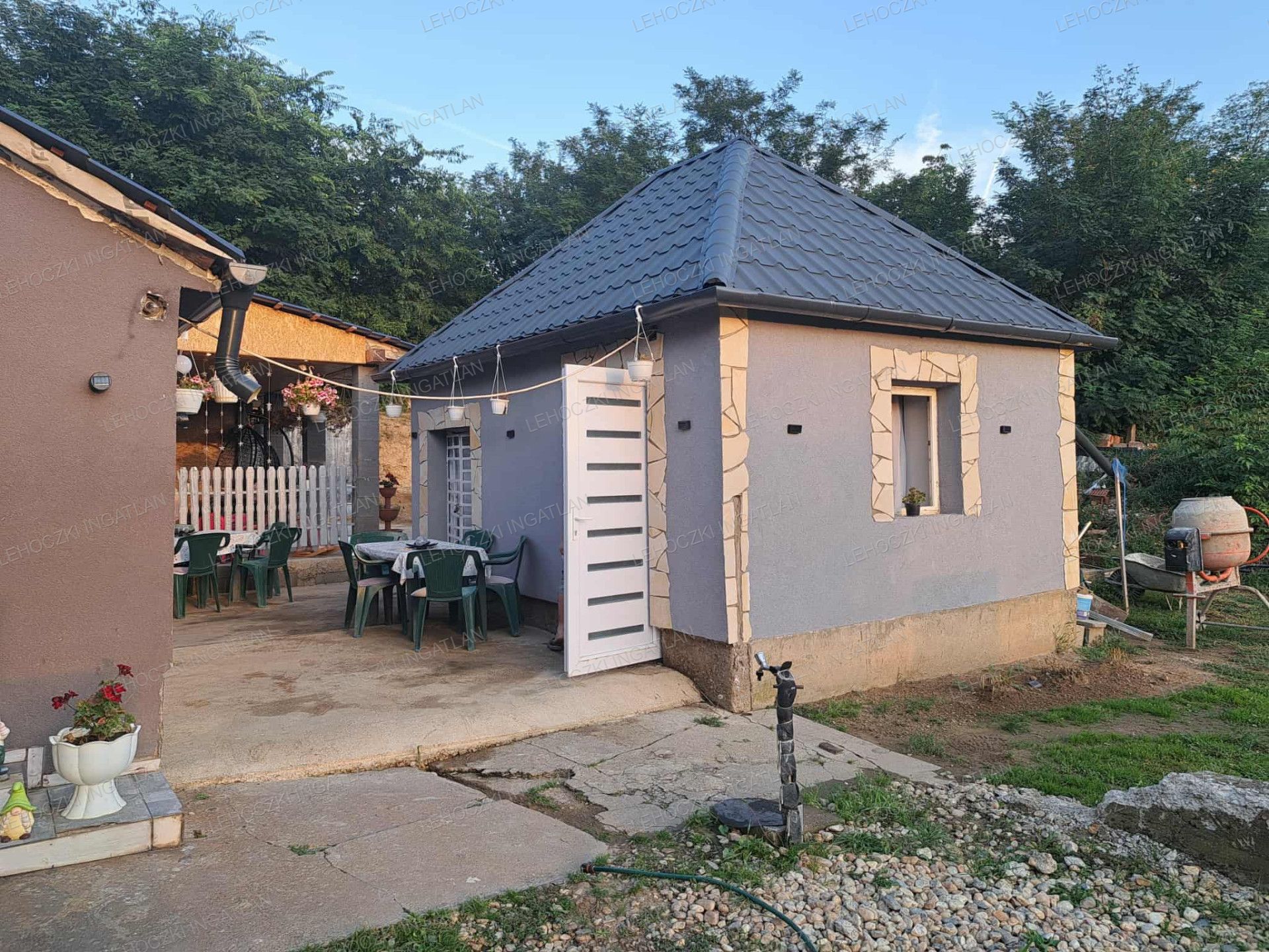tető szerkezete újra lett lécezve és új cserepeslemez fedést kapott antracit színben,
