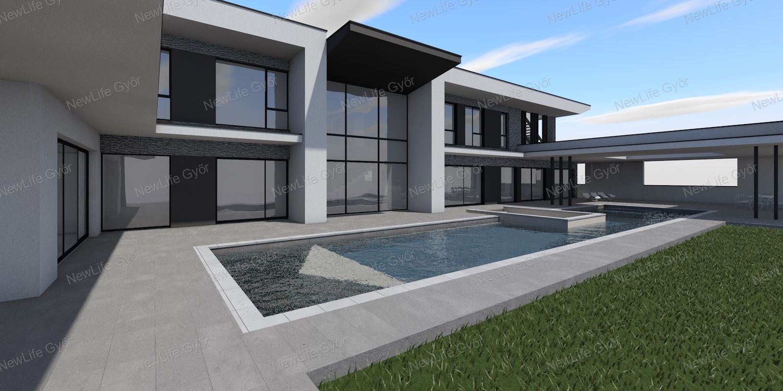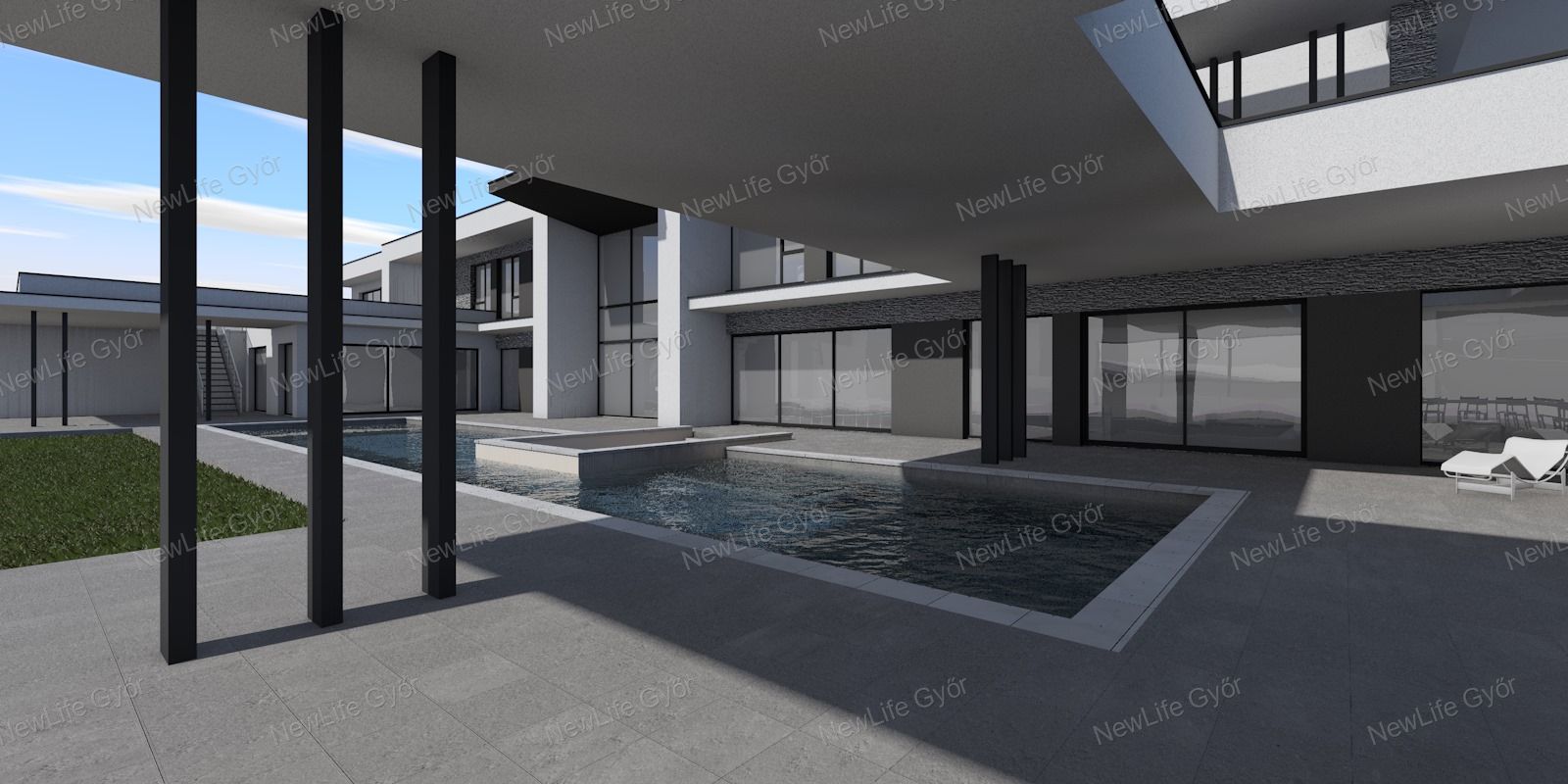 Már megépített beltéri medence is tartozik hozzá, a látványtervek szerint pedig egy egyedi kültéri medence készül, amelynek közepén grillezőhely kap helyet – a vízbe sétálva körülölel a luxus érzése.