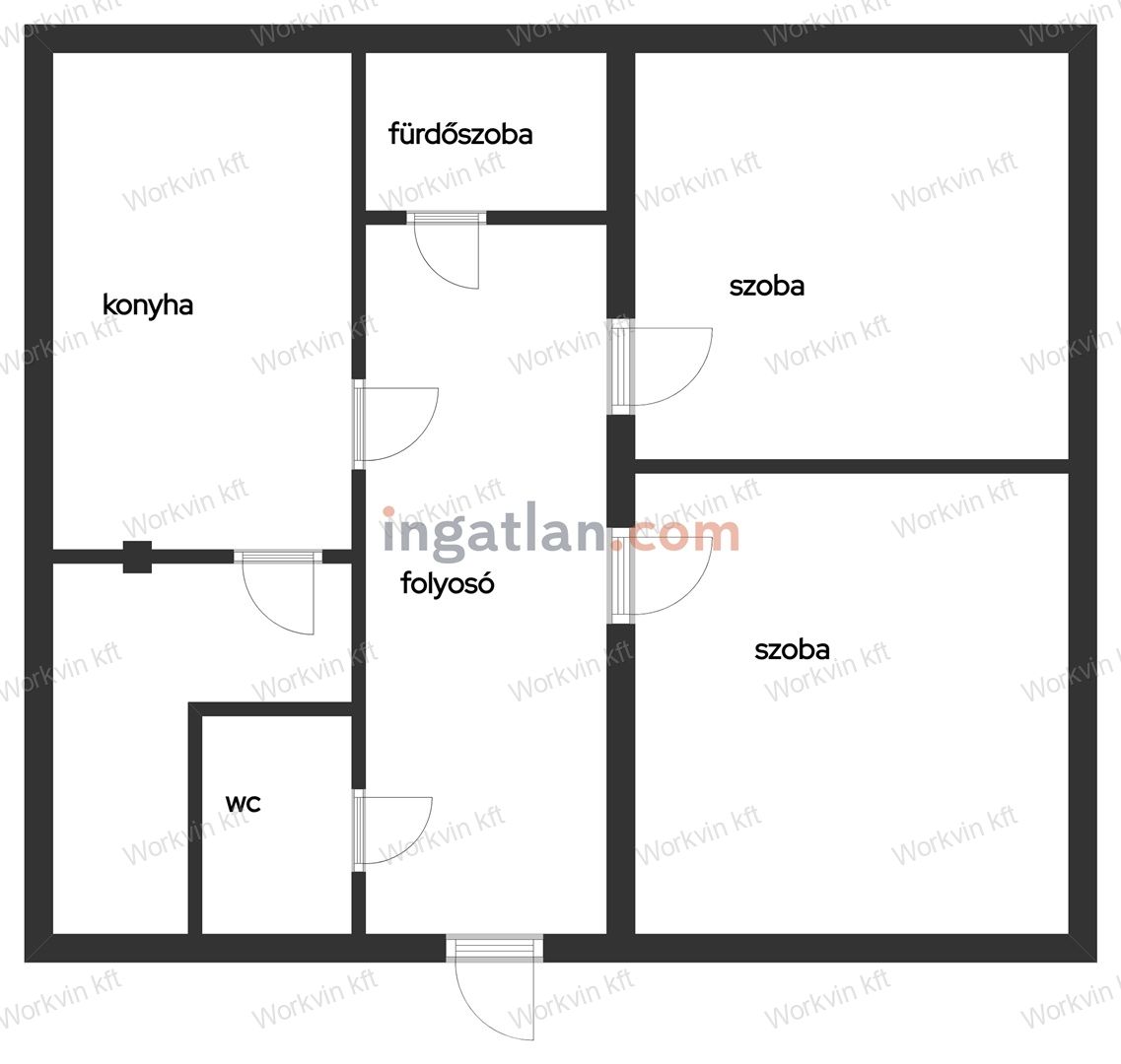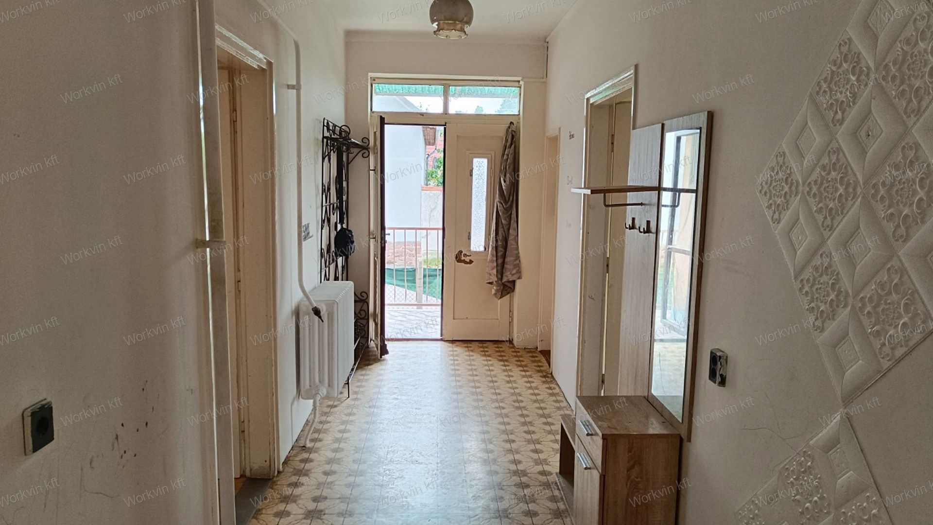 A jelenlegi elosztás: két szoba, konyha, széles folyosó, valamint egy kamra, fürdőszoba külön wc található. Az épület szerkezete lehetőséget nyújt egy átgondolt, modern átalakításra, hiszen belül csak egy főfal található, így a belső terek szabadon újratervezhetők, akár 3-4 szobás otthonná is alakítható.