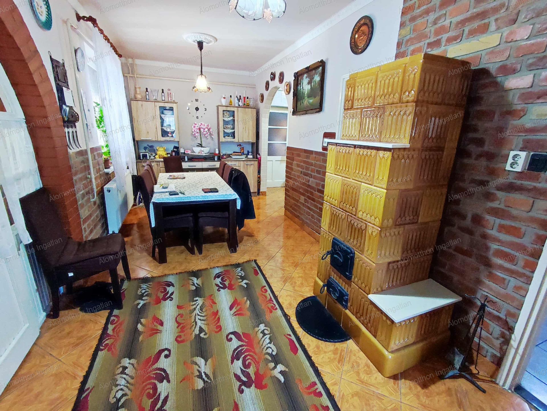 Cserép kályhát 2021-ben épitették ami az étkezőben található.