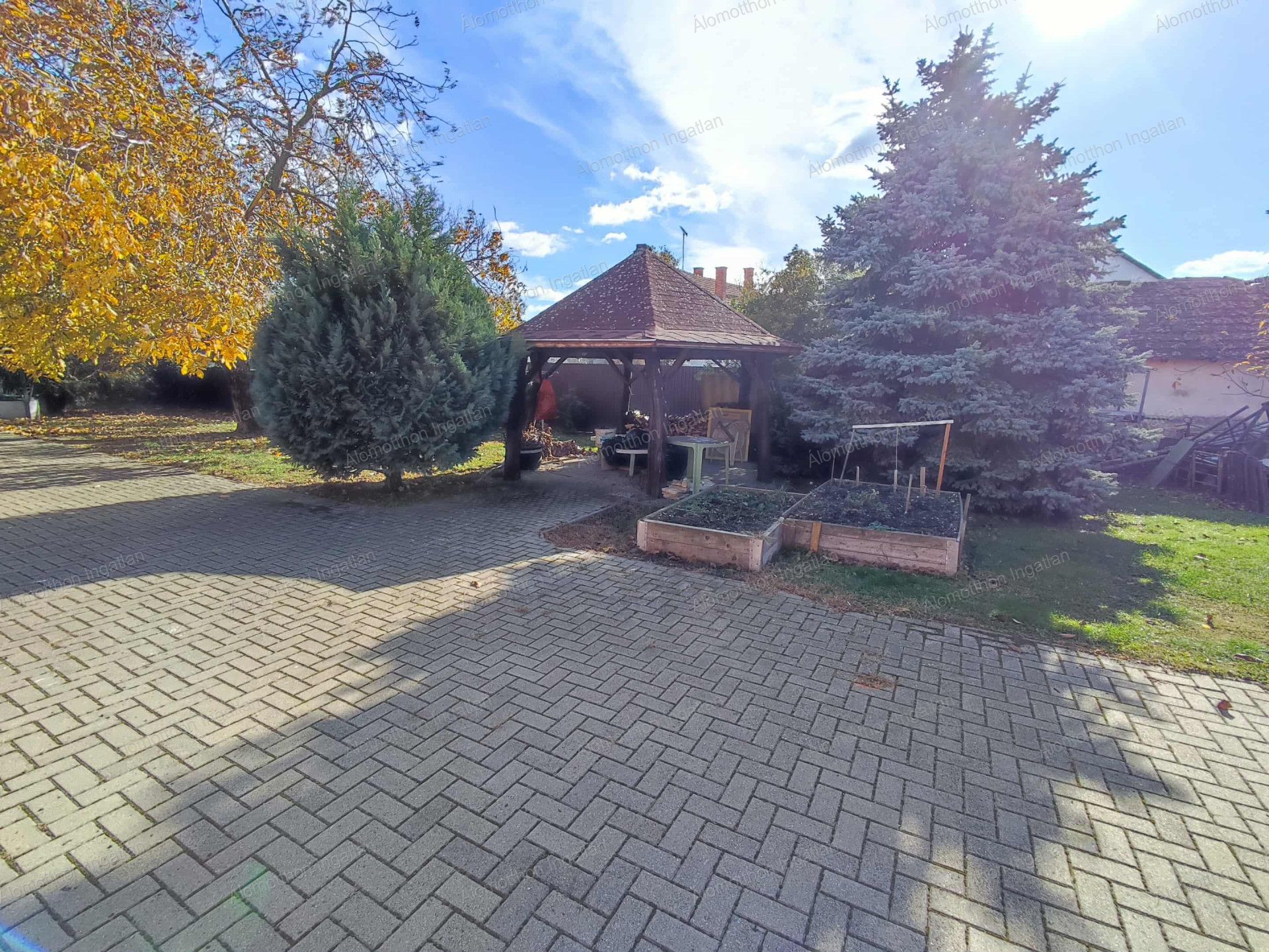 A kertben van egy Filagória 15 m2, ahol beépitettek egy bográcsozót, és a kertben van egy ásott kút, locsolásra alkalmas.