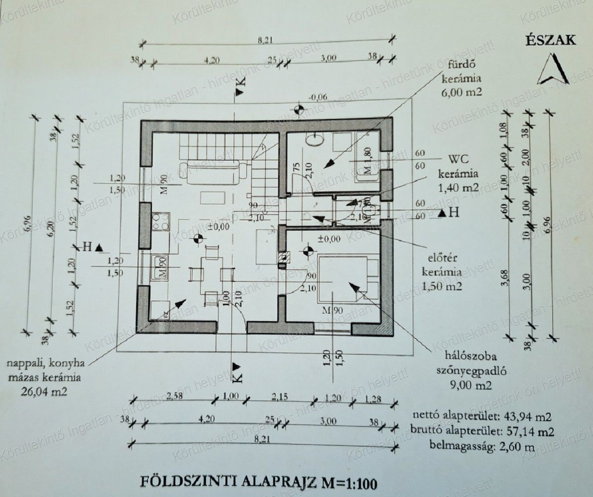 A ház földszintjén 26 m2-es, amerikai konyhás nappali, egy 9 m2-es szoba, egy tágas fürdő és külön wc, a tetőtérben két, külön nyíló szoba és egy előkészített vizesblokk kapott helyet.