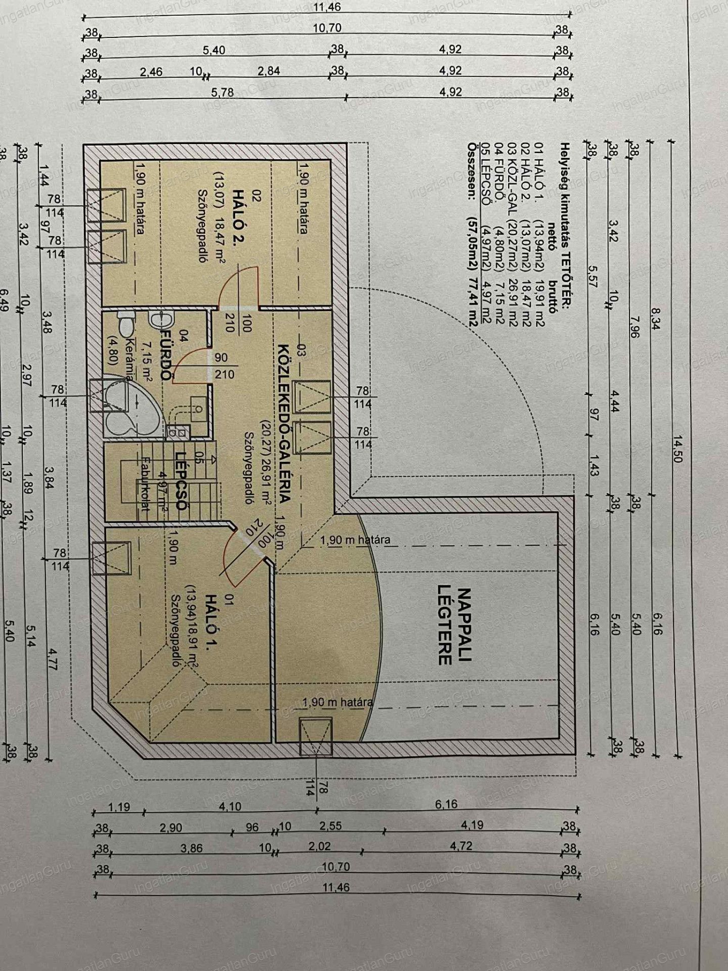 -Emelet: 2 szoba + galéria + közlekedő + kádas fürdőszoba wc-vel