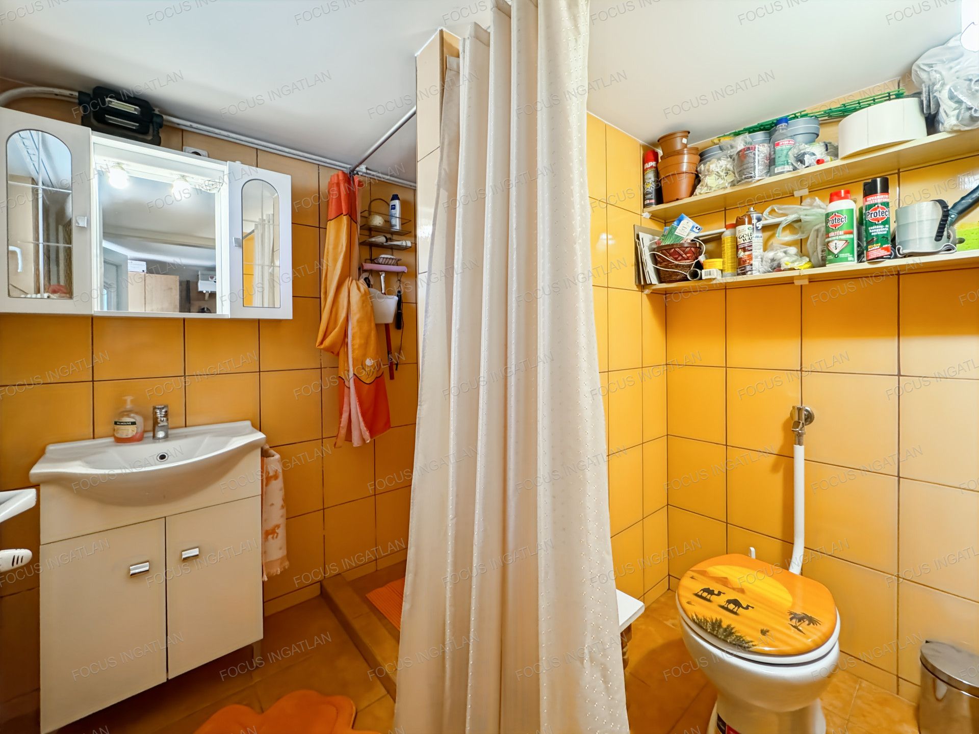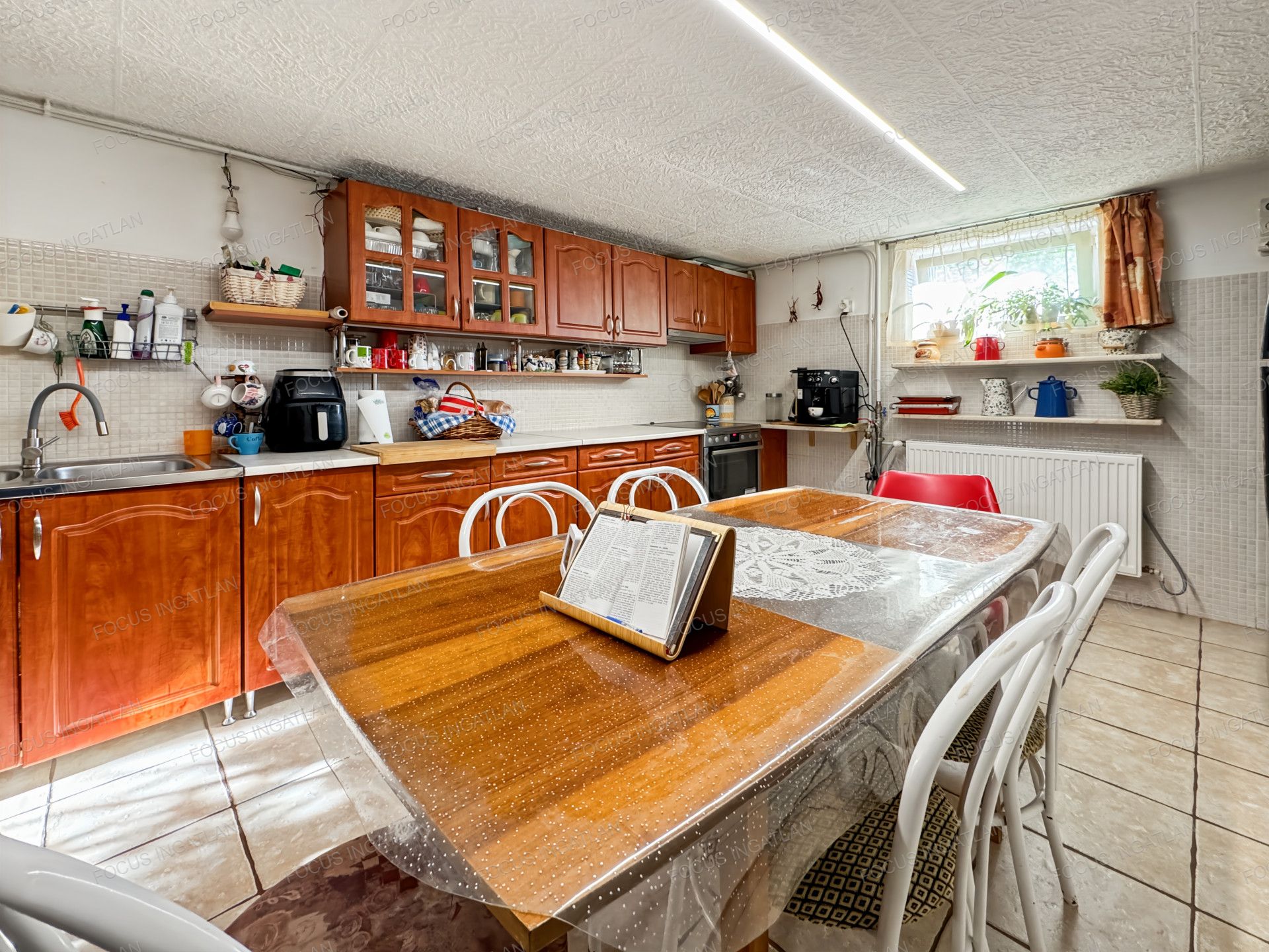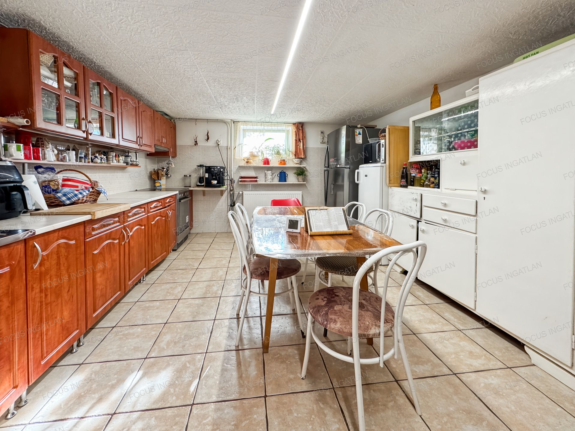 Az ingatlan földszintjén a konyha még kialakításra vár, de minden szükséges kiállás és csatlakozás rendelkezésre áll, így az új vevő a saját ízlése szerint rendezheti be a helyiséget.
