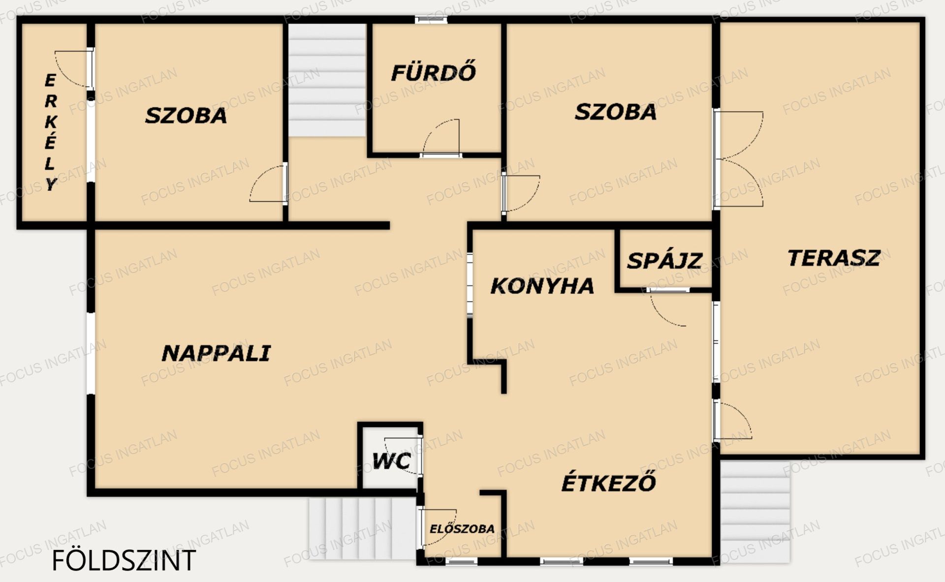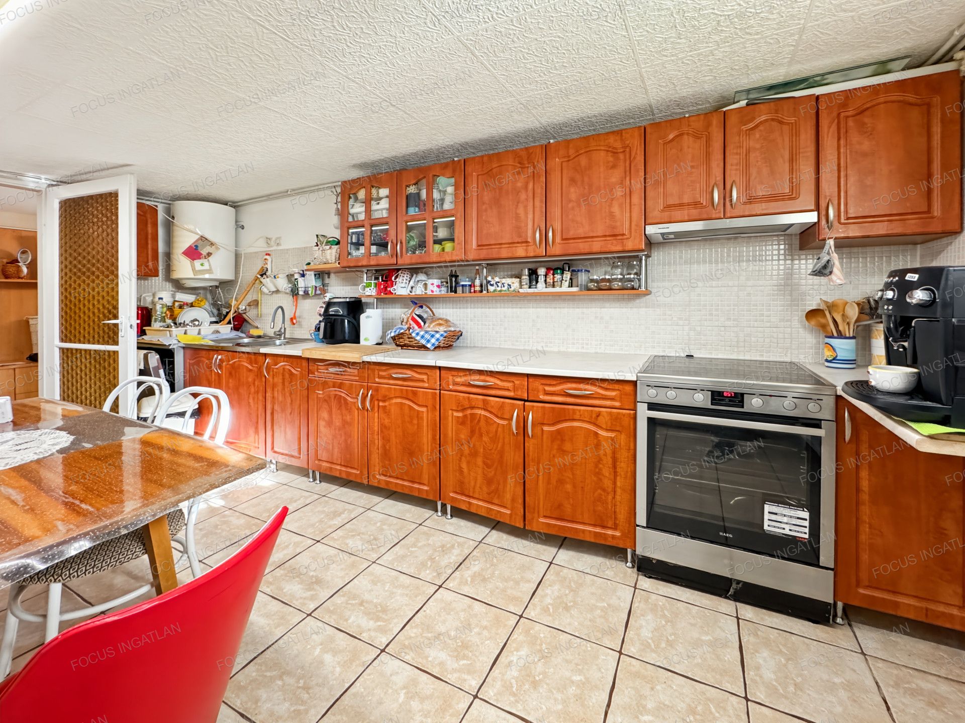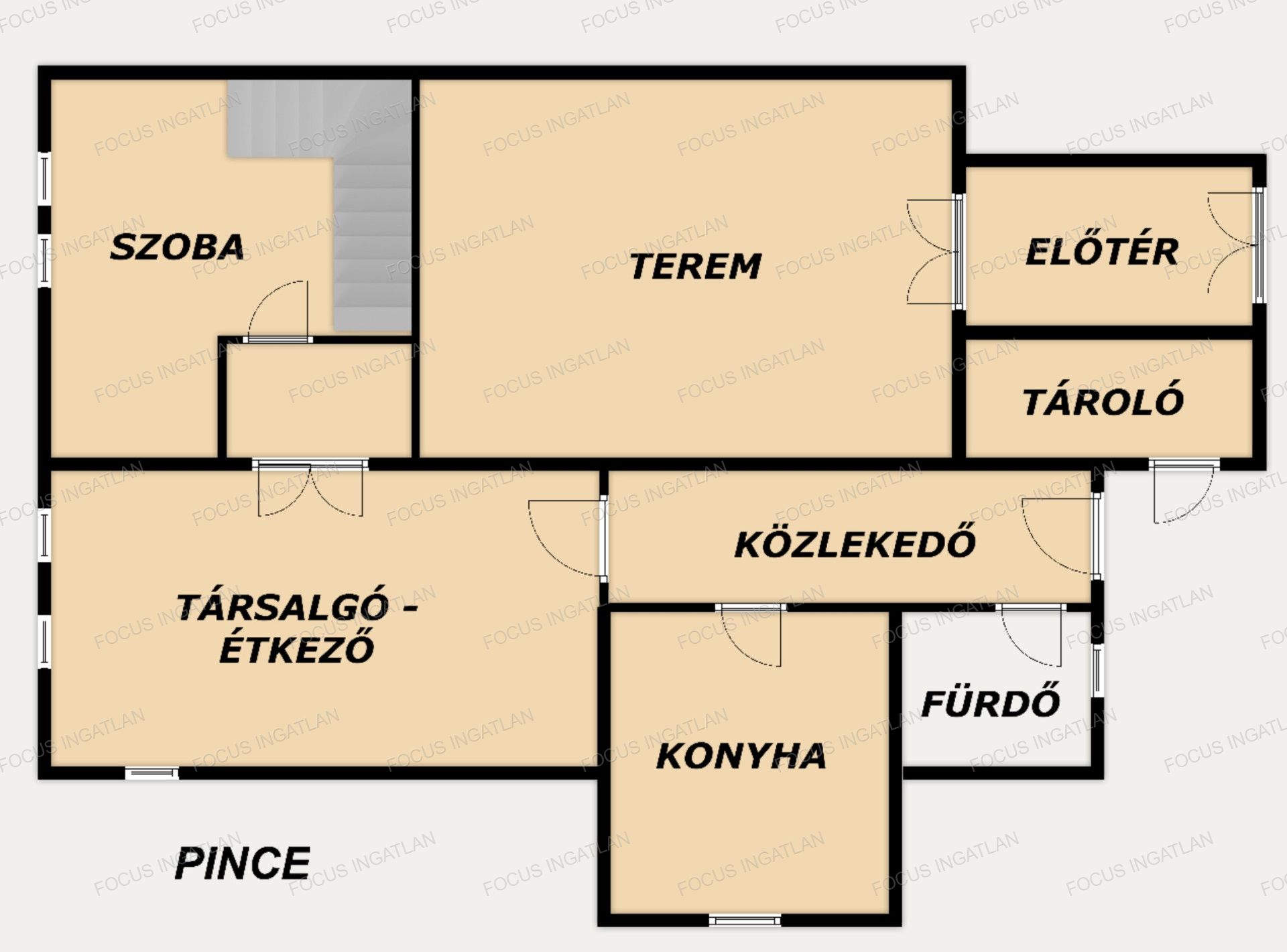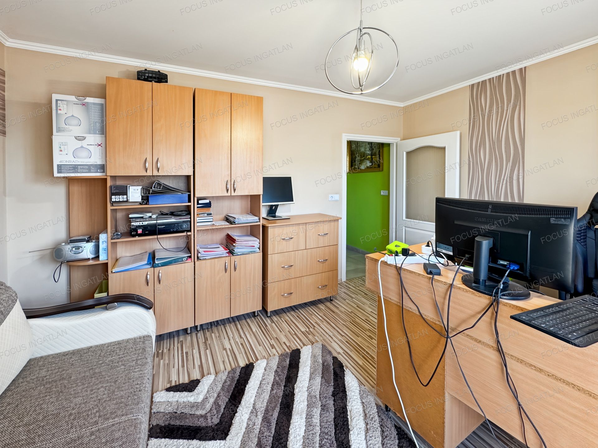Az ingatlan földszintjén a konyha még kialakításra vár, de minden szükséges kiállás és csatlakozás rendelkezésre áll, így az új vevő a saját ízlése szerint rendezheti be a helyiséget.