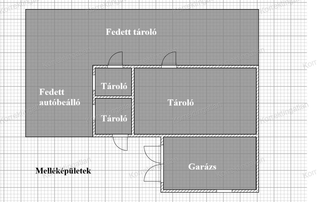 -53nm melléképület garázzsal, fedett autóbeállóval és tároló helyiségekkel