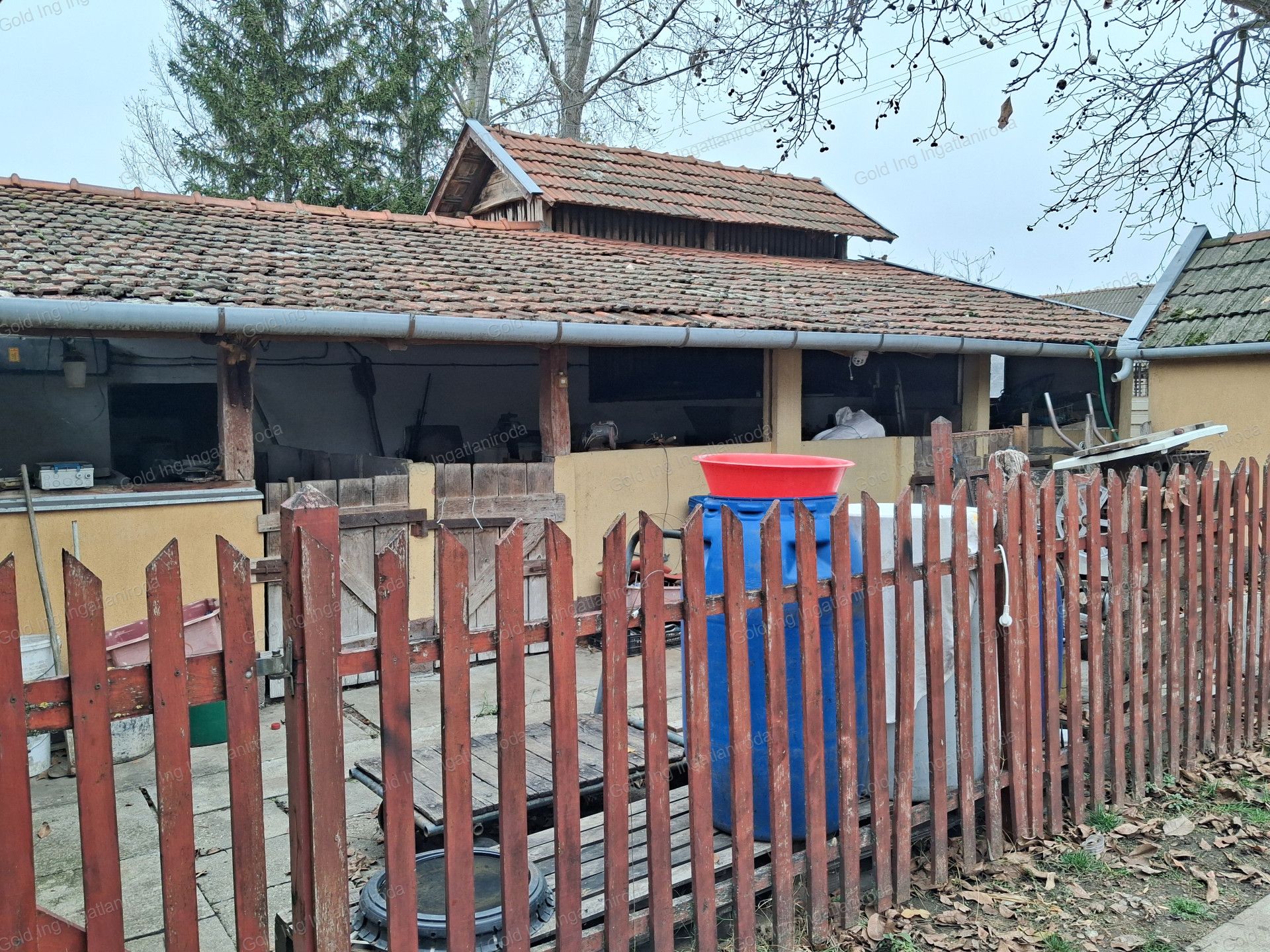 Az udvaron nagyon jó állapotban lévő, jól hasznosítható melléképületek vannak. Egy 16 nm-es, hőszigetelt garázs bepolcozva, az autón kívül, rengeteg befőttnek biztosít fagymentes helyet. Takaros kis baromfiól és udvar, kútház, füstölő, tároló, góré, 50 férőhelyes sertésól. Ezek a főépülettel harmonizáló külső megjelenést kaptak, azonos színű nemesvakolattal. Két kibetonozott 30 m3-es akna is található az udvaron, medencének, meszesgödörnek, trágyatárolónak is alkalmasak.
