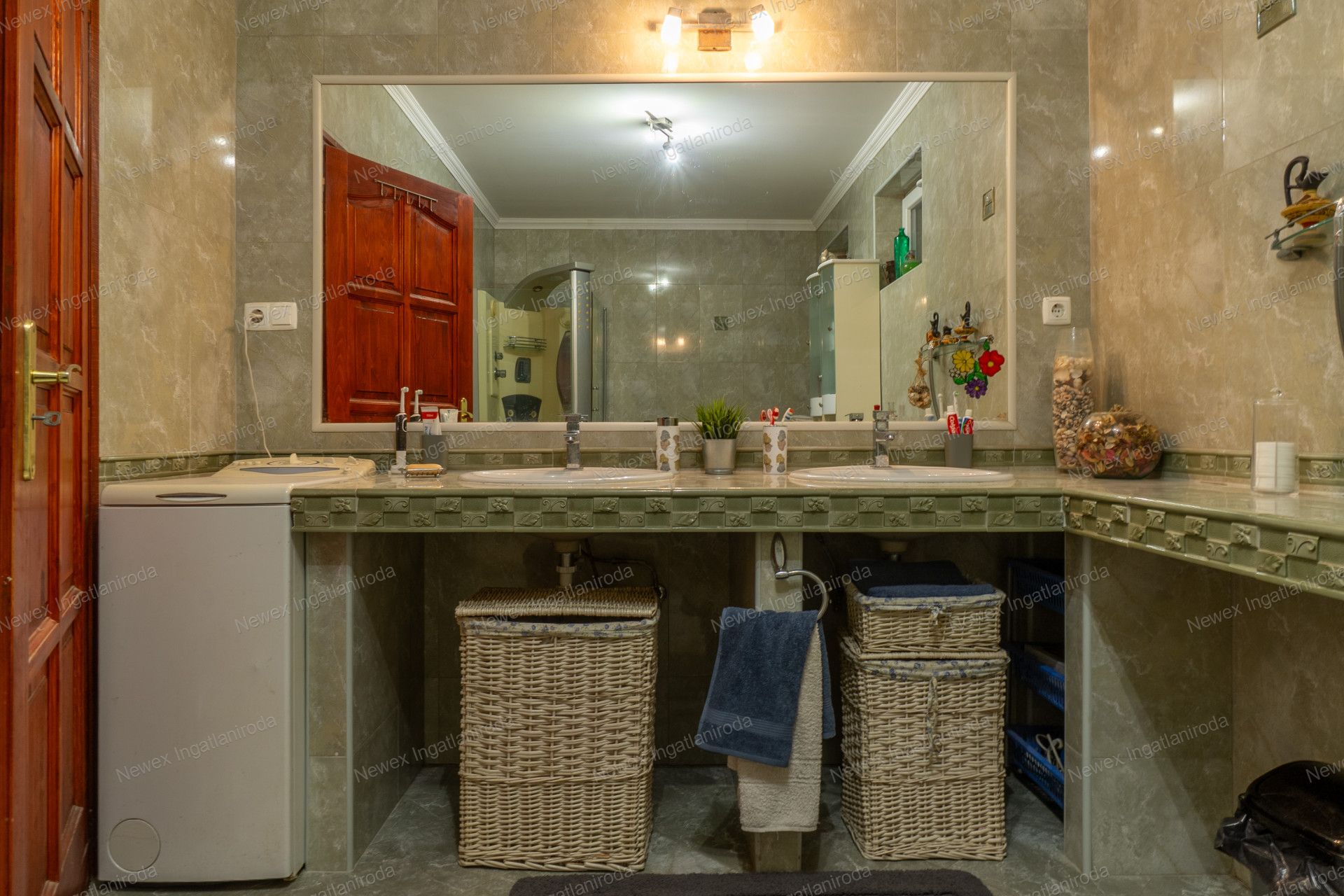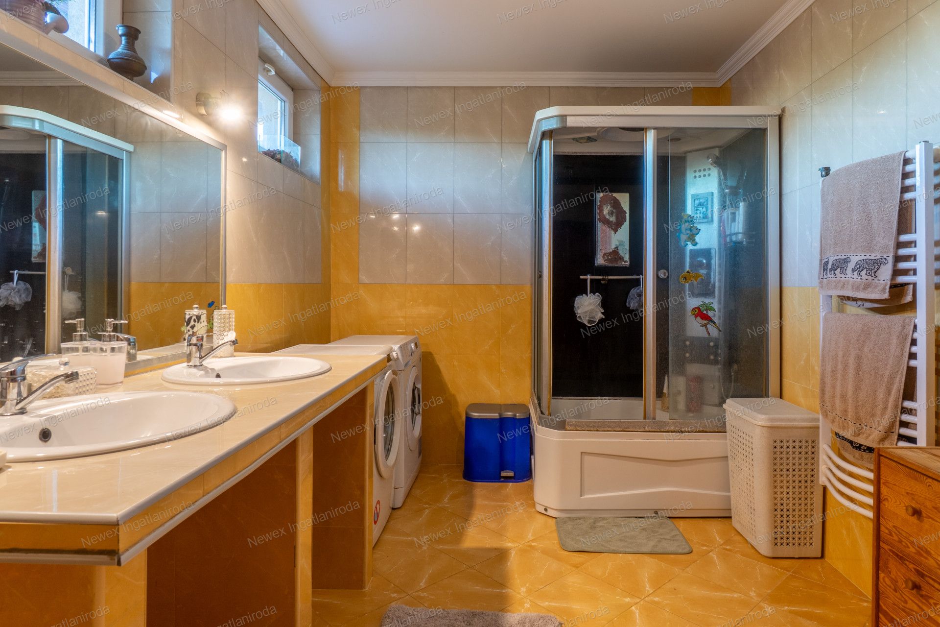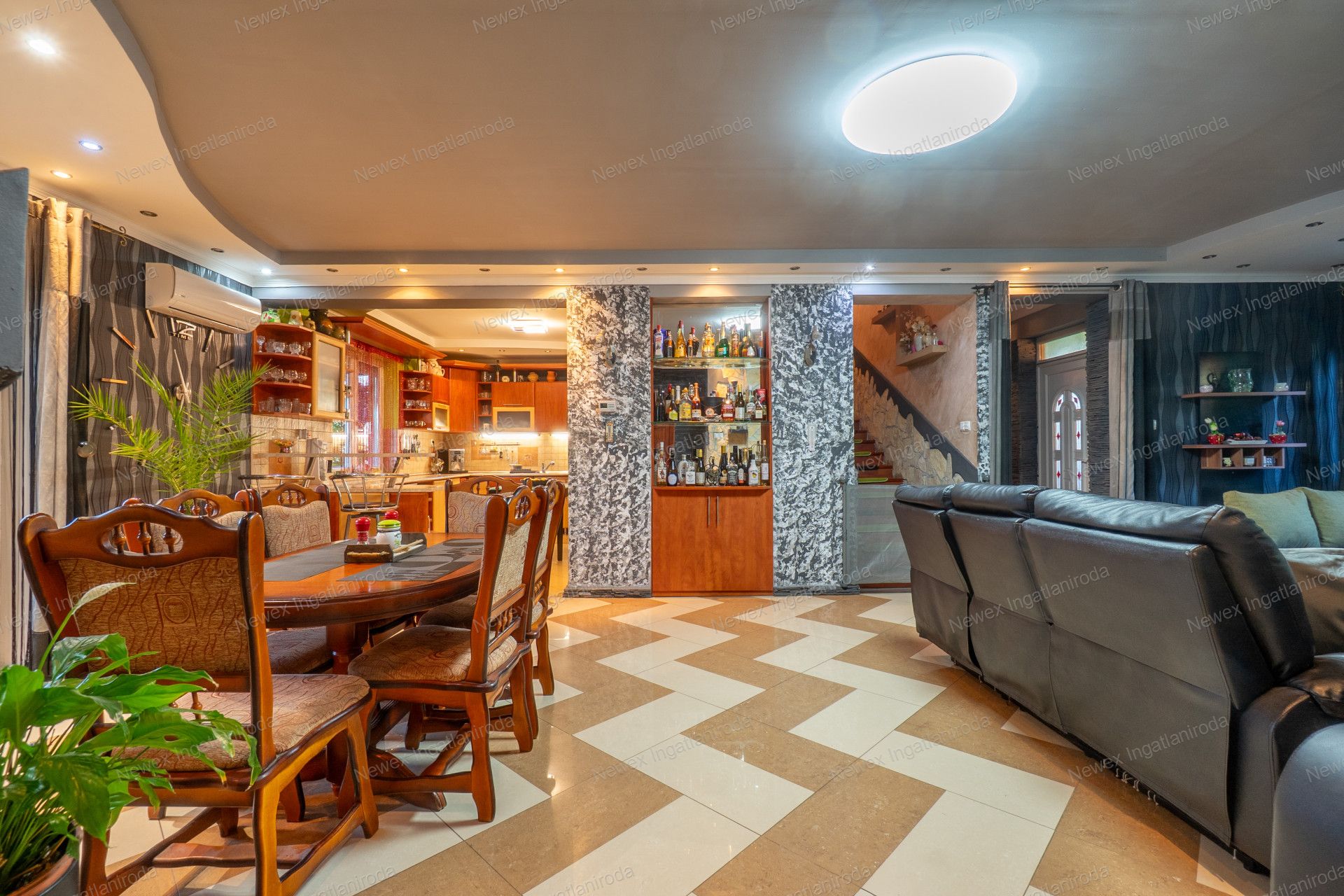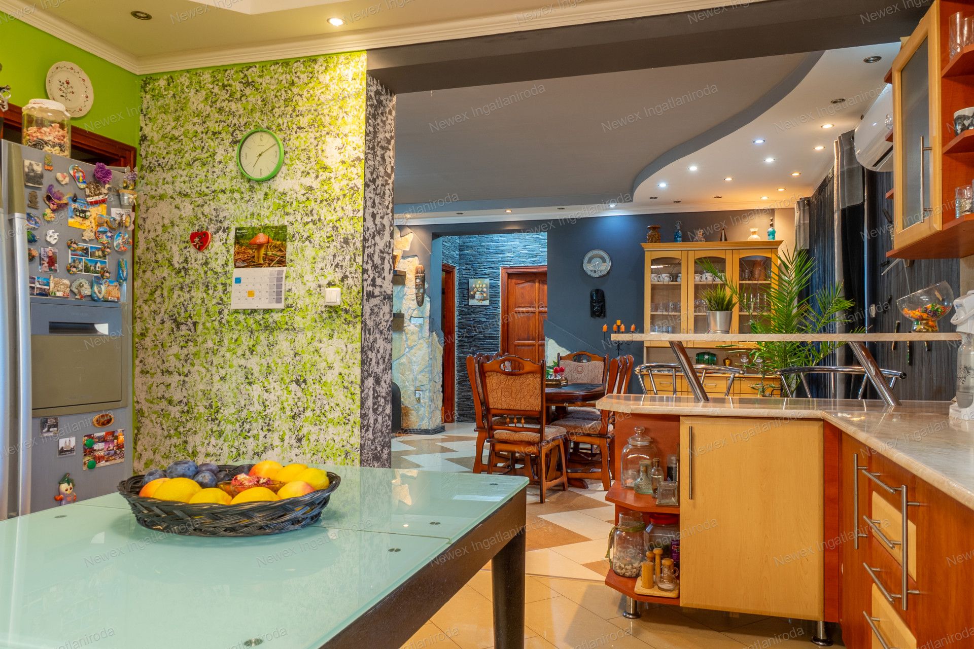 A két ház együttes alapterülete 267 négyzetméter (170+90), amit egy közös folyosó köt össze, de saját bejárattal is rendelkezik mindkettő.