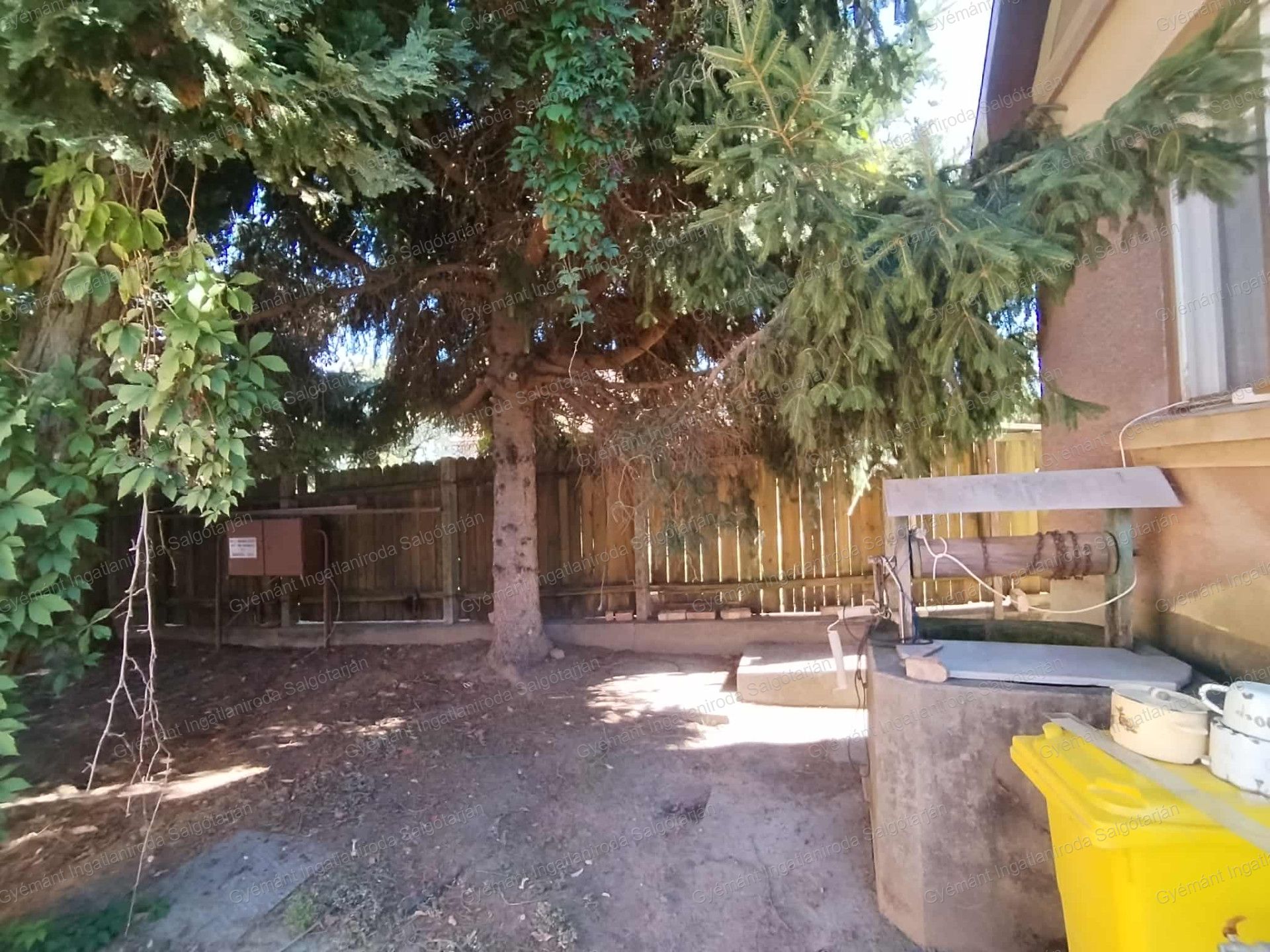 A téglából épült, 75 m²-es családi ház 877 m²-es saroktelken, a falu szélén található.
