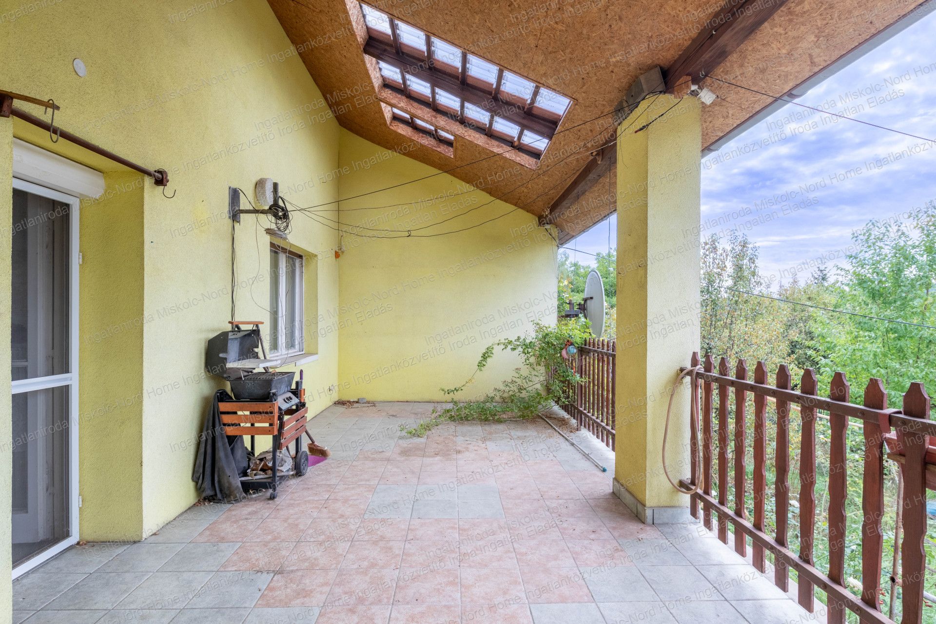 A kertben gyümölcsfák, valamint a garázs mellett fedett kocsibeálló is helyet kapott. A környék kifejezetten keresett és kedvelt, Miskolc belvárosa néhány perc alatt elérhető.