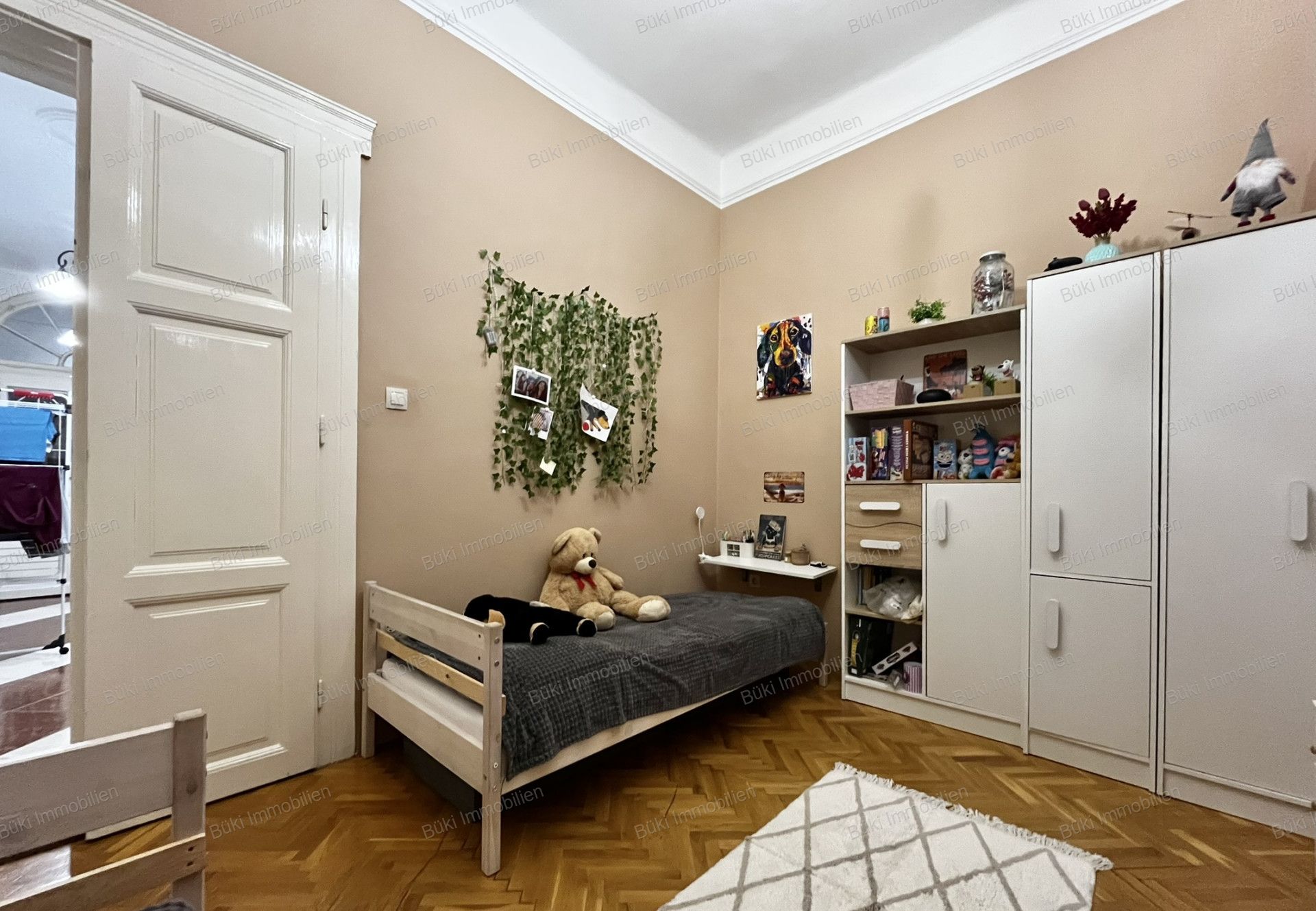 A lakás három külön bejáratú szobát kínál. A szobák nagyméretű ablakaiból bőséges természetes fény árad be, ami egész nap világossá teszi a tereket. A parketta jó állapotú, klasszikus halszálkás mintázata pedig otthonos, időtálló hangulatot biztosít.