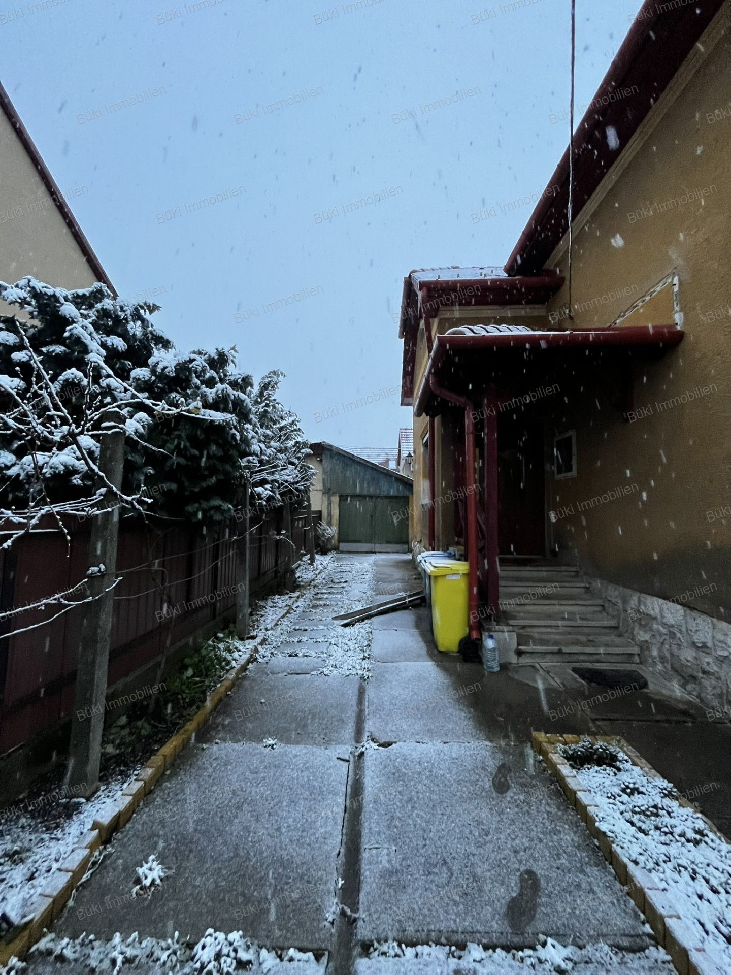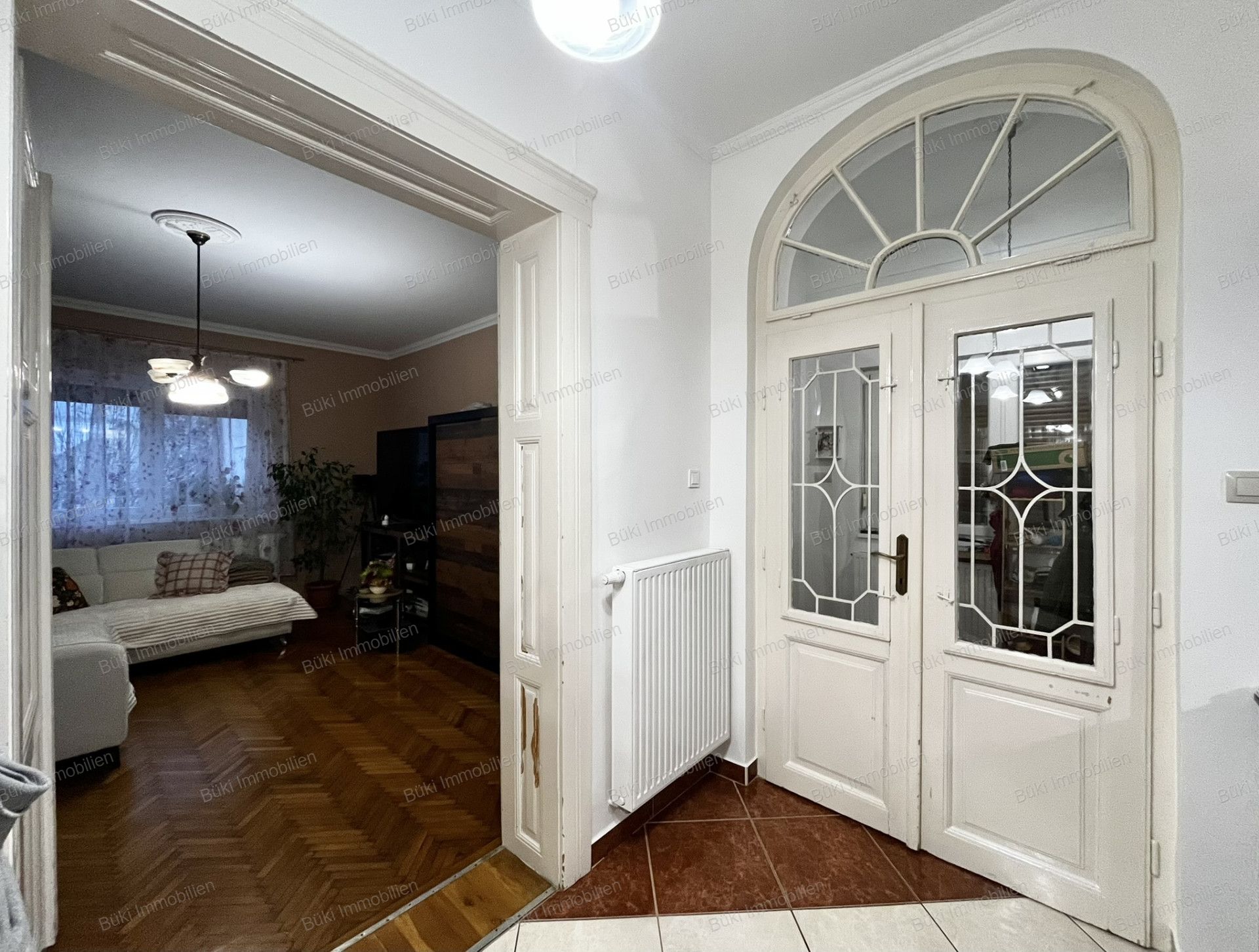 A ház már belépéskor megnyerő: a tágas előtér és az egyedi íves áthidalóval díszített duplaajtó elegáns, karakteres összhatást ad, amit a teljesen felújított belső terek és a világos színvilág tovább erősítenek. A nyílászárók modern, műanyag szerkezetűek, redőnnyel felszerelve, a beltér pedig harmonikus, egységes és rendezett.