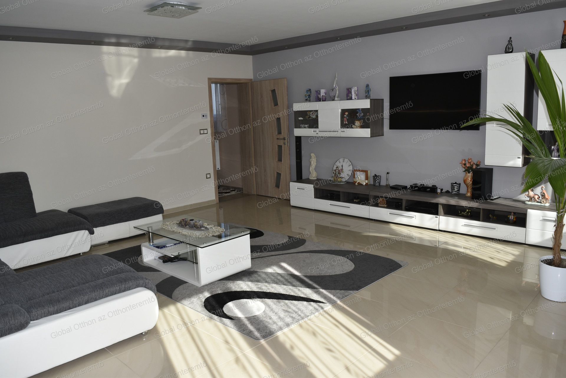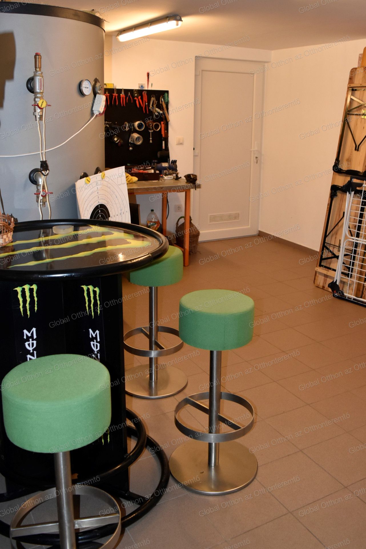 A pinceszinten 40 nm dupla garázs , mosókonyha ,tároló helyiség, a földszinten konyha -étkezővel, egy halószoba fürdőszobával, szinteltolással hatalmas, tágas nappali kapott helyet, míg a következő szinten 3 hálószoba fürdőszobával és külön WC-vel került megépítésre.