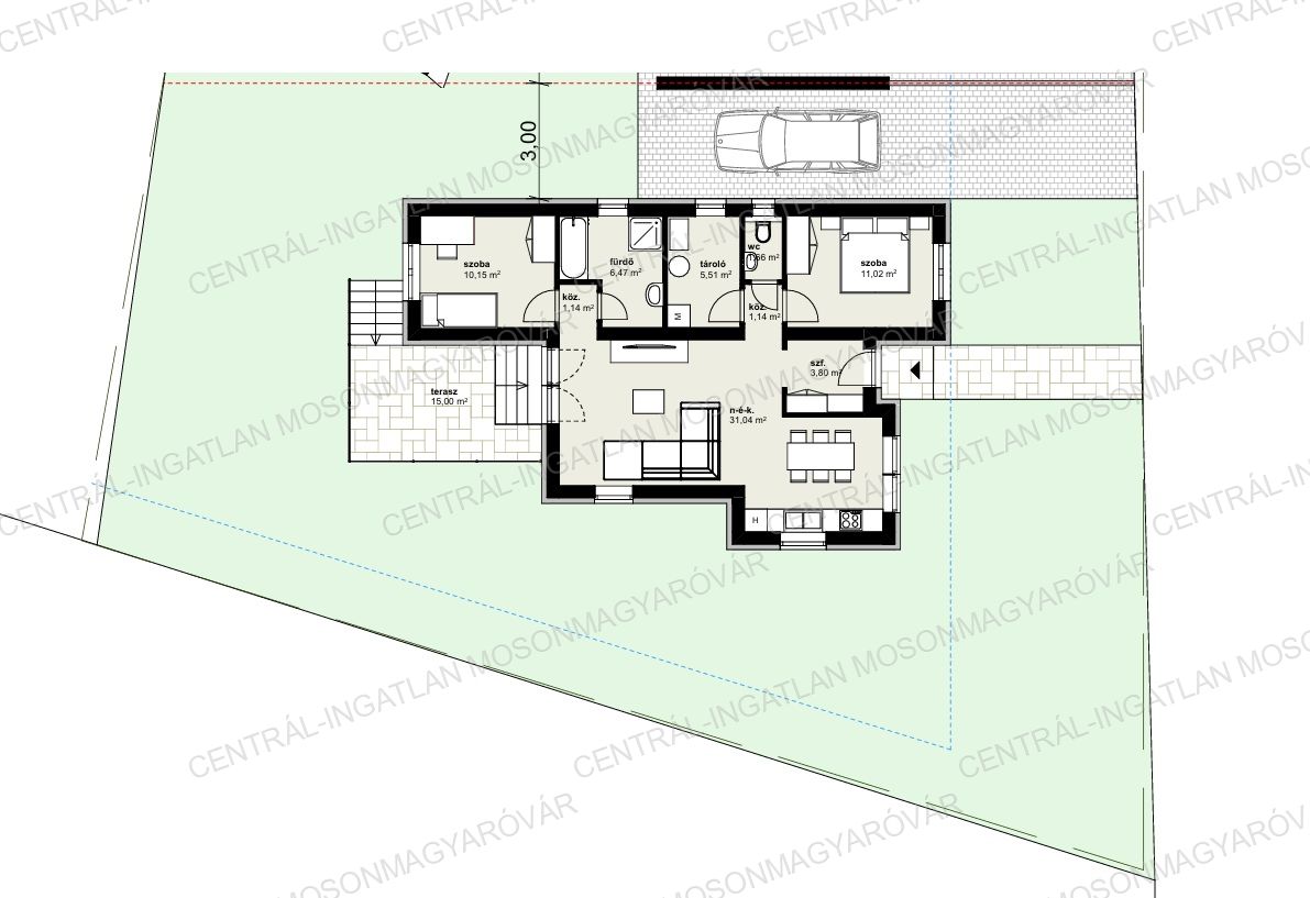 Közvetlenül Mosoni-Dunára néző, kiépült kertvárosi részen (nem lakóparkban!), új építésű, 3 szobás családi házat kínálunk. A házhoz fedett kocsibeálló tartozik.