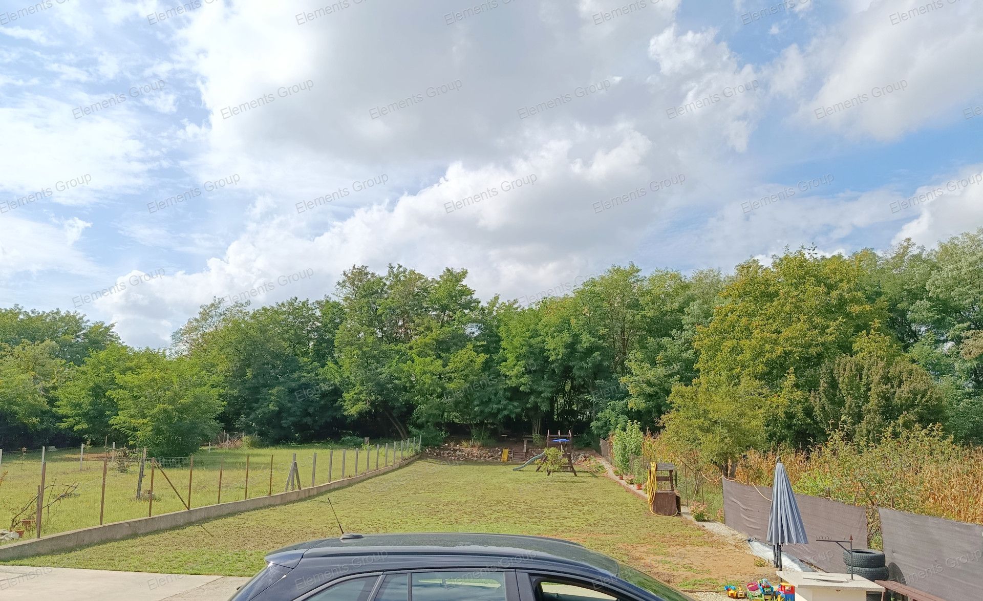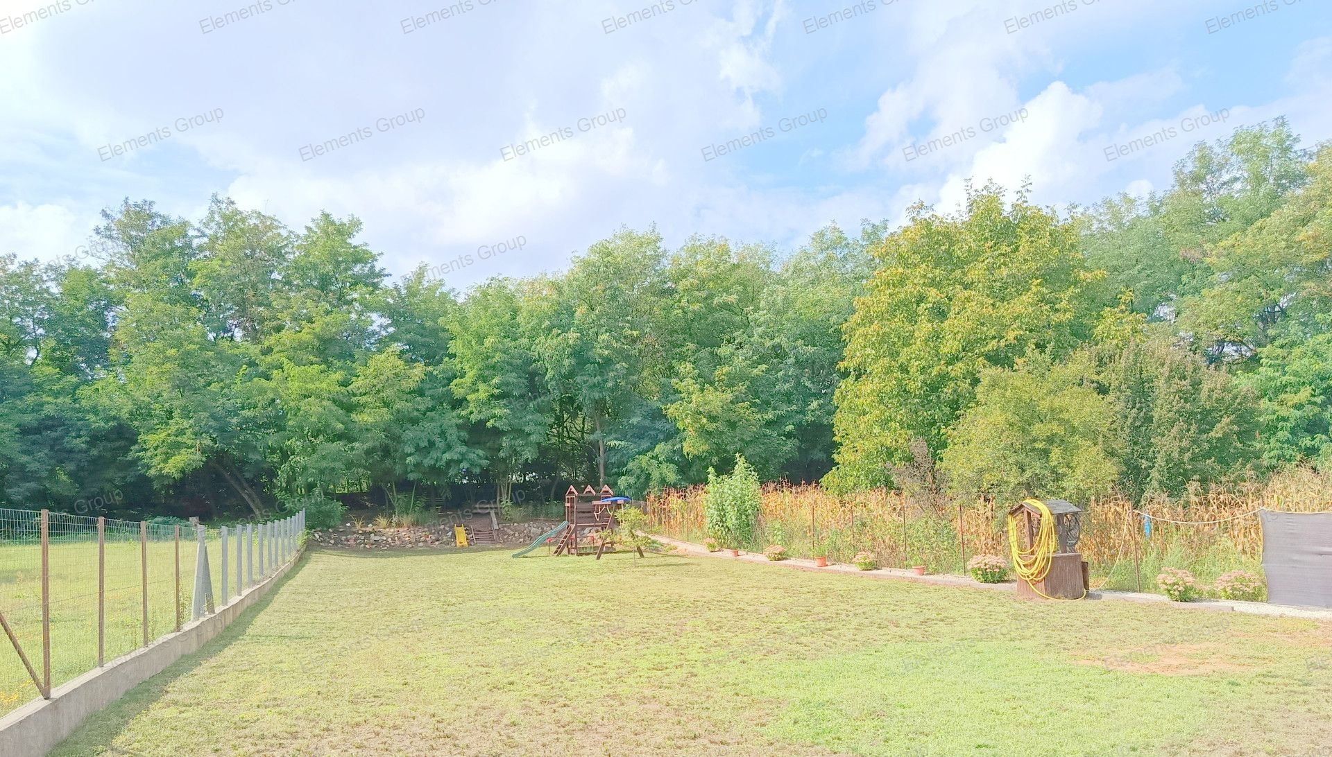 A teraszról szép kilátás nyílik a telek végi erdősávra, előtte saját játszótér. Az udvar számos lehetőséget rejt magába.