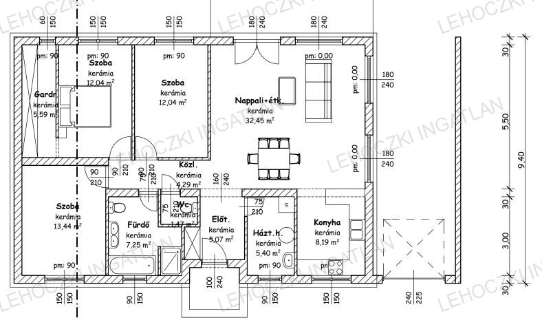 Lakótér 107.23 nm + terasz + fedett autóbeálló