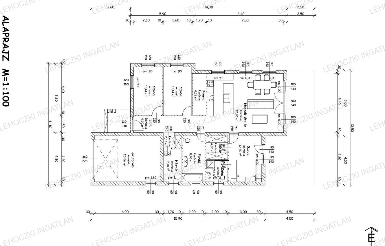 Lakótér 111,44 nm + 25,56 nm garázs + 17 nm terasz