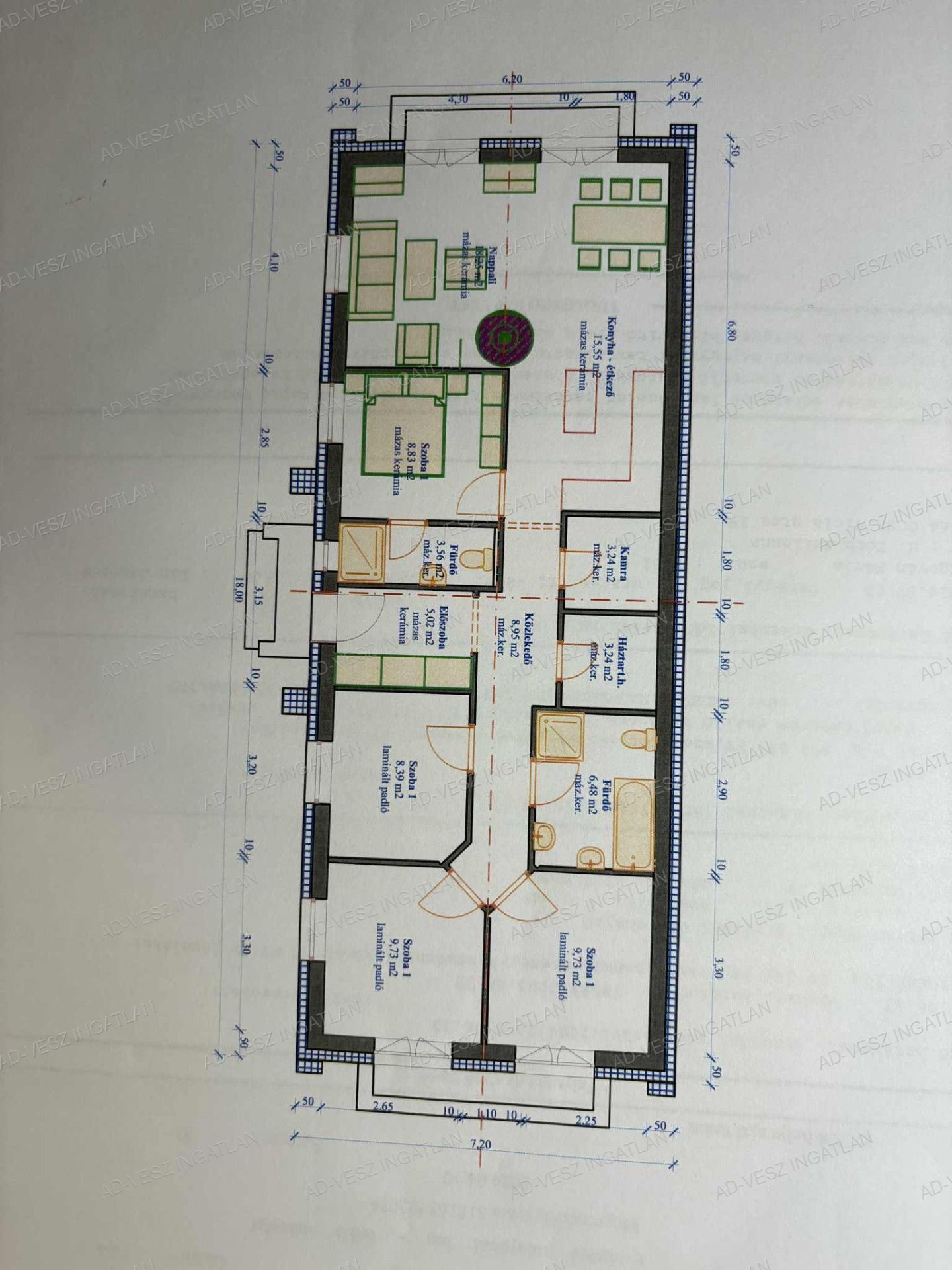 A 101m2-es belső hasznos alapterület alkalmassá teszi akár nagyobb család részére is a kényelmes együttélést.