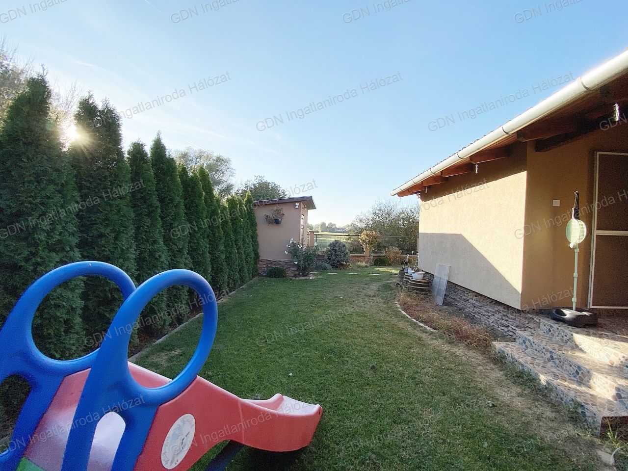 A 380 m²-es telek gondozott, parkosított, rendezett kerttel rendelkezik. A telken 5 m²-es tároló is található, mely extra helyet biztosít a mindennapokhoz. A beton födém lehetőséget kínál a tetőtér későbbi beépítésére, így a ház tovább bővíthető.