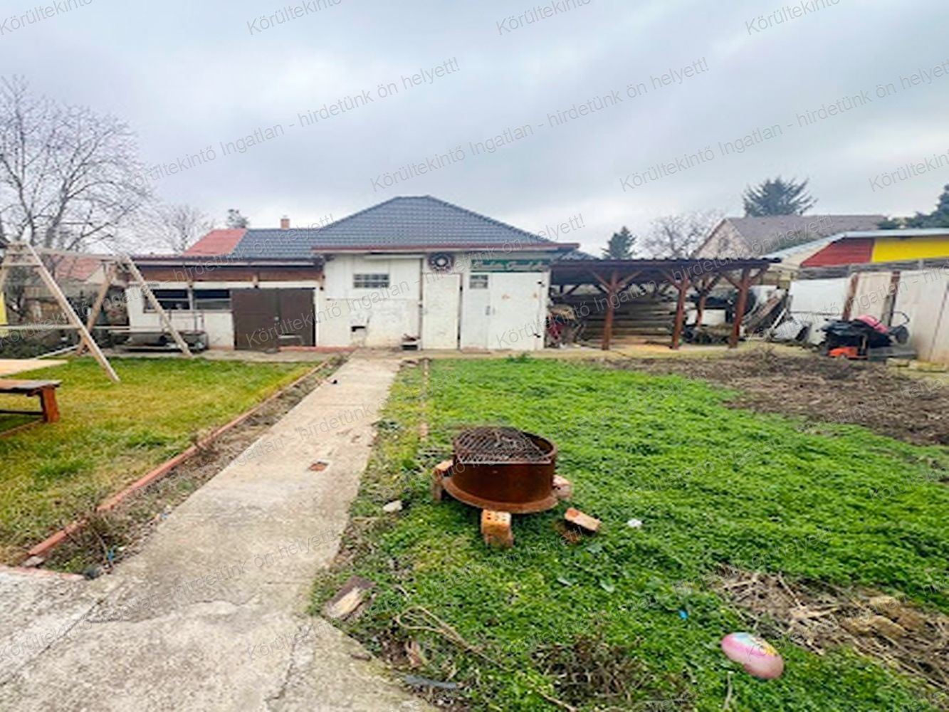 Az ingatlan egy 467 m2-es, kerítéssel körbekerített, összközműves telken fekszik. A telek ház előtti, utcafronti része betonozott, a hátsó része pedig füvesített terület. A kertben található egy 16 m mély, gyűrűs kút.