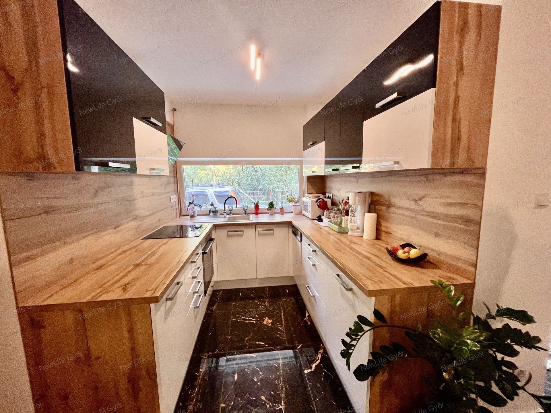 A ház éke a konyha,mely modern, igényesen kivitelezett. Beépített mosogatógép, sütő, főzőlap és szagelszívó lett a konyhabútorba beépítve. A háziasszonyok kedvence a konyhában található ablak, mely előtt nagy pult és a gránitmosogató is van.