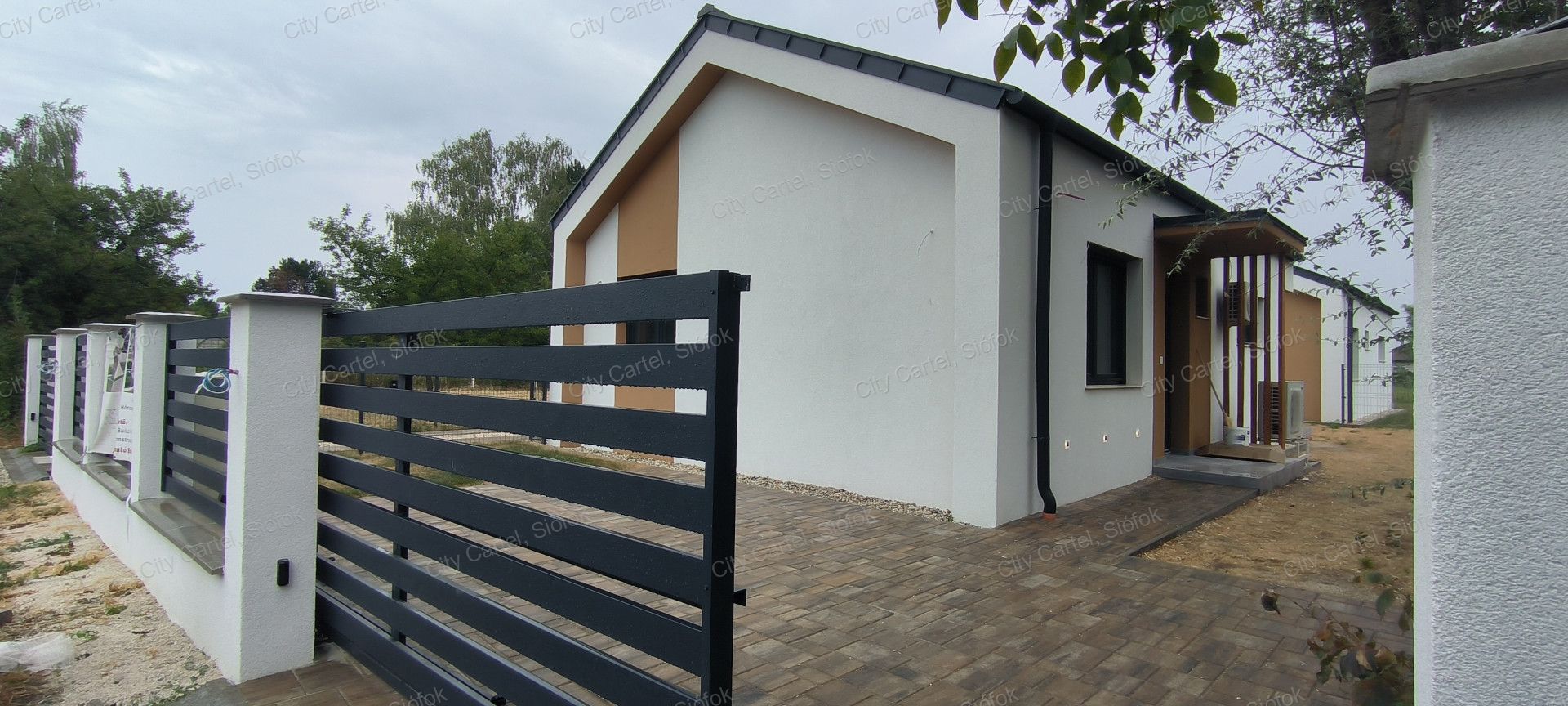 A ház téglából épül, fa födémmel, fa tetőszerkezettel, korcolt lemezfedéssel. A külső nyílászárók antracit színűek, belül fehérek hőszigeteltek, műanyagok, motoros, szúnyoghálóval felszerelt. Külső hőszigetelés 10 cm. Igényes, minőségi kivitelezés.