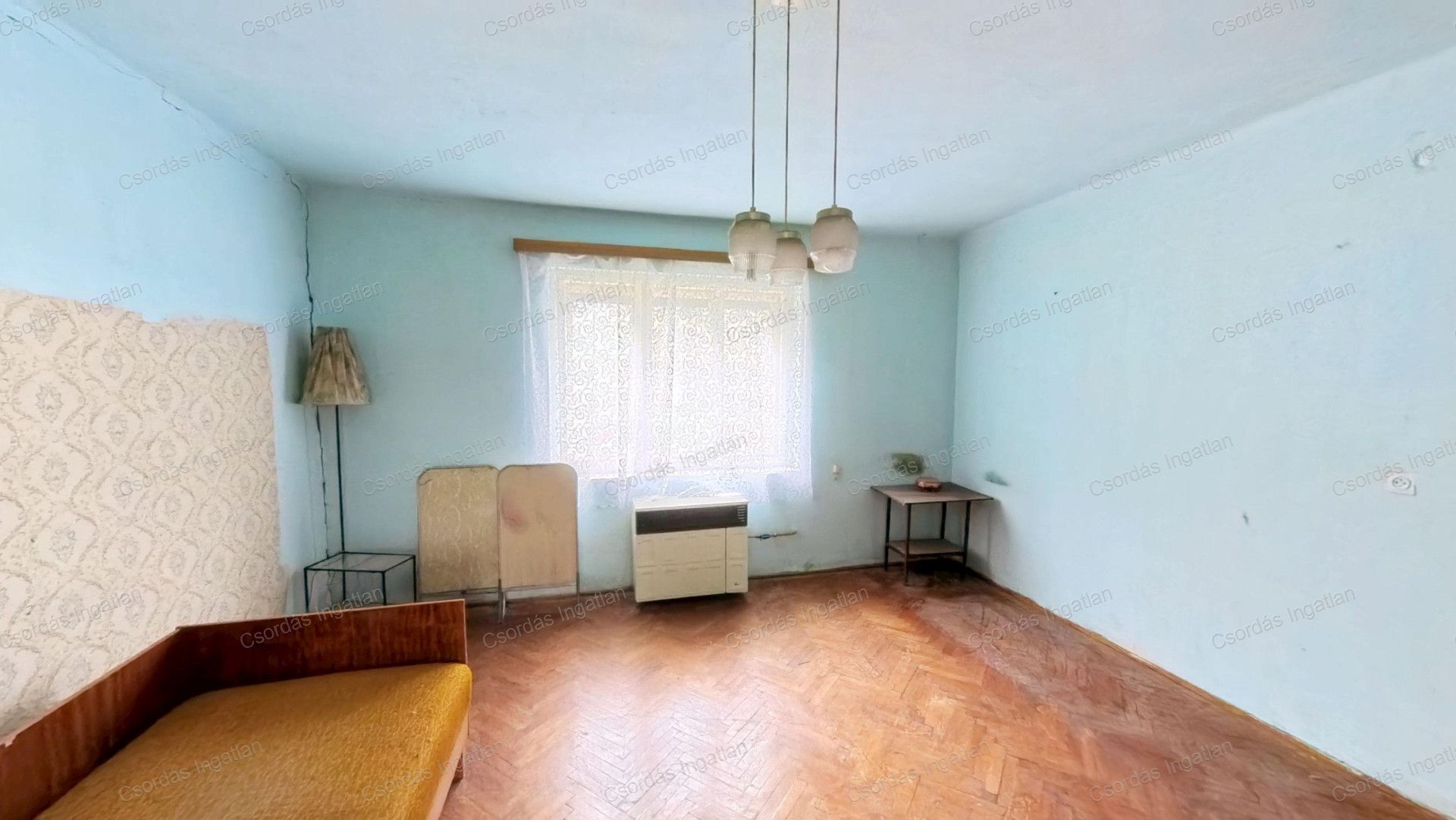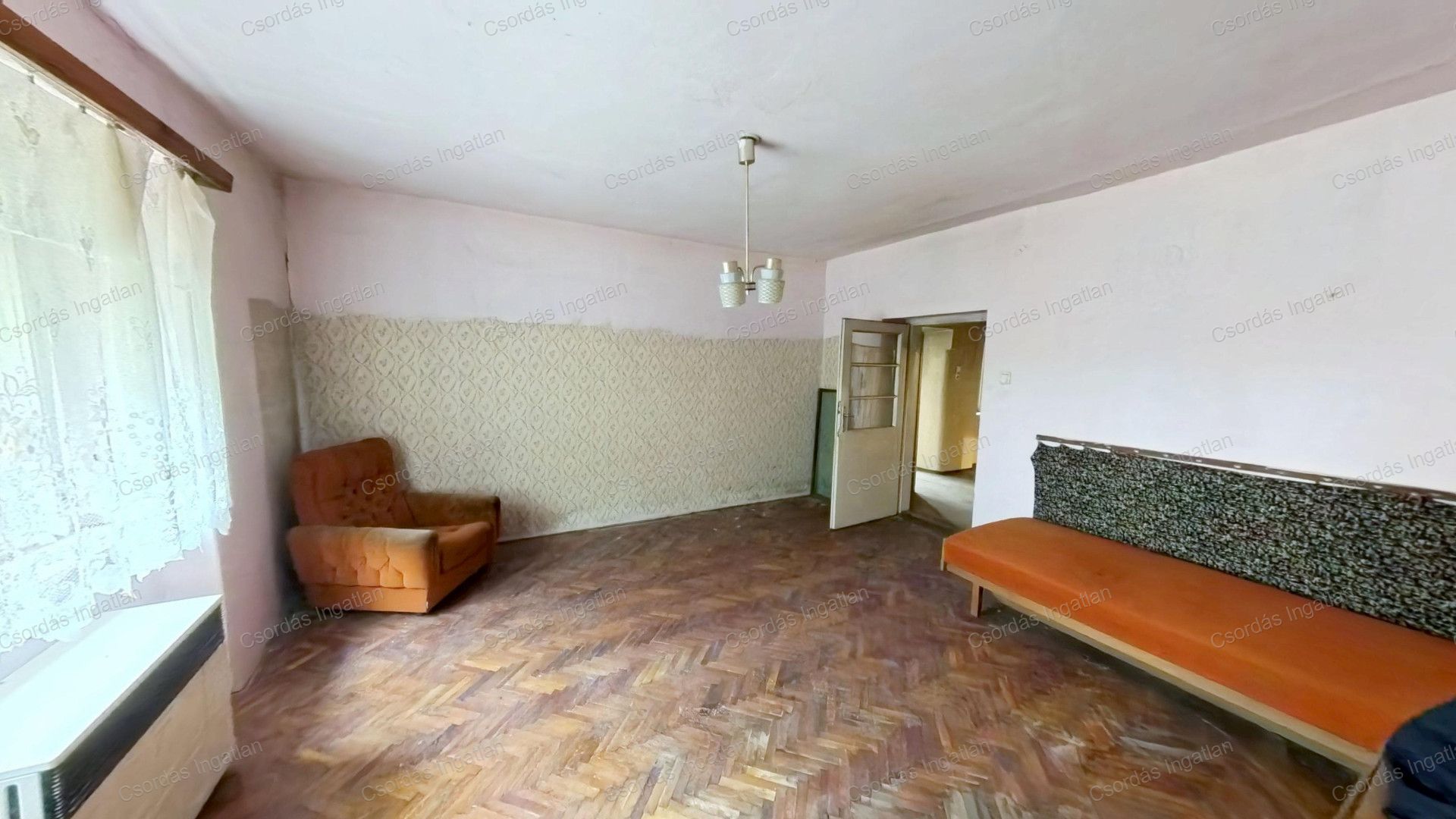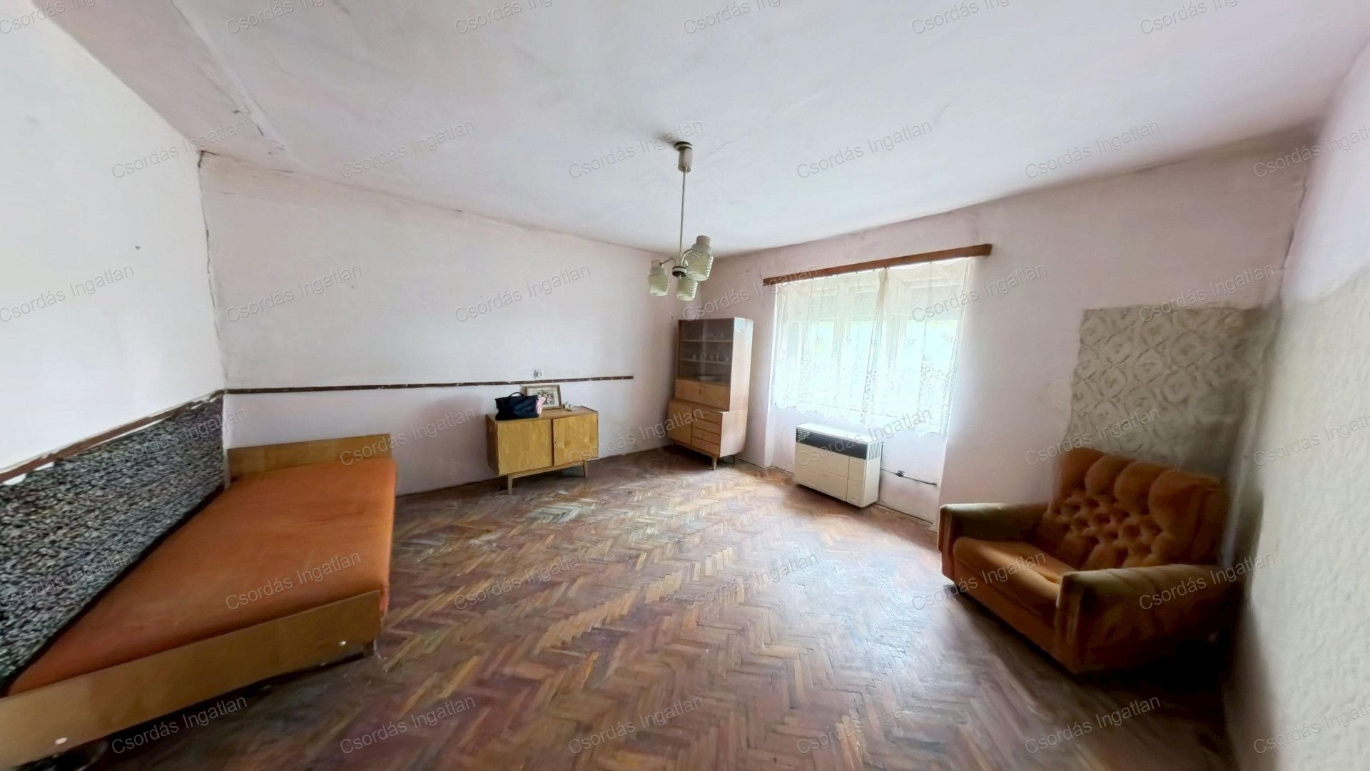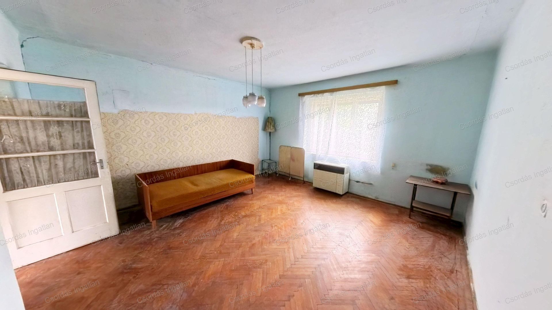 A vegyes falazatú, cserép fedésű épület száraz, penészmentes. A házba belépve egy világos, kényelmes méretű előtérbe érkezünk. Innen nyílik szemben egy VALÓBAN TÁGAS, VILÁGOS, parketta borítású szoba. A bejárattól balra egy nappaliba jutunk. Innen nyílik szemben a fürdőszoba, mellette egy kamra található. A nappaliból jobbra nyílik a másik, szintén igazán tágas, világos szoba, melynek szintén PARKETTA A BURKOLATA. A ház fűtését GÁZKONVEKTOROK biztosítják, a melegvizet VILLANYBOJLER állítja elő.