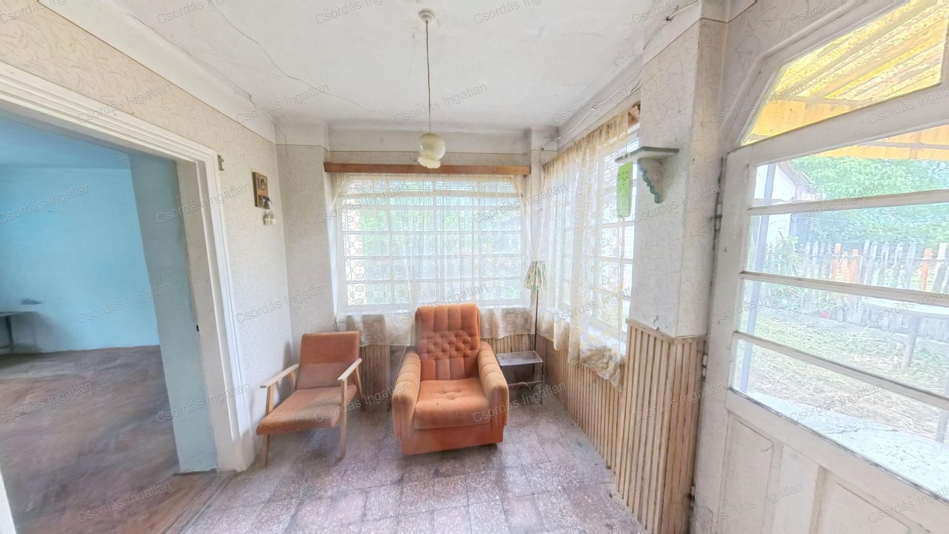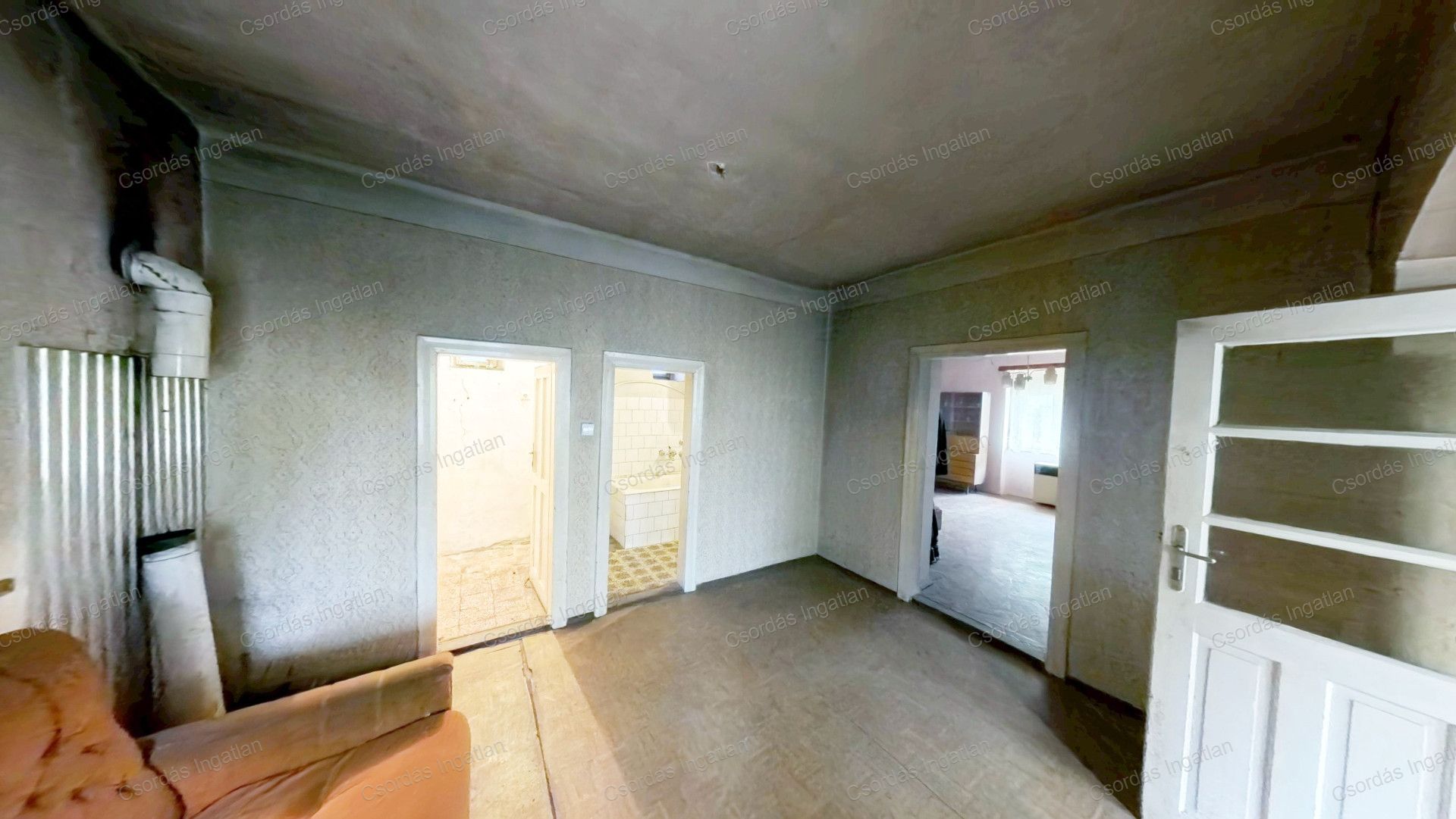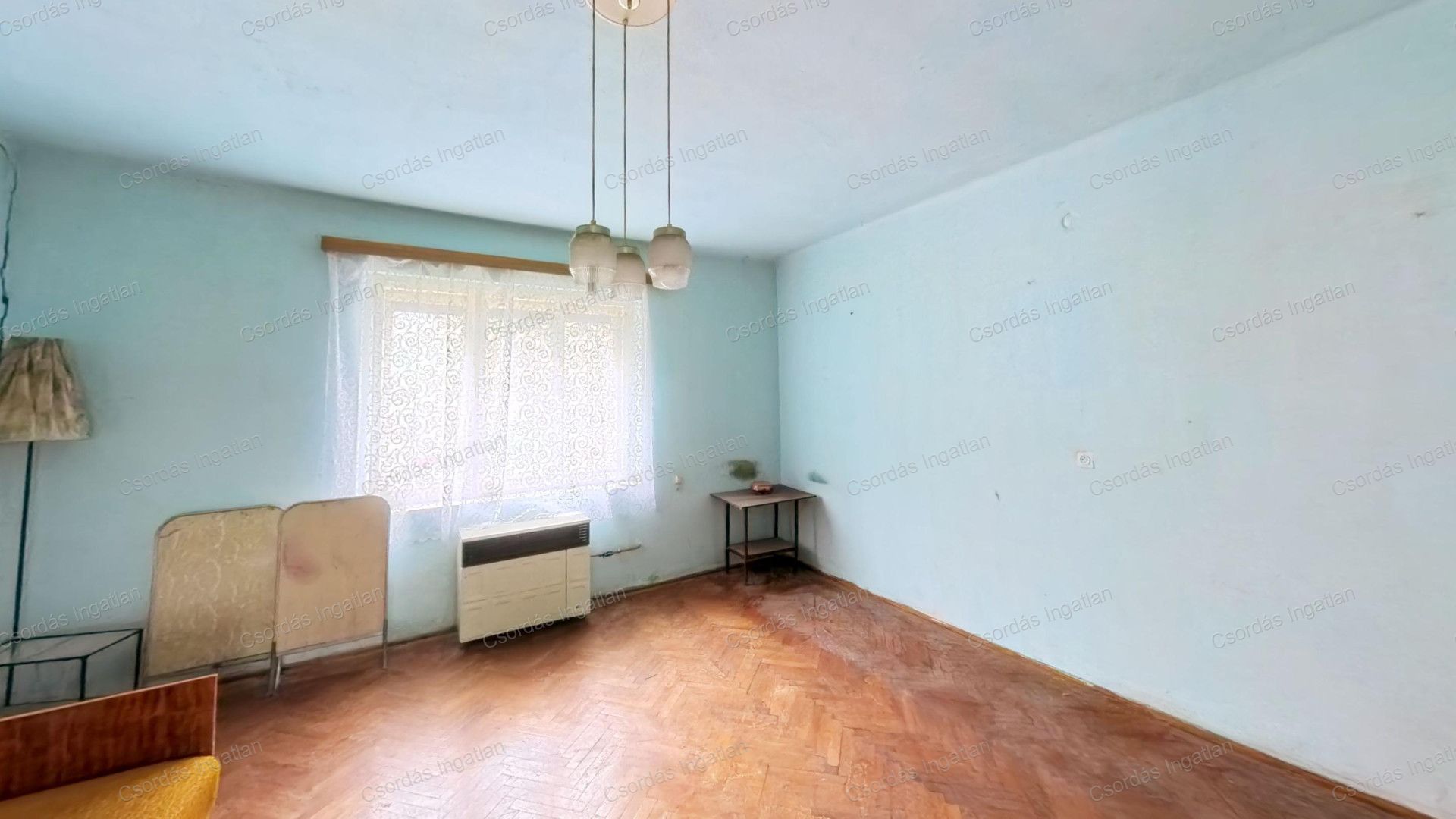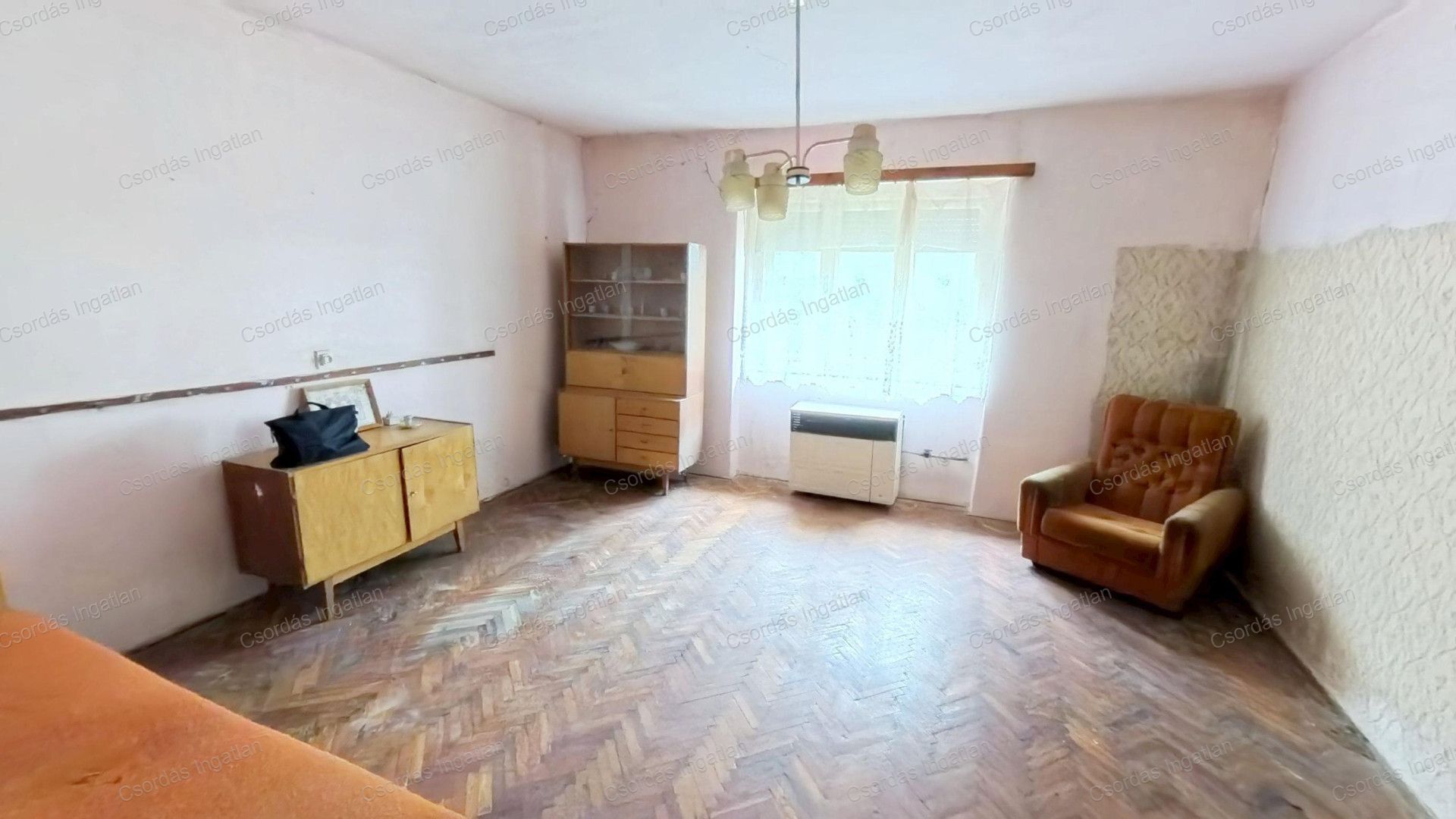 A vegyes falazatú, cserép fedésű épület száraz, penészmentes. A házba belépve egy világos, kényelmes méretű előtérbe érkezünk. Innen nyílik szemben egy VALÓBAN TÁGAS, VILÁGOS, parketta borítású szoba. A bejárattól balra egy nappaliba jutunk. Innen nyílik szemben a fürdőszoba, mellette egy kamra található. A nappaliból jobbra nyílik a másik, szintén igazán tágas, világos szoba, melynek szintén PARKETTA A BURKOLATA. A ház fűtését GÁZKONVEKTOROK biztosítják, a melegvizet VILLANYBOJLER állítja elő.