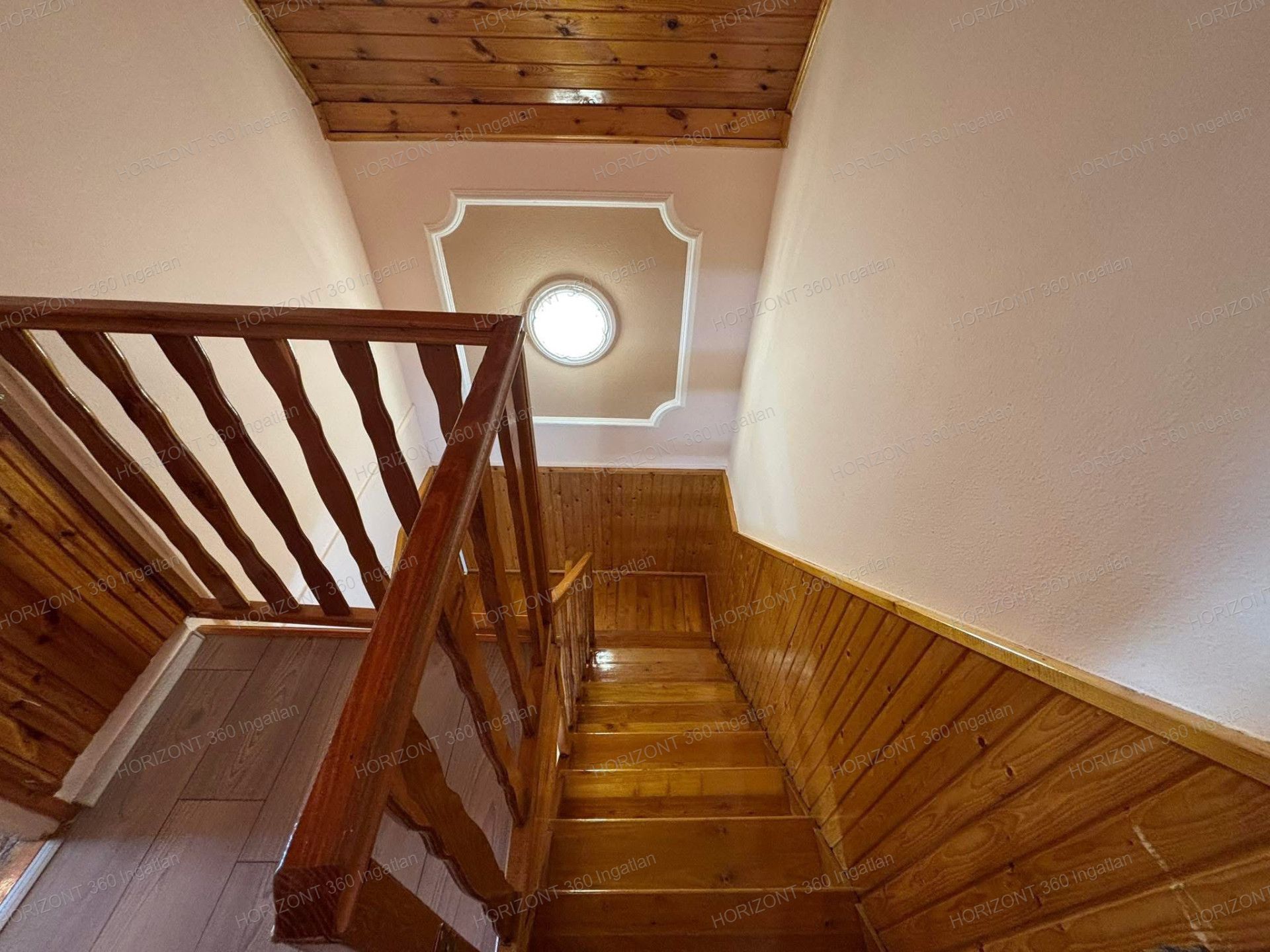 A lépcső igényes fa burkolatot kapott, a tetőtér lambériázott.