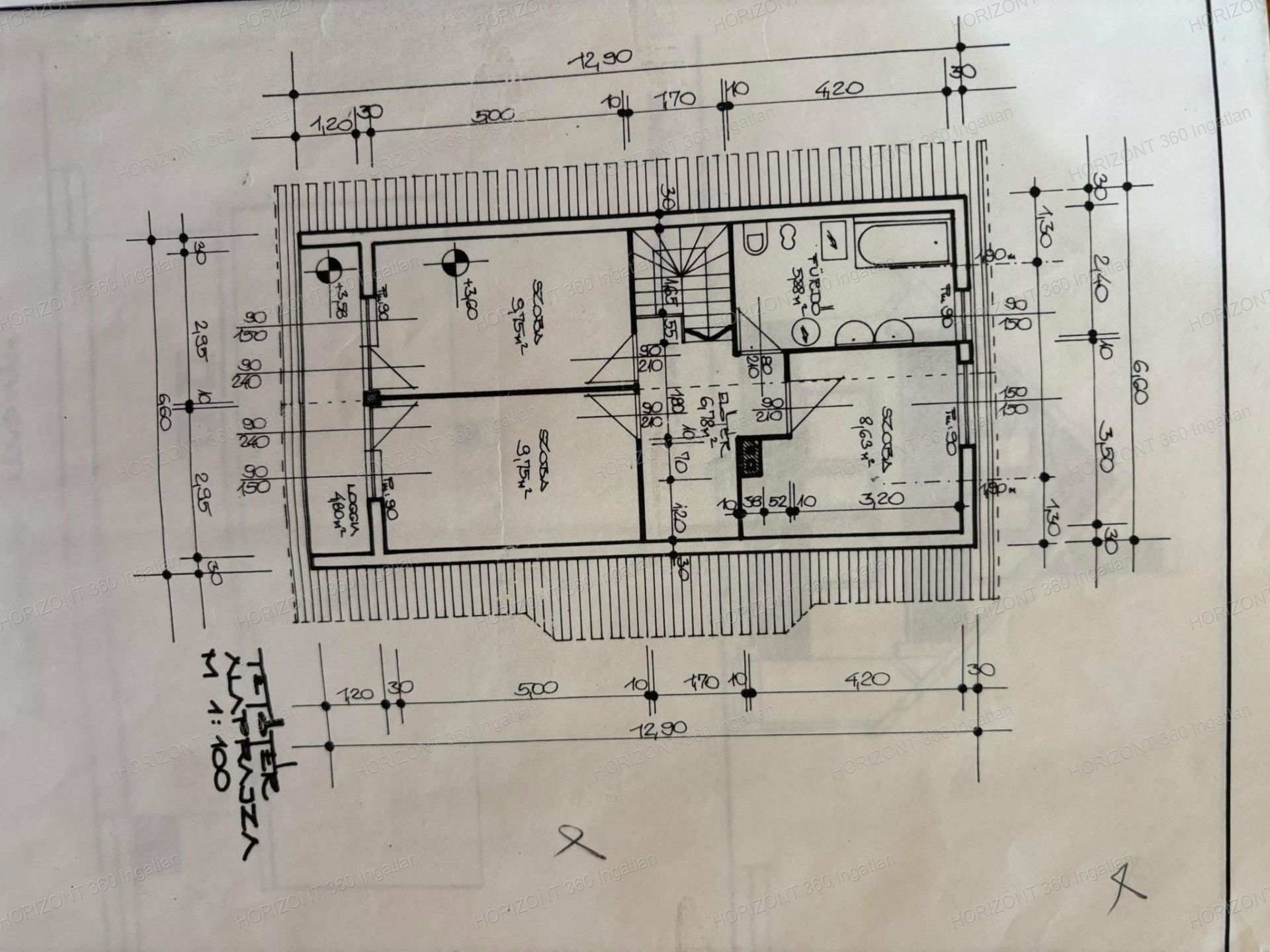 • Tetőtér 80 nm: közlekedő, három hálószoba, káddal felszerelt felújított fürdőszoba.
