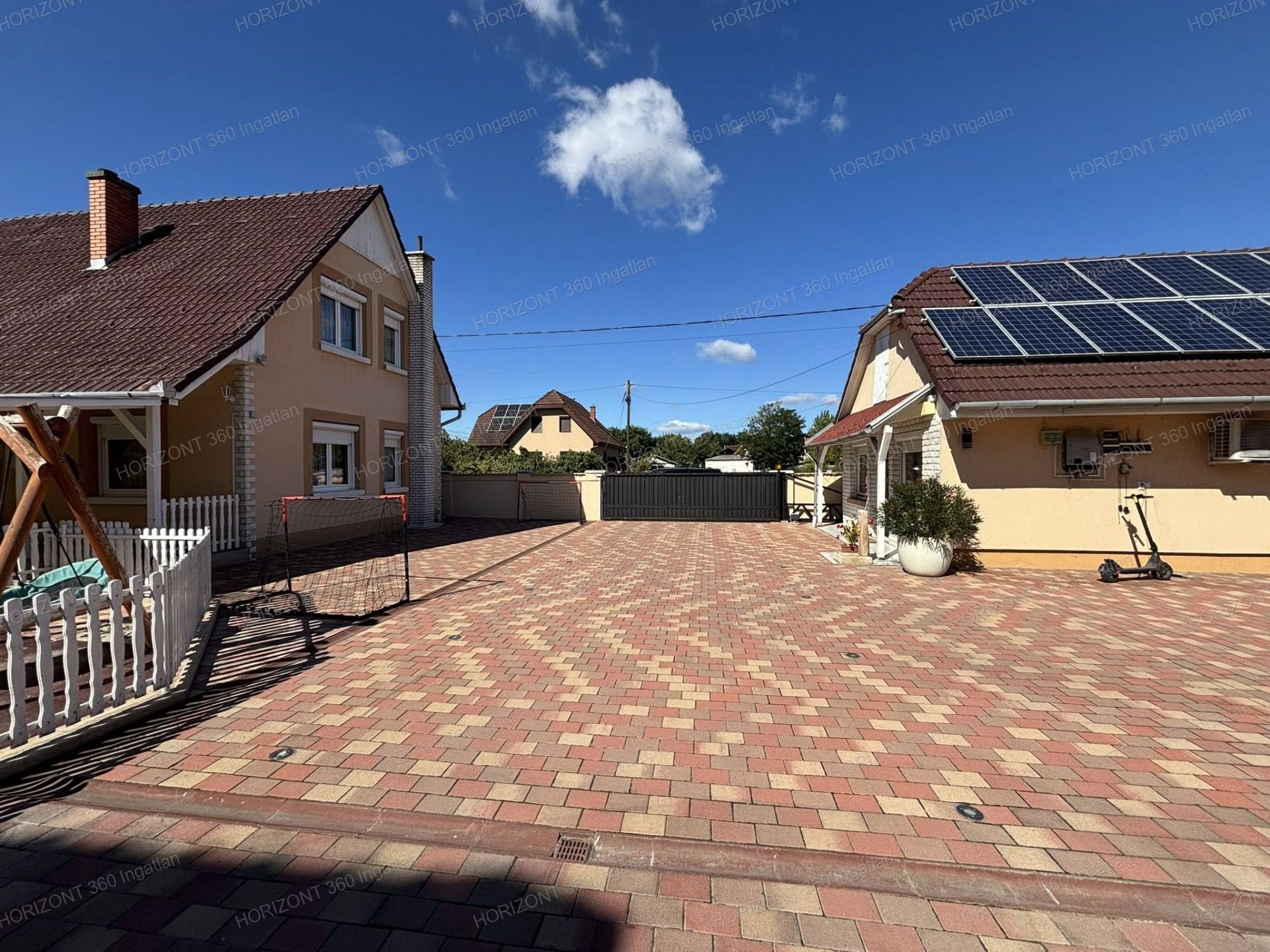 Az udvar szinte gondozásmentes, minden az ott lakók kényelmét szolgálja.