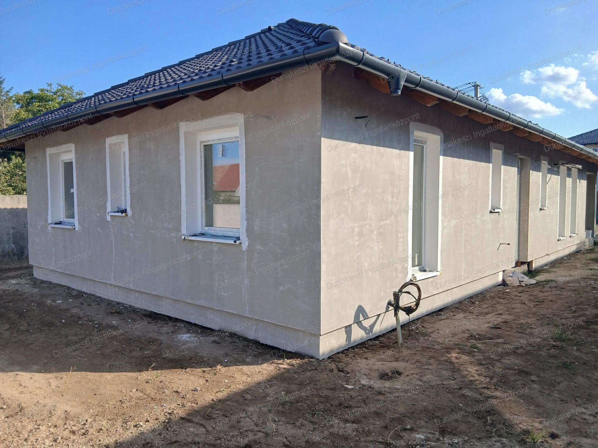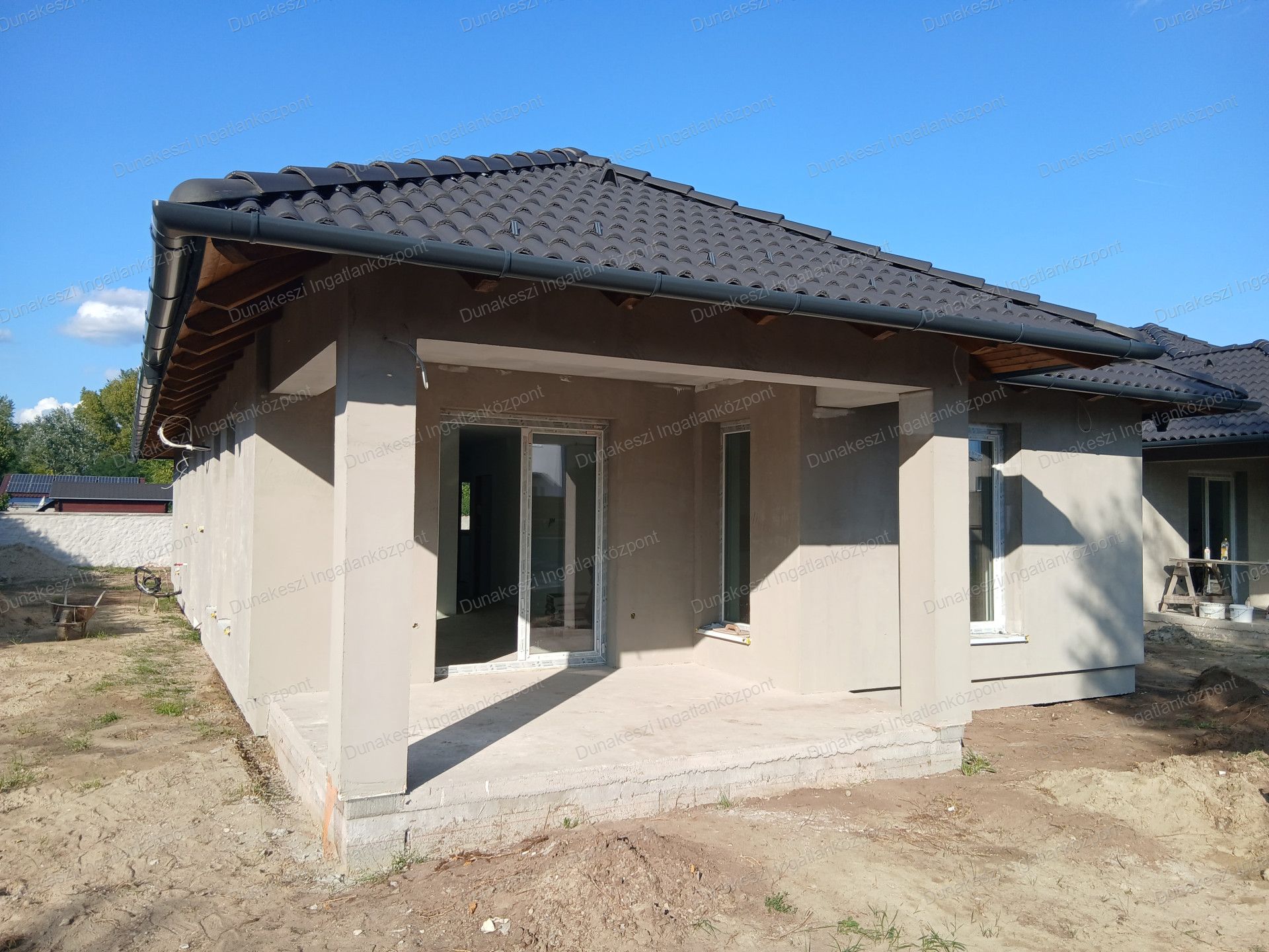 Sződ frenkventált vasúthoz, M2-es autóúthoz közeli helyén, csendes, családi házas övezetben egy új építésű, dupla komfortos, egyszintes családi ház eladó. Az ingatlan délkeleti tájolású, sík telken helyezkedik el, melyen önállóan áll. A lakáshoz 540 m2 saját telek és udvaron belüli, viacolorral lerakott autóbeálló tartozik. A lakás hasznos alapterülete 118 m2, amelybe beletartozik egy amerikai konyhás nappali, 3 szoba, 2 fürdőszoba és egy tároló helyiség. Az ingatlan függőleges teherhordó szerkezetei 30 cm vastagságú Porotherm téglából készültek, homlokzati szigeteléssel. A tetőt antracitszürke színű Bramac betoncserép fedi. A fűtési rendszer hőszivattyúval van kialakítva, az összes helyiség padlófűtéssel ellátott. A település 20 percre fekszik a fővárostól, 12 percre fekszik Vác barokk belvárosától és az M2-es autópályáról 5 perc alatt könnyen megközelíthető. A közelben található buszmegálló, vasútállomás, élelmiszerüzlet, általános iskola, óvoda, bölcsőde, posta, gyógyszertár, orvosi rendelő, fogászat, bank, pékség, játszótér. Az ingatlan jelenleg épül, átadása 2024 utolsó negyedévére várható, ezért a belső burkolatok és a belső nyílászárók még szabadon választhatóak a jövendőbeli tulajdonos elképzeléséhez igazodva. A képeken egy másik településen épült, ugyanilyen ház látható. A kivitelező megbízható, sok referenciával rendelkezik.