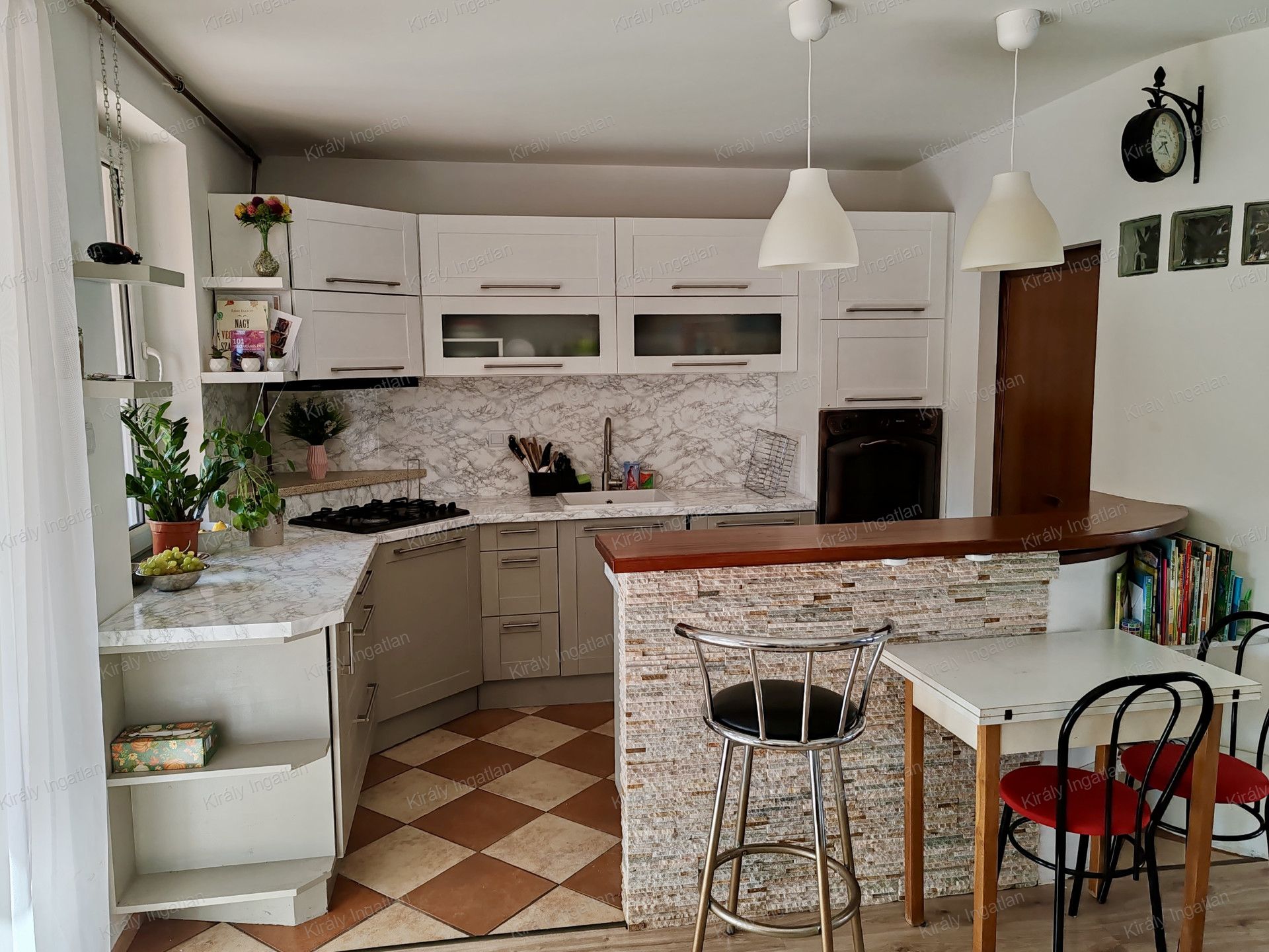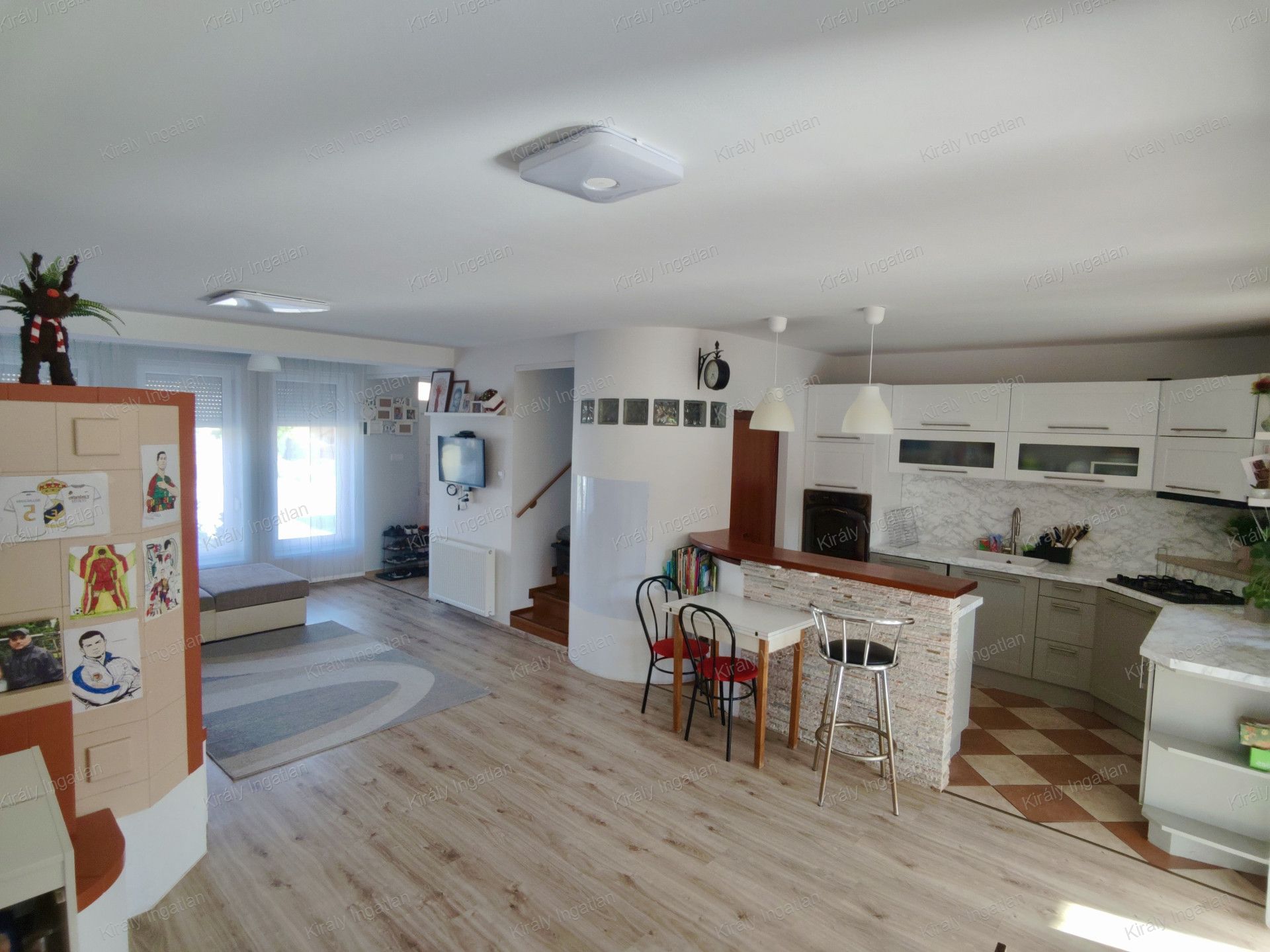 -Alsó szint: világos, tágas nappali-étkező, modern konyha, spejz, külön WC