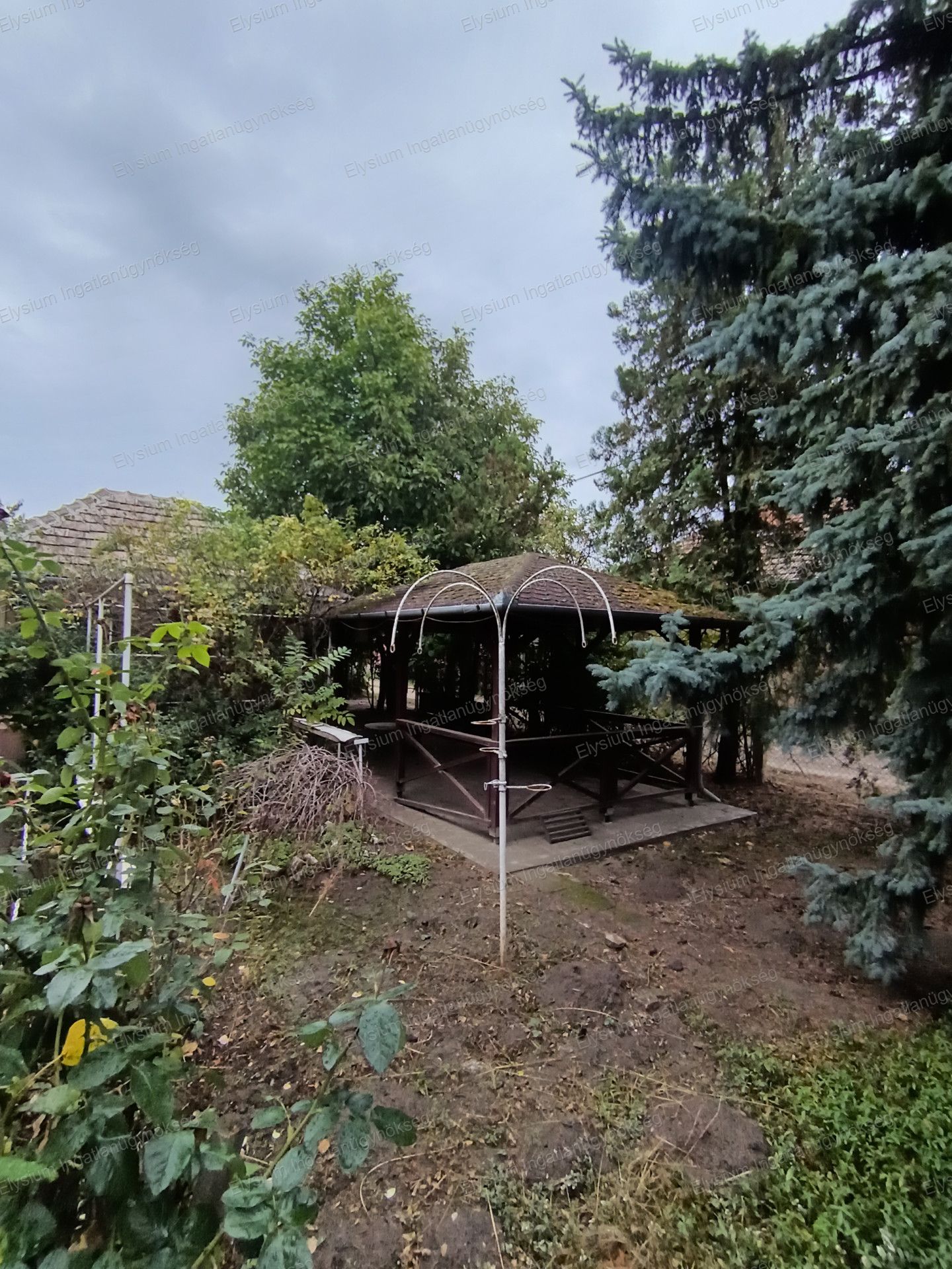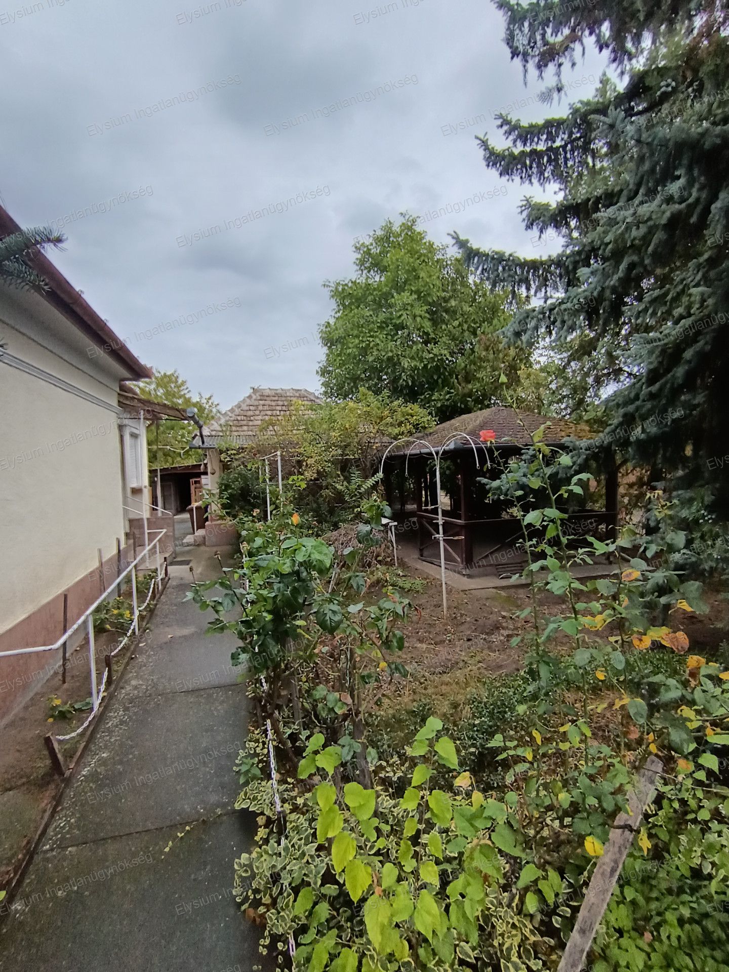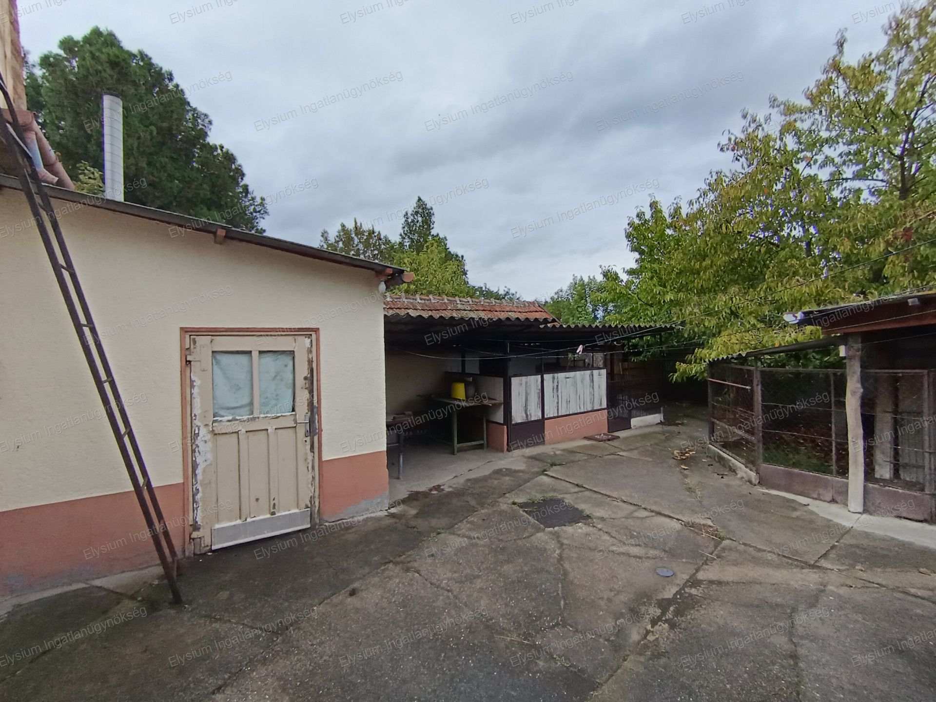 A 1 209 nm-es porta rendezett. Az udvaron egy közművesített, gázkonvektoros fűtéssel ellátott nyári konyha( mely akár külön lakrésznek, de üzleti tevékenység végzésére is alkalmas) szaletli, garázs, tárolók és több ól is kialakításra került. A telek hátsó részén termő gyümölcsfák ( pl.: szilva, körte) találhatók. A gazdaságos locsolást fúrt kút biztosítja.