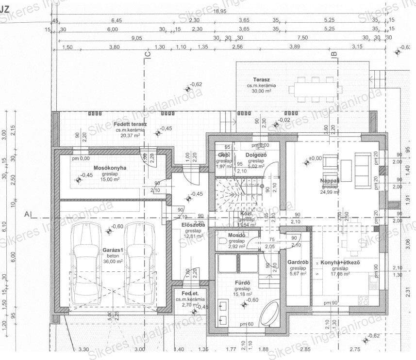 Az autók kényelméről dupla garázs gondoskodik elektromos kapuval, de a telken belül több autó számára is van parkolási lehetőség.